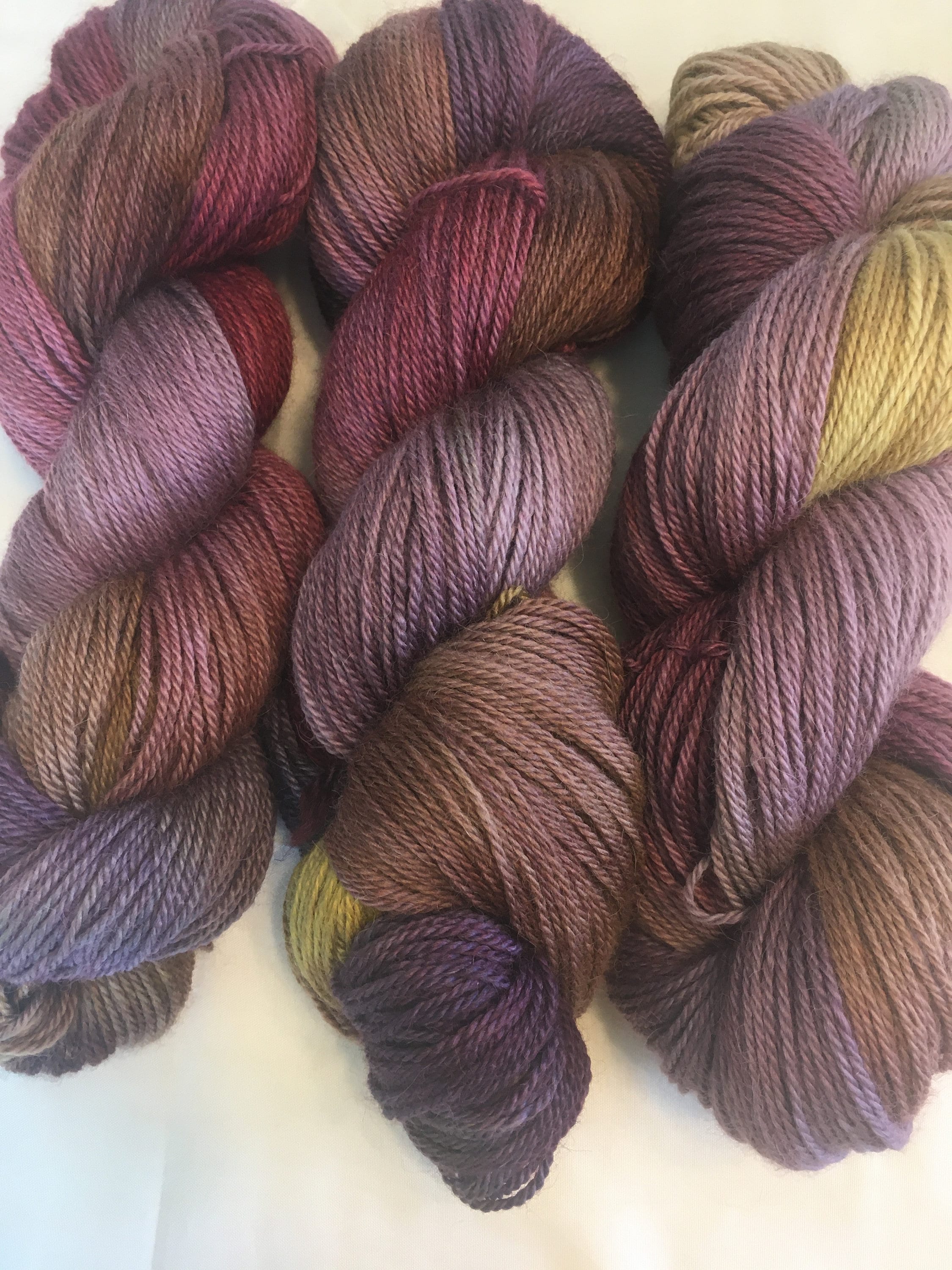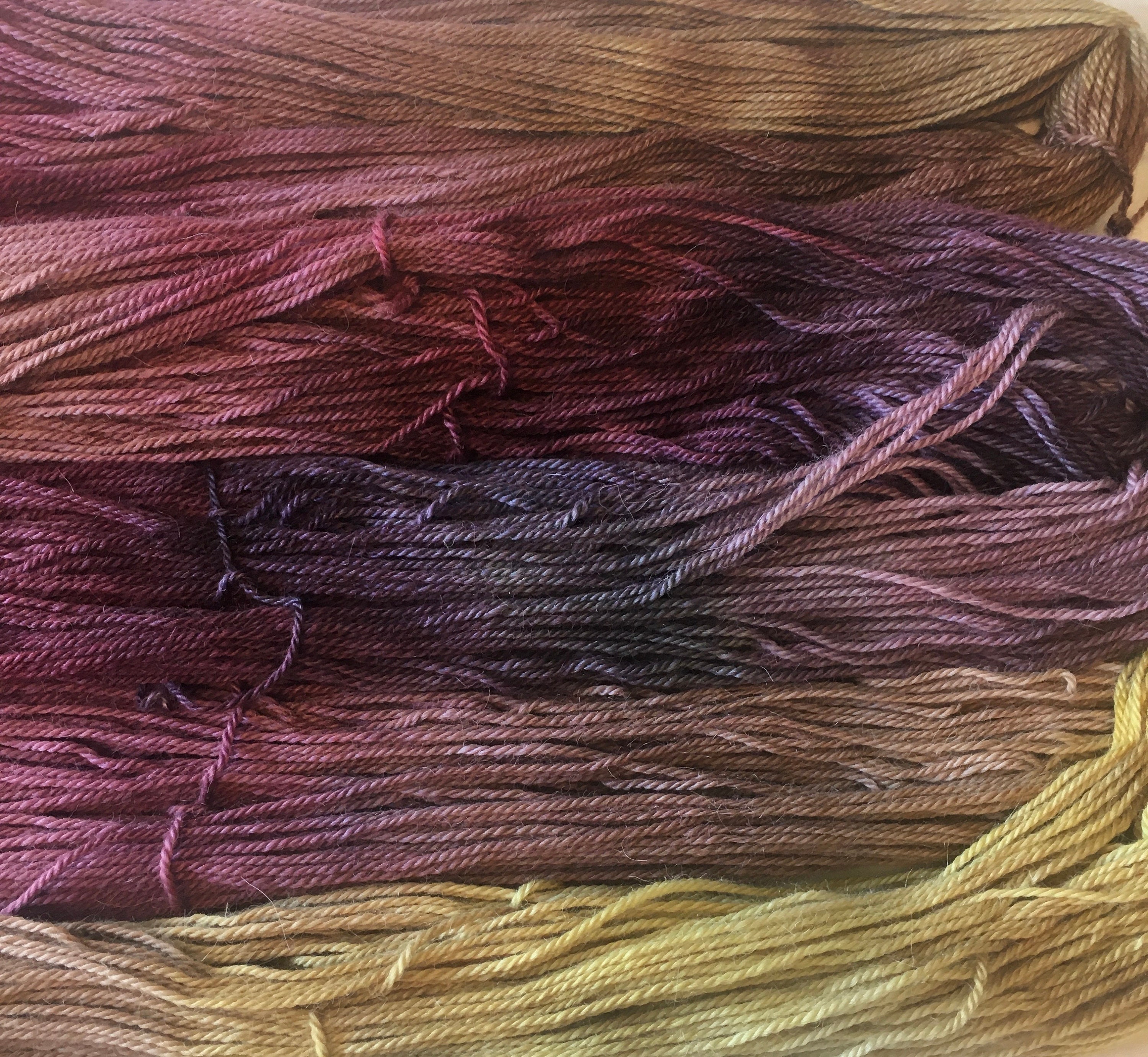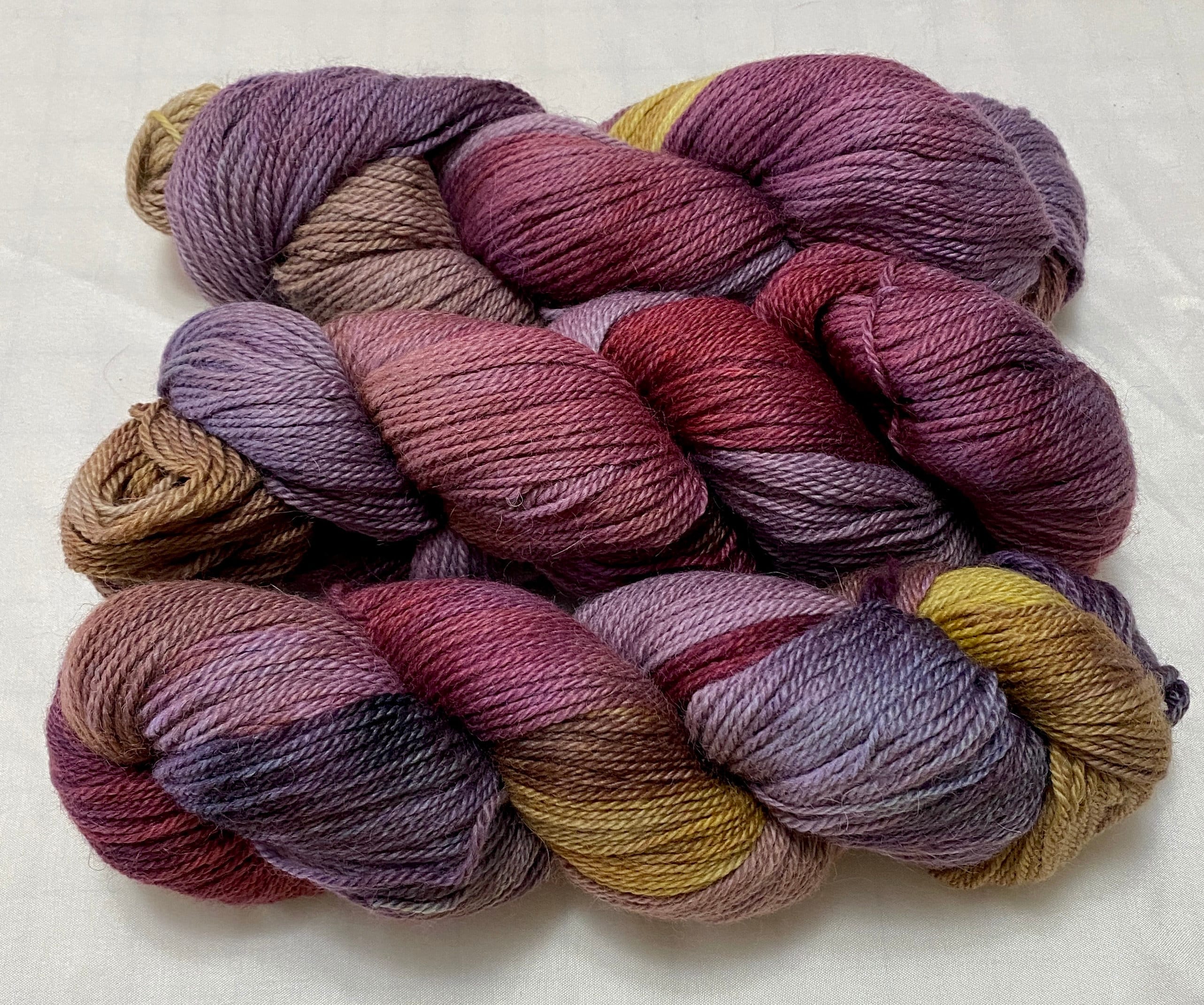 Hand painting means each skein is unique; no two skeins are exactly alike.