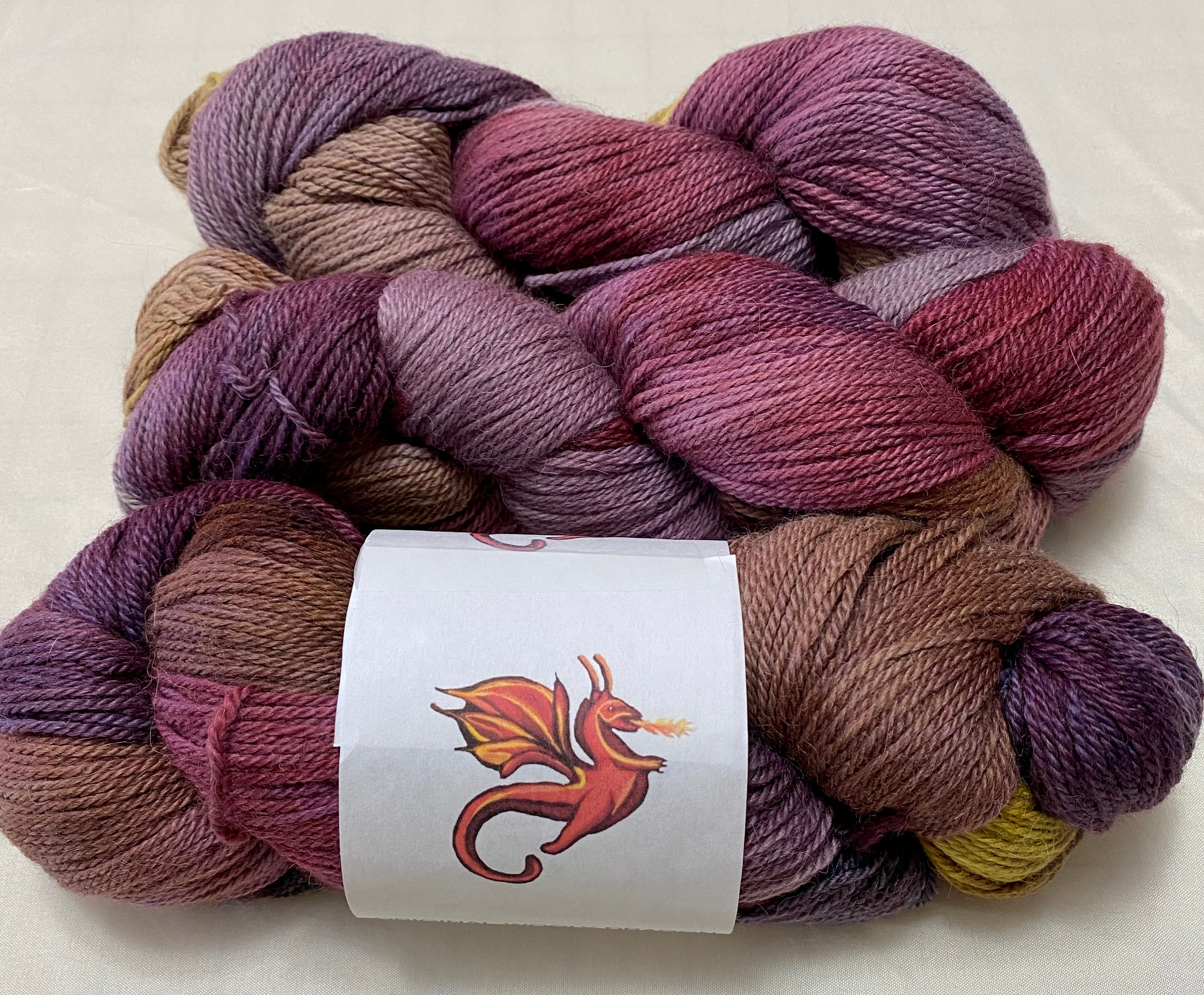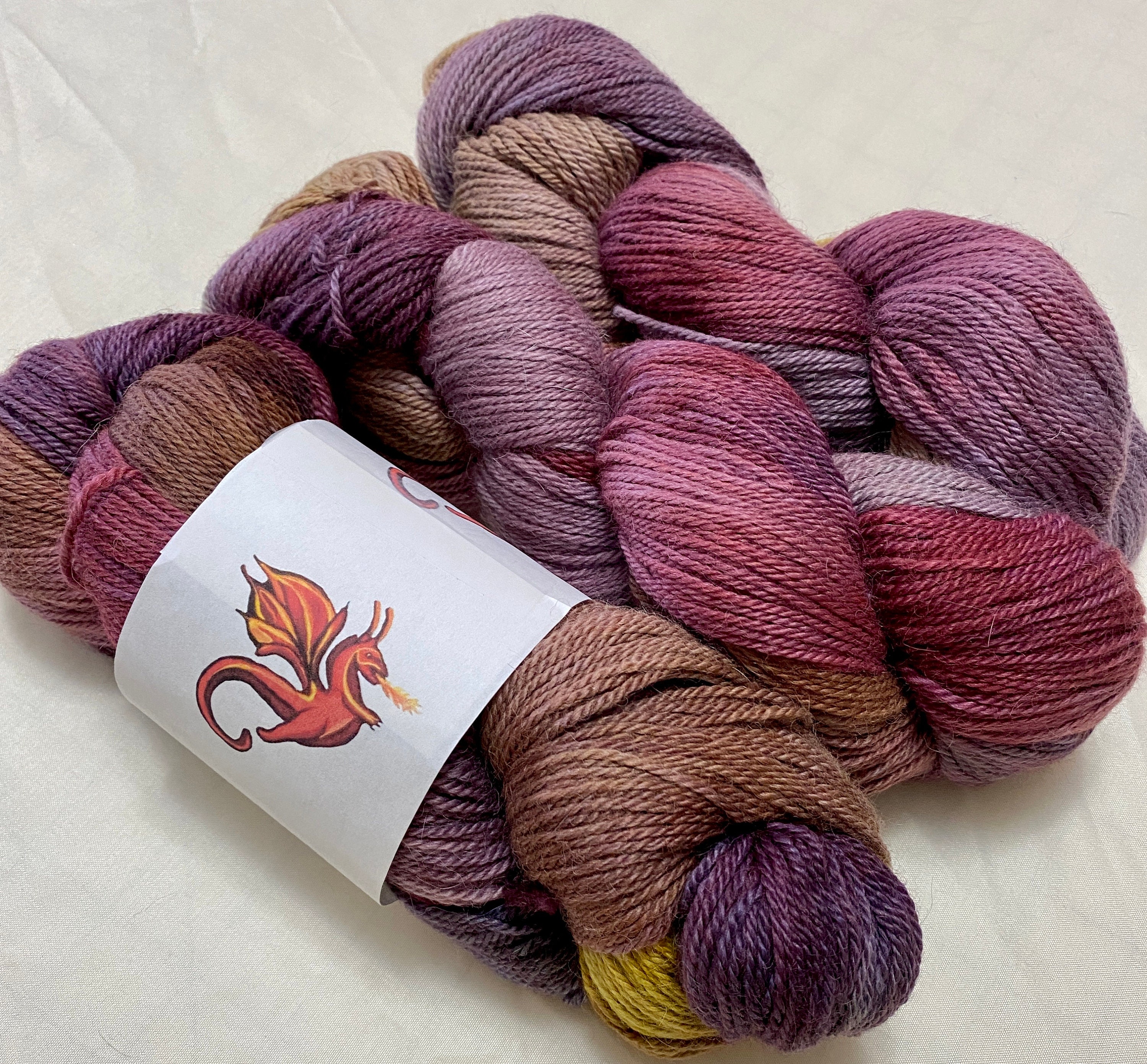 Soft as a cloud baby alpaca yarn, hand painted with autumn colors: purples, burgundy, browns & golds and ready for you to make something truly yummy with it! Each skein is 291 yards per 3.5oz. This a sport weight yarn.