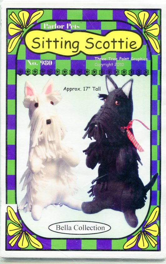 Parlor Pets Sitting Scottie from the Bella Collection of Three Tree Point Graphics. This pattern was redesigned & sold by a major pattern maker but I think this original design is much cuter. The dog is about 17" tall & uses about 1/2 yard of fleece. ***SOLD***