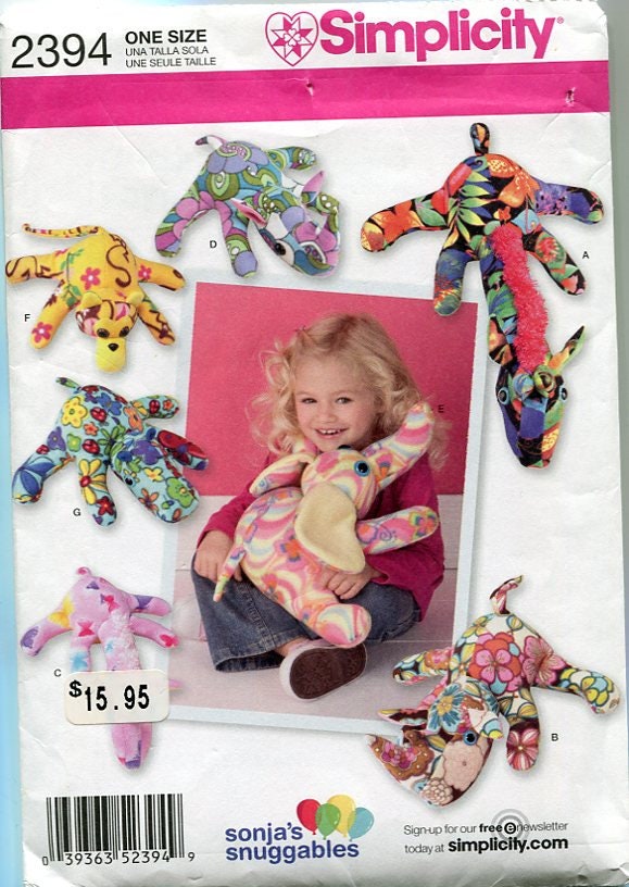 Simplicity #2394 from 2010 is one of Sonja's Snuggables that makes 7 different fleece animals. 42 pattern pieces.