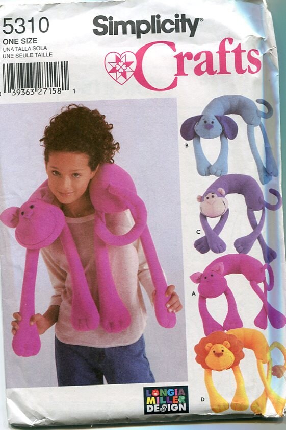 Simplicity #5310 from 2003 is a Longia Miller Design for four different animal neck pillows. 15 pattern pieces.