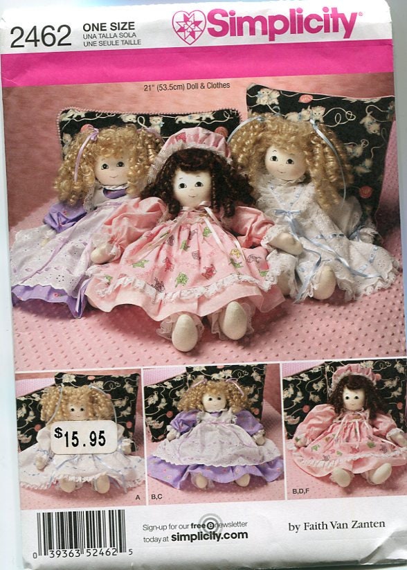 Simplicity #2462 from 2010 is by Faith Van Zanten and makes a 21" doll with clothes. 19 pattern pieces.