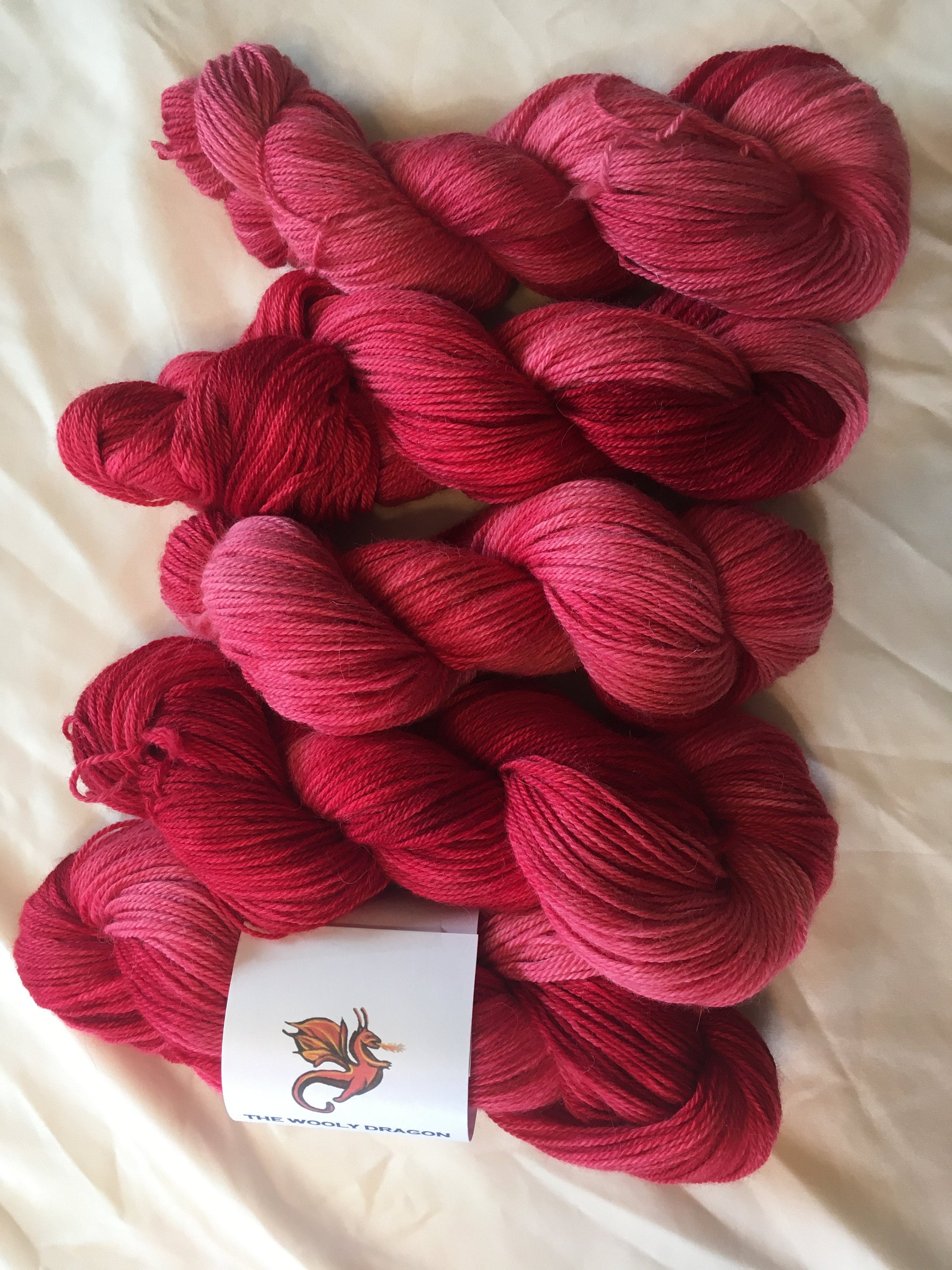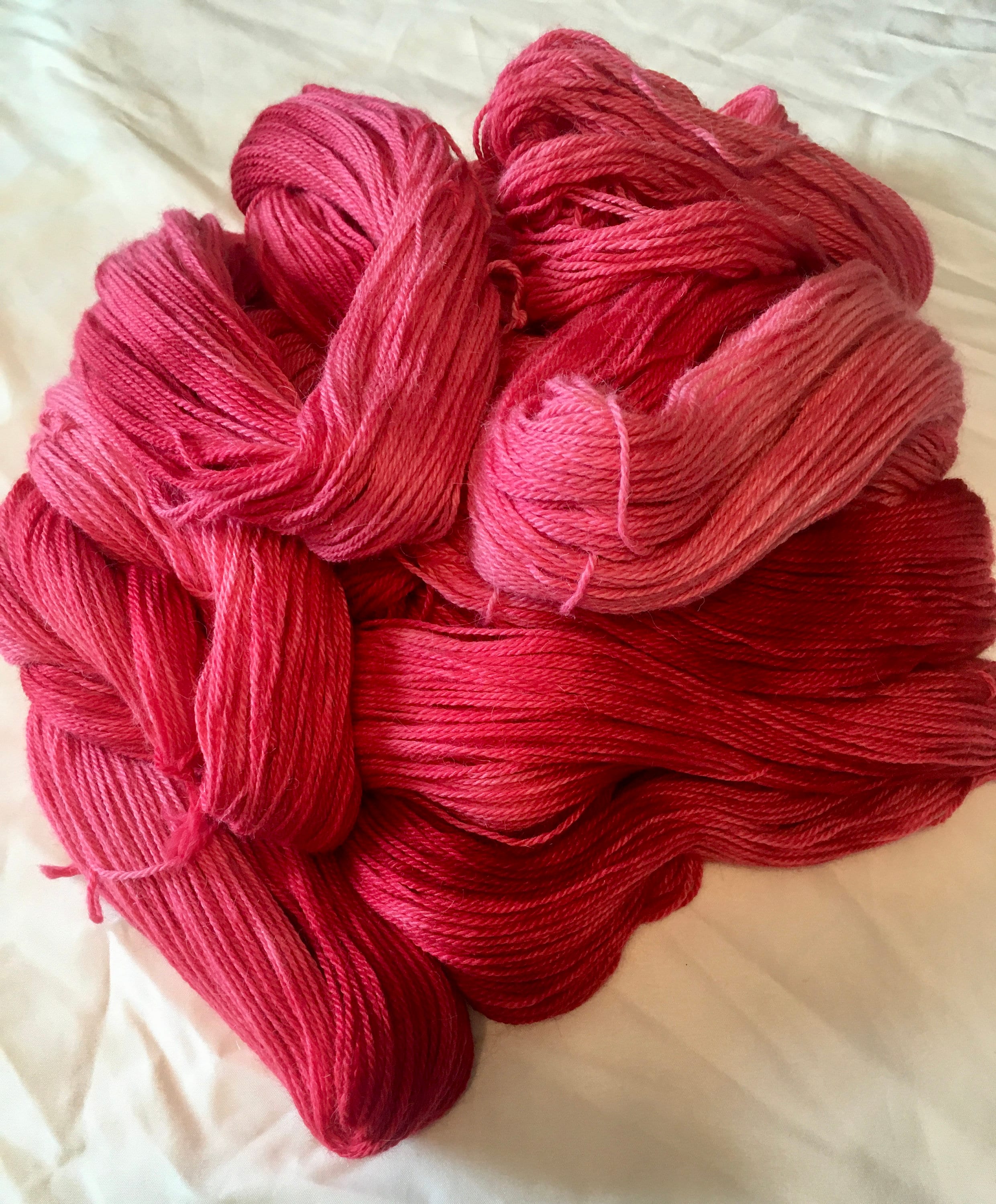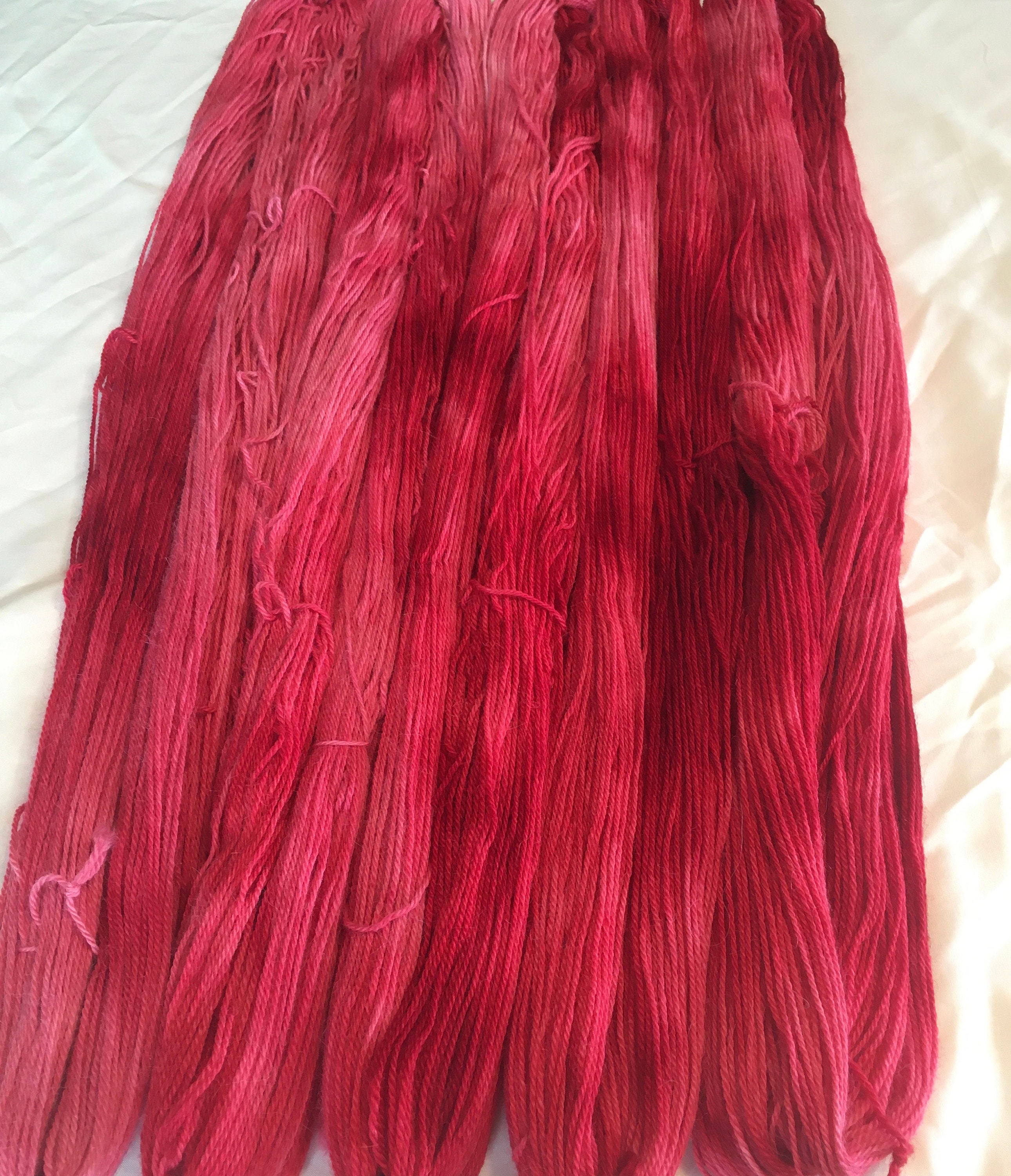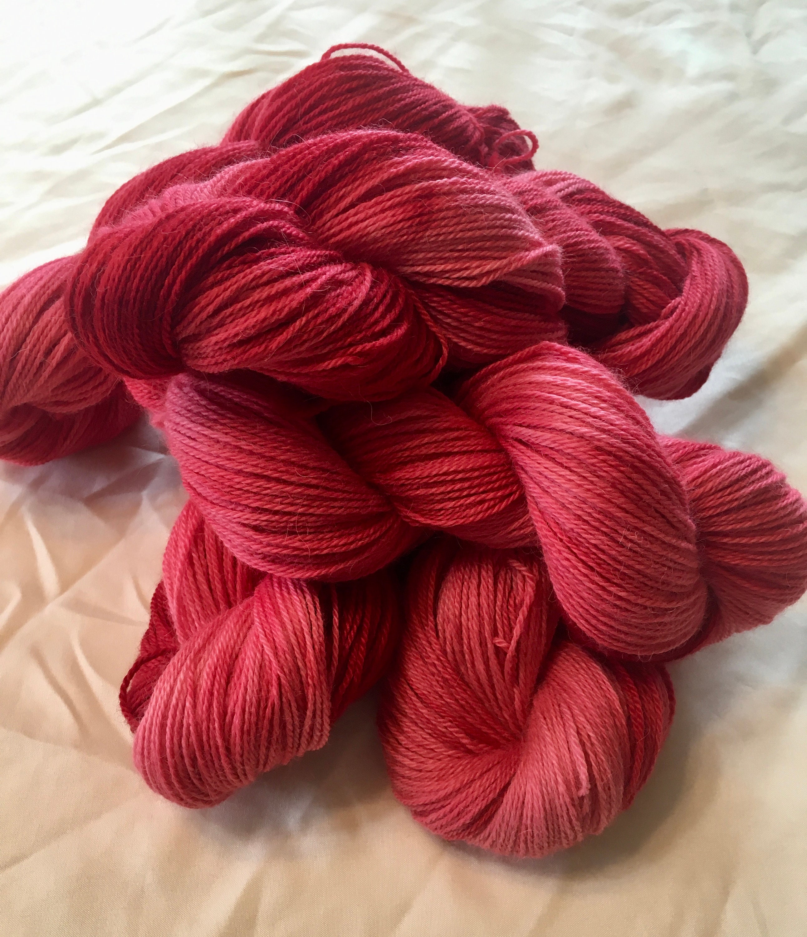 Hand dyeing means each skein is unique; no two skeins are exactly alike.