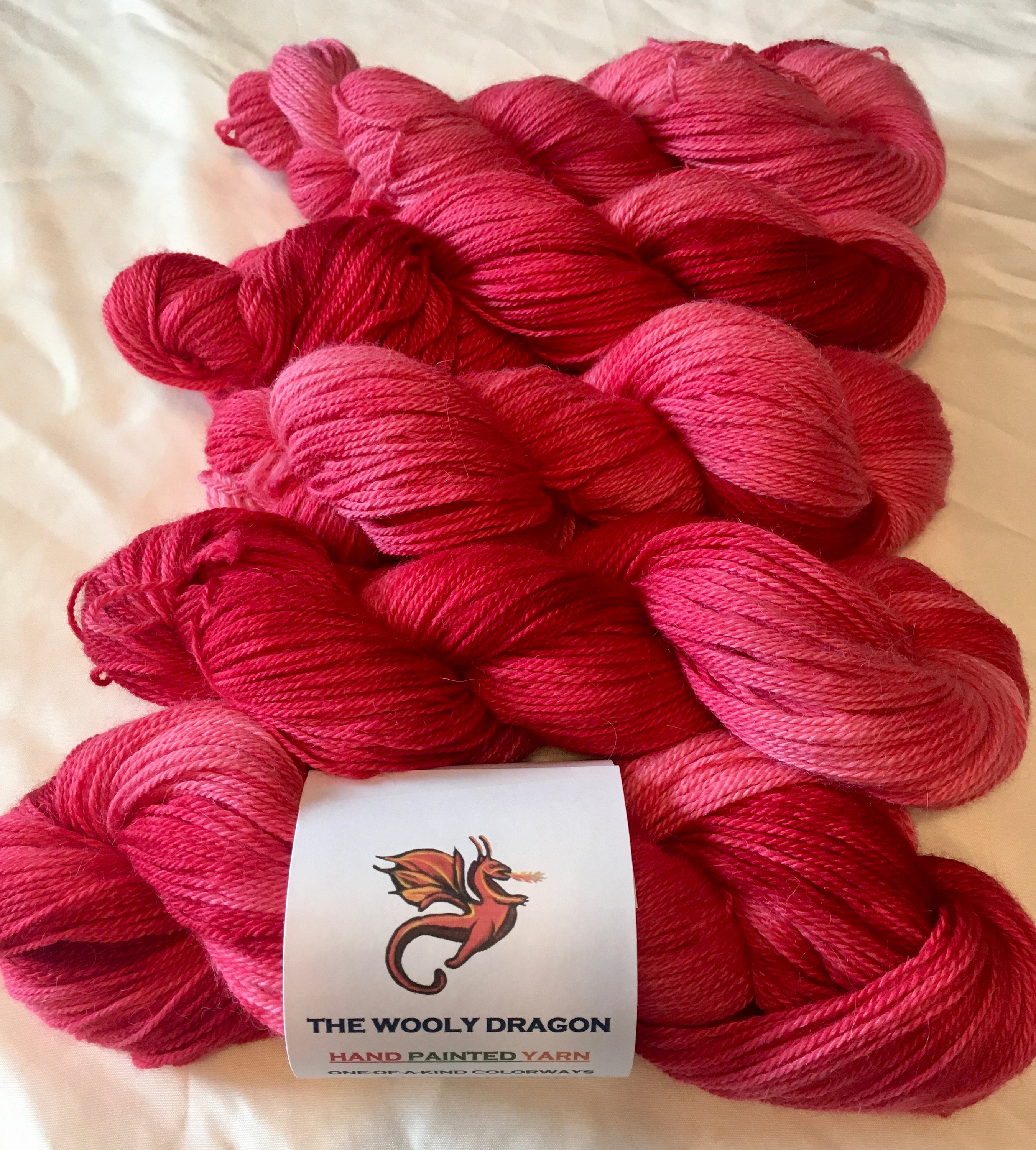 Soft as a cloud baby alpaca yarn, kettle dyed with cheery reds & pinks and ready for you to make something truly yummy with it! Each skein is 291 yards per 3.5oz. This a sport weight yarn.