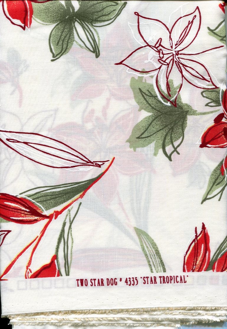 These fashions & fabrics would change yearly & once the run was over, they would not use the fabric line again. These overruns in the fashion industry got sold in various places & I evidently got this piece. I'm guessing that "Star Tropical" refers to either the line the fabric was used in or the fabric design itself.