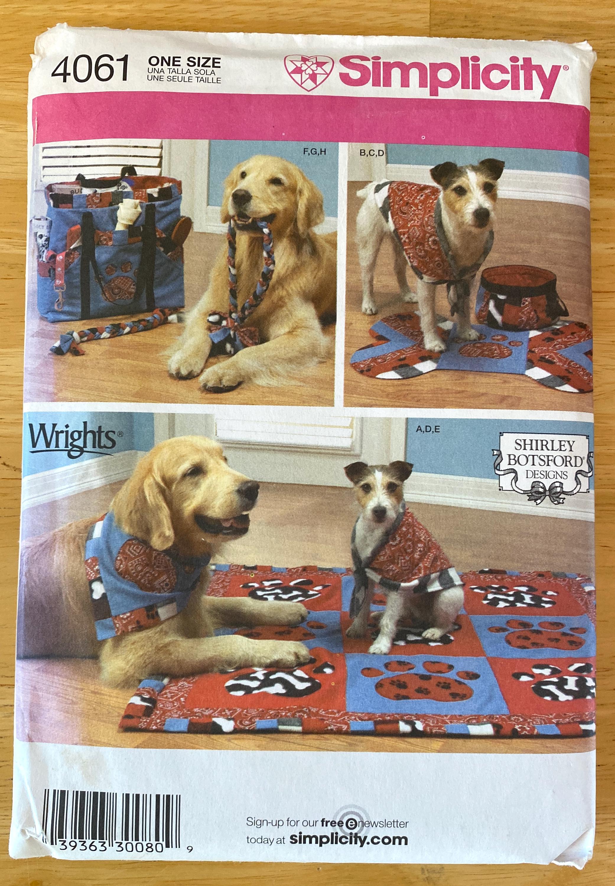 Simplicity 4061: Shirley Botsford Design for Simplicity, 2005 pattern, printed in USA. 34 pattern pieces make a blanket, a bowl, a place mat, two scarves, two toys & a bag to carry all your pet's stuff. Out of print & hard to find. One size.