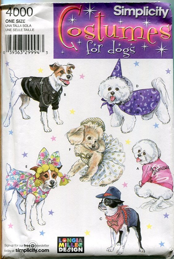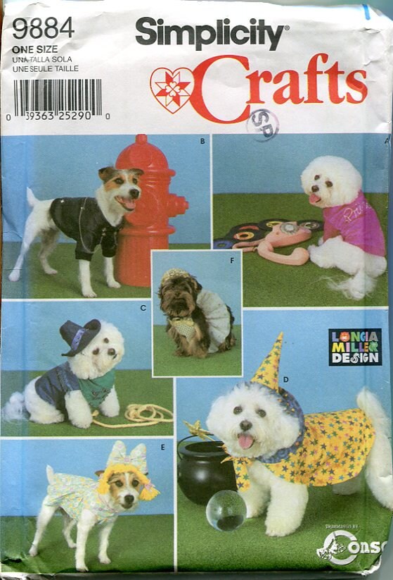 Simplicity 9884 & Simplicity 4000 are exactly the same pattern. The 9884 came out in 2001 & the 4000 came out in 2006, the only differences are the pattern cover. 9884 has photos & 4000 has drawings, otherwise all the information is the same. Longia Miller Design, 36 pattern pieces making the tough guy leather like coat, the wizard costume (complete with hat), the princess coat, the cowboy vest, scarf & hat, the little girl dress & bow (and instructions to make the braids, too) plus the fancy dress & tiara...and if you buy this pattern & make that tiara, I want to see a picture of it on your pet's head. <g>