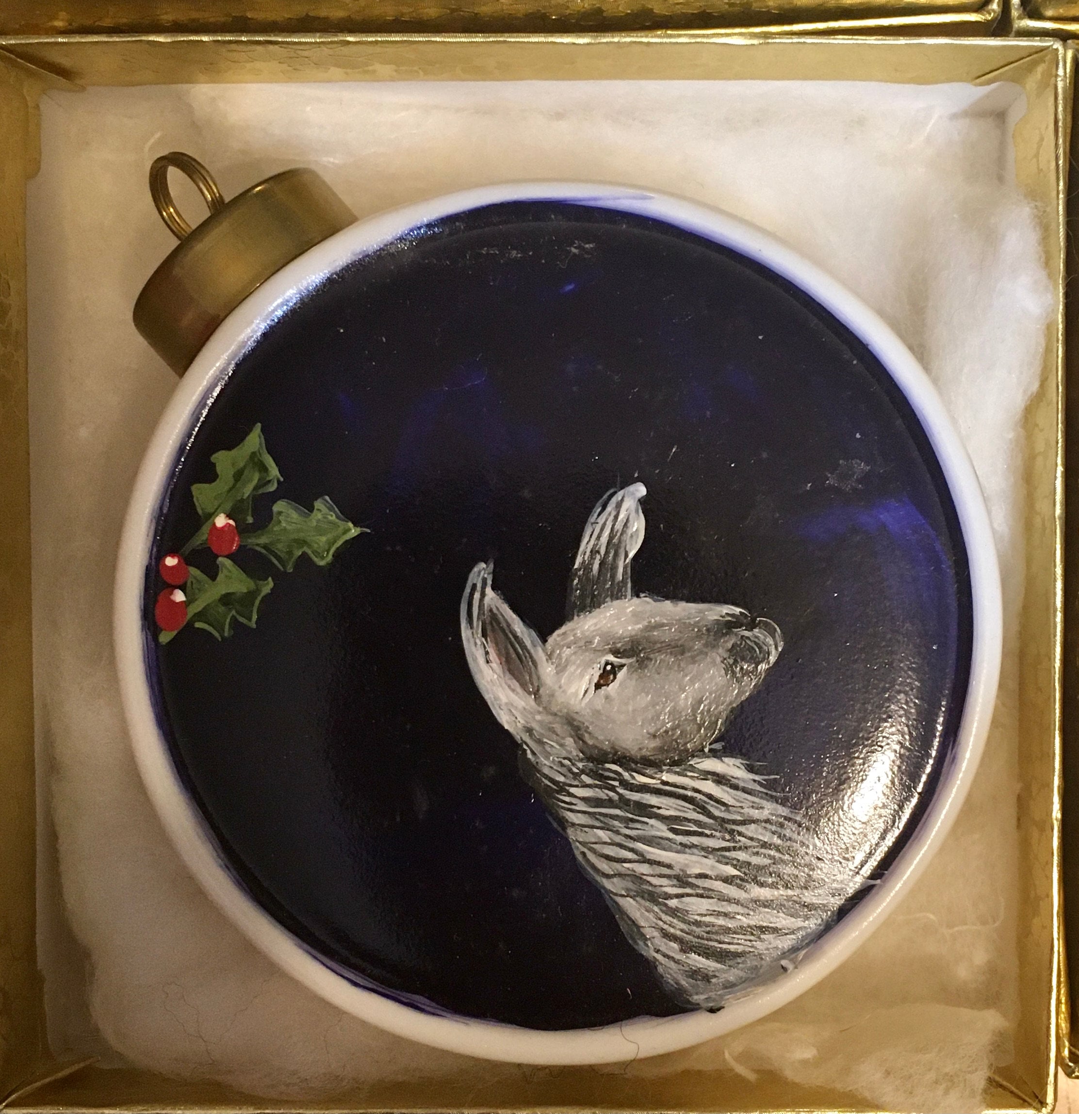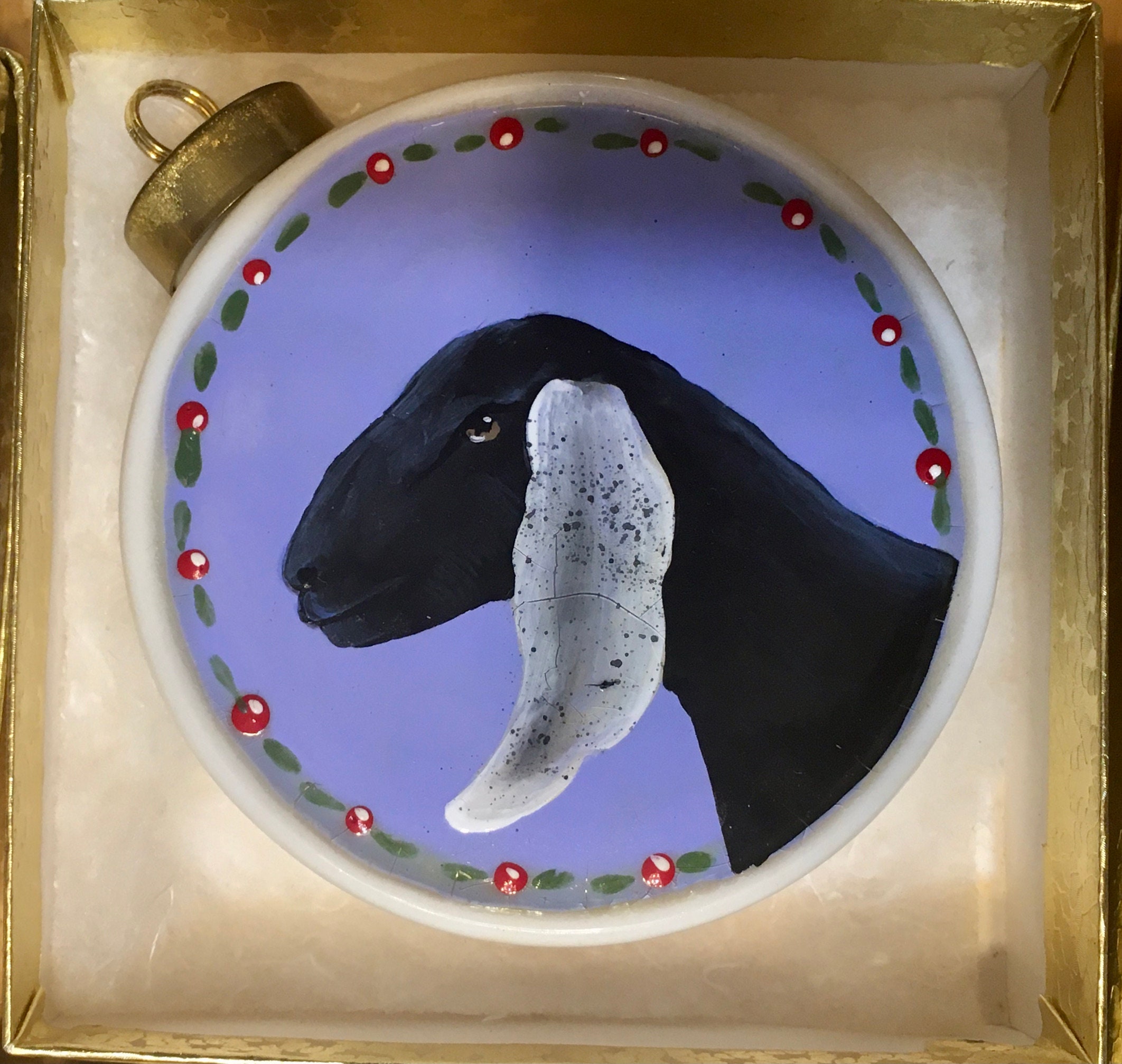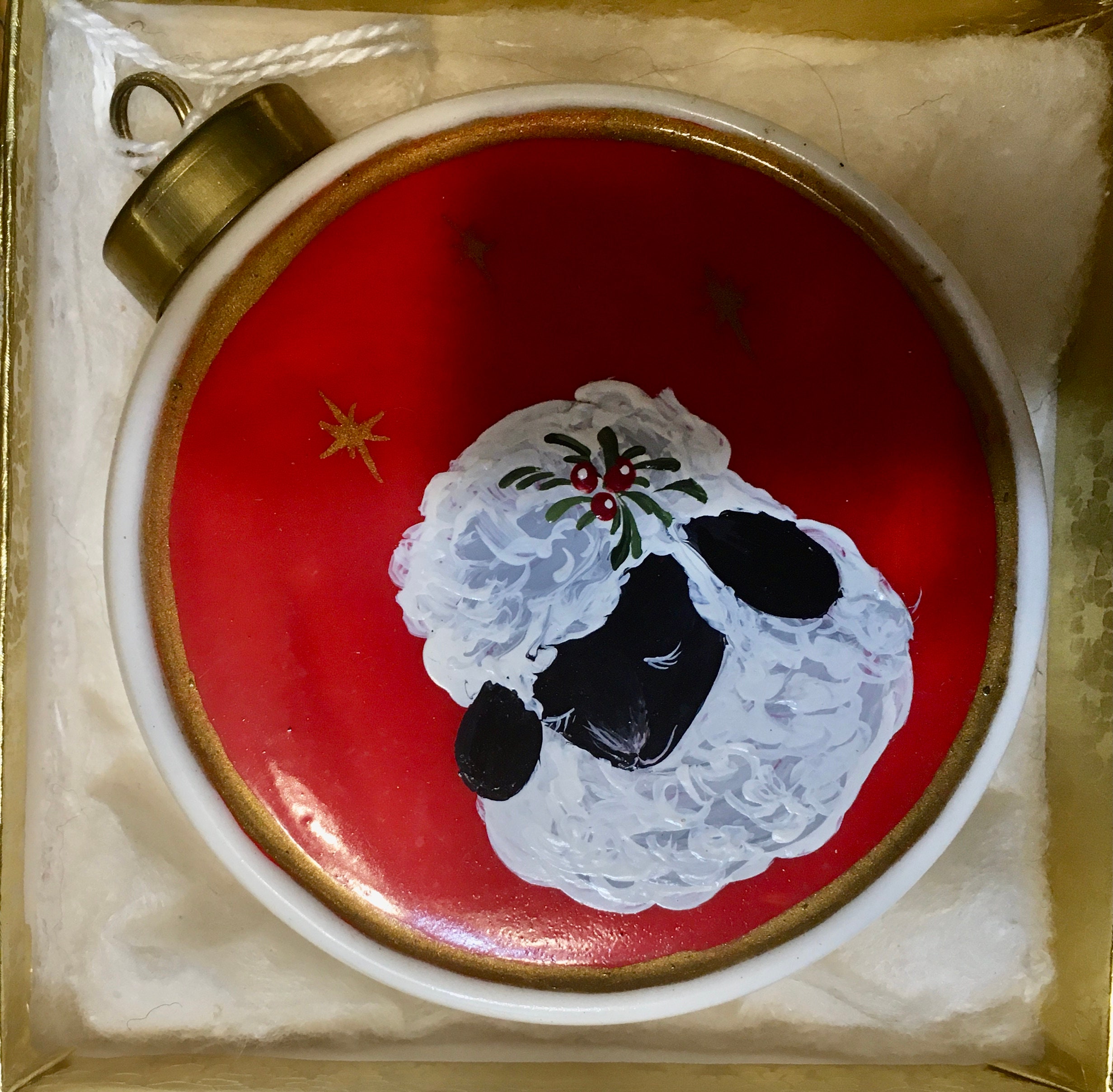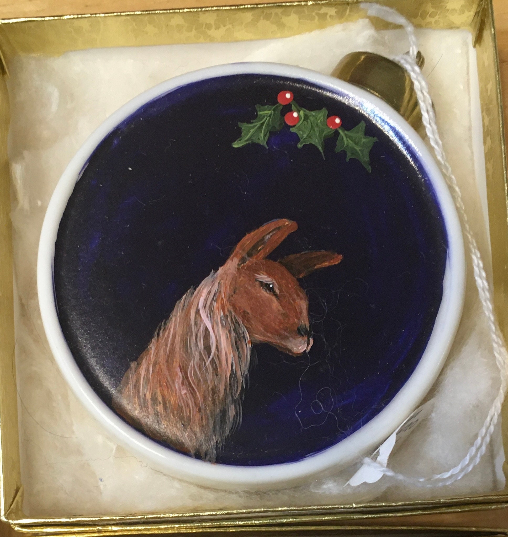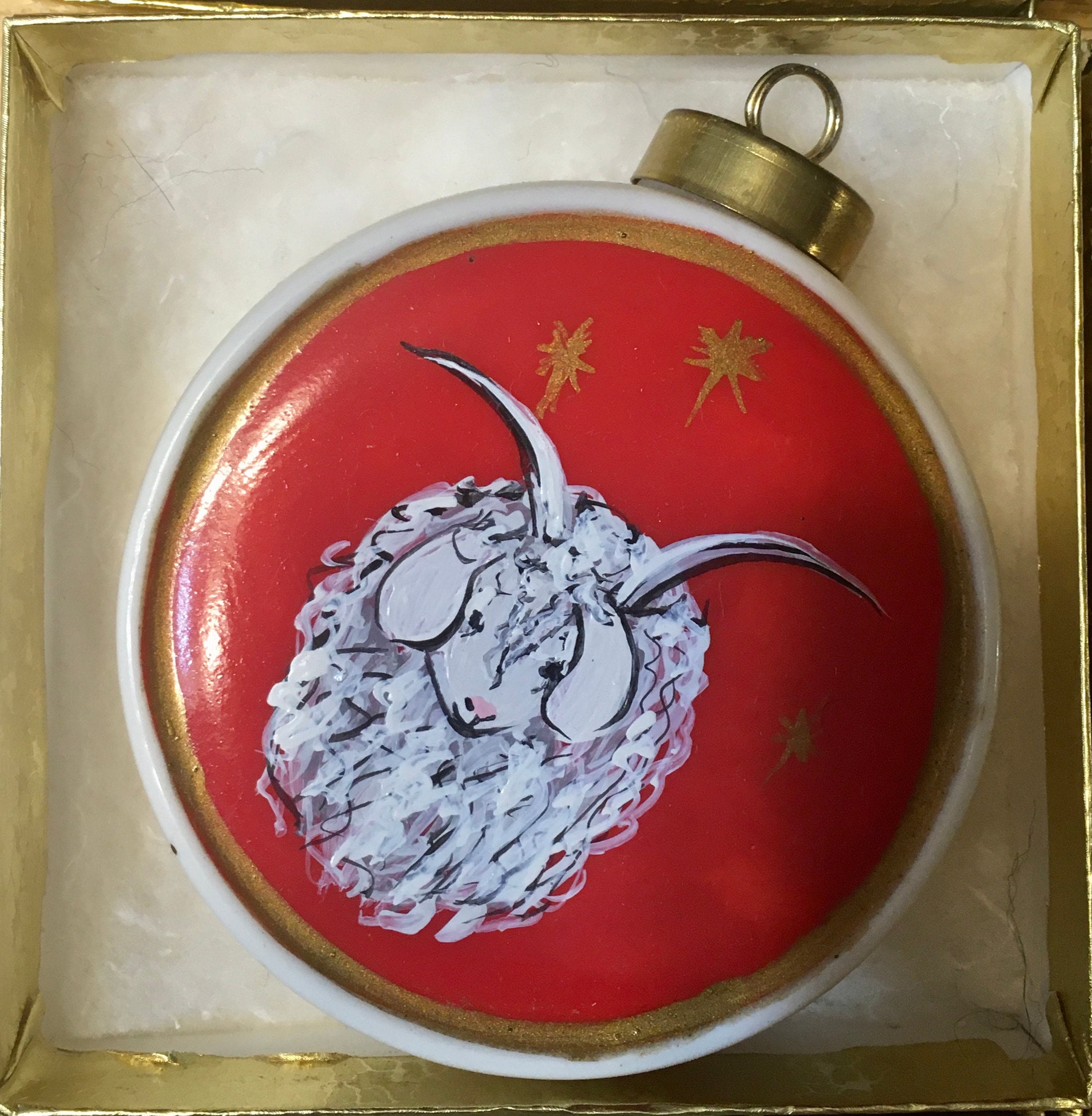 THE Christmas gift for people who love goats, sheep, alpacas or llamas...or all of the above! These are hand-painted porcelain Christmas tree ornaments, painted by Pat Bell of North Carolina who painted them 20+ years ago for my old business. This is all I have left to sell. 3" in diameter x 1" thick.