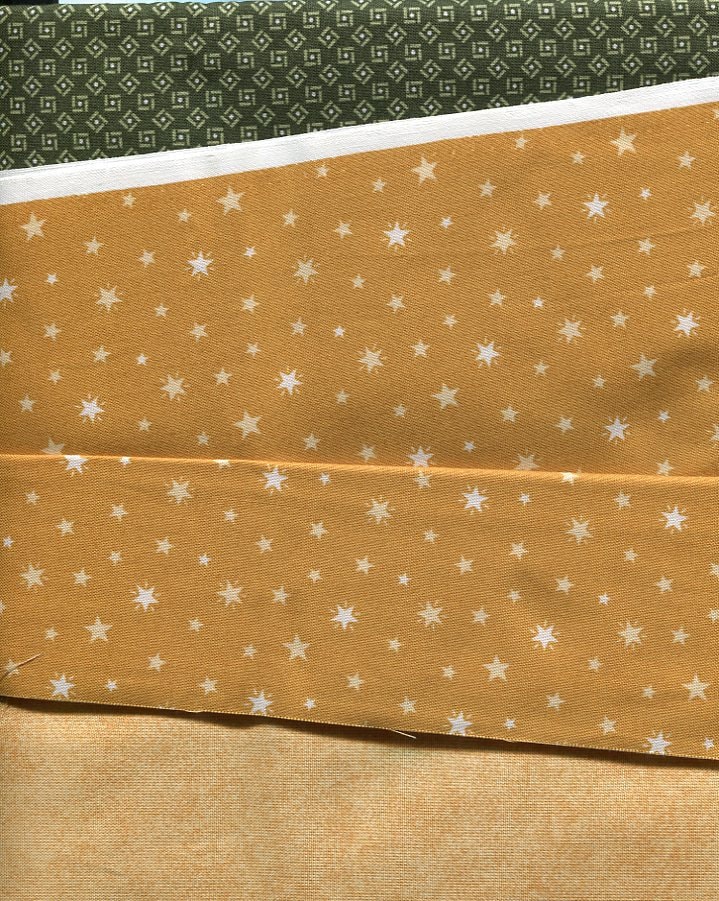 Also note, when they added the Starbright Gold FQ, they must have had a problem with the fabric so they cut another FQ but left the error in the kit...so everything is here plus a strip 8" wide by half the width of the fabric.