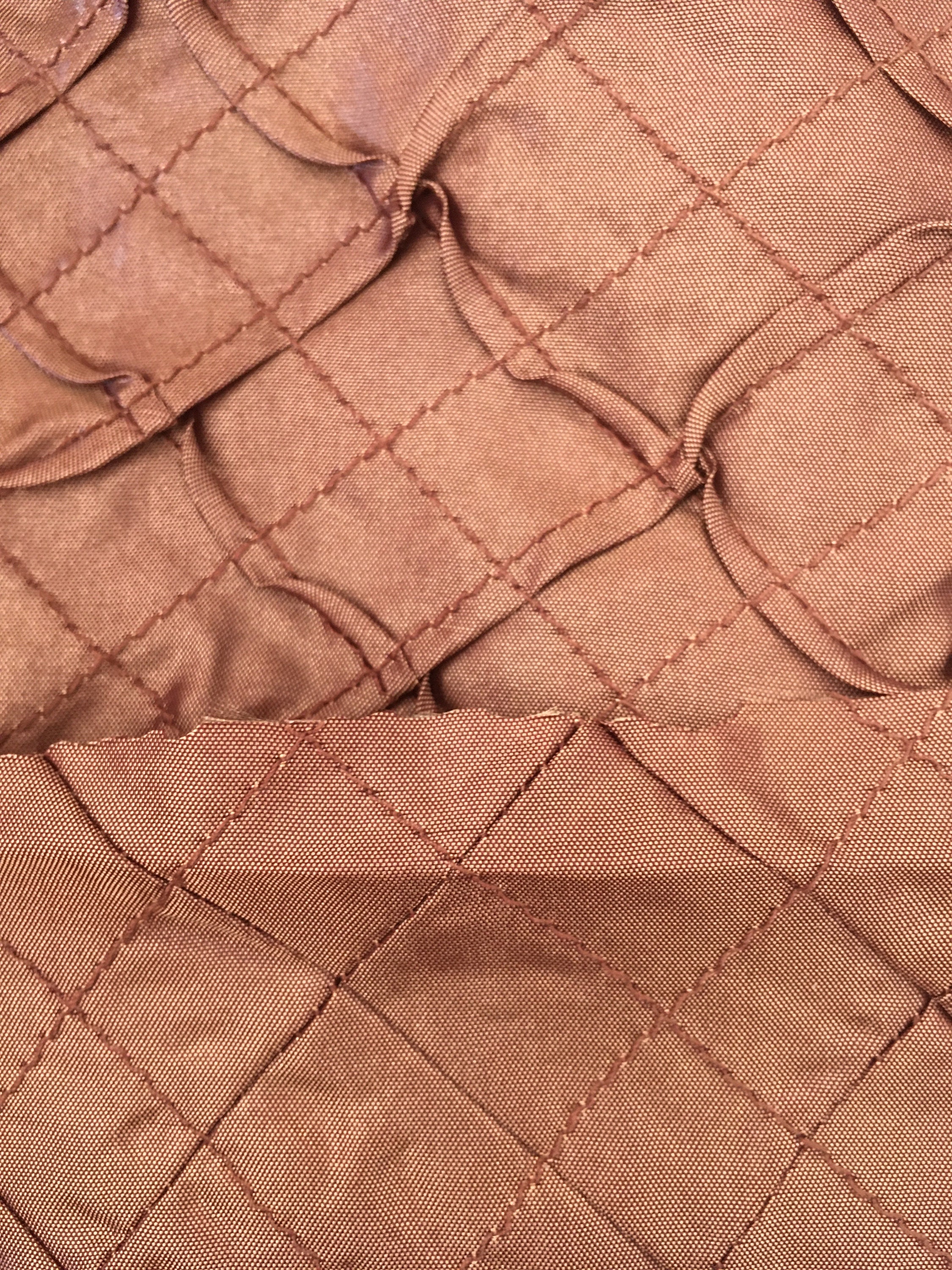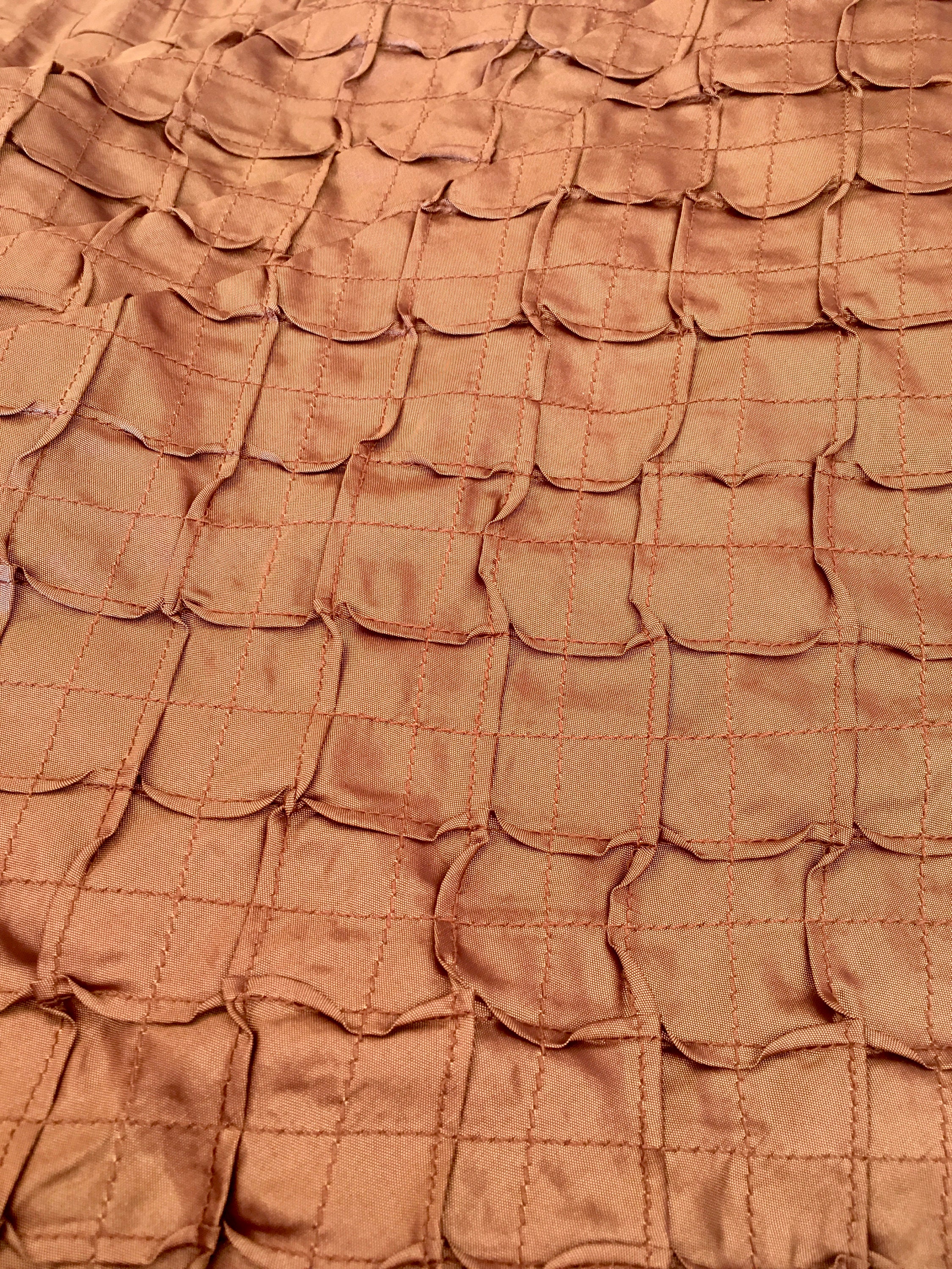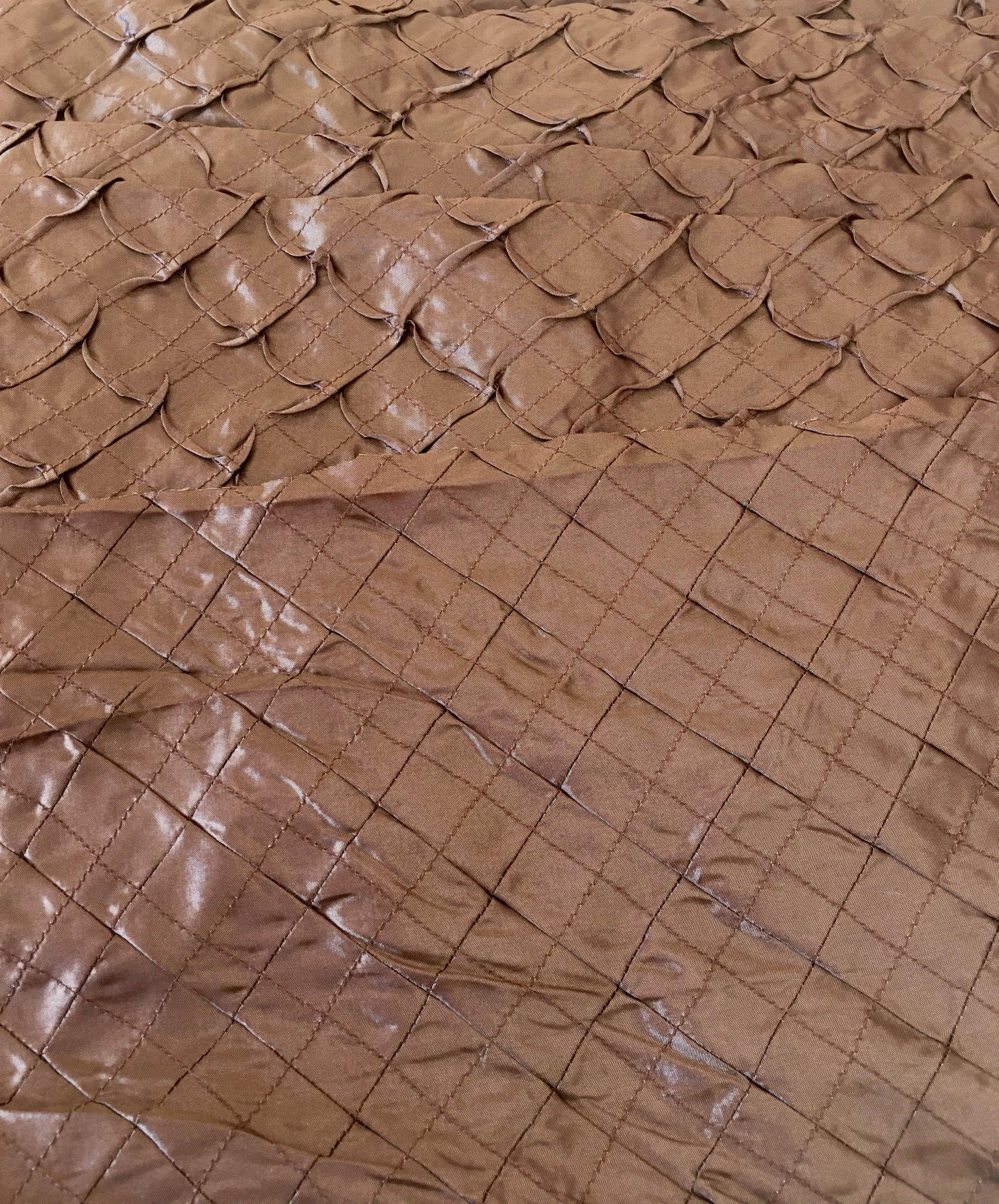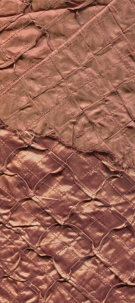 This is a gorgeous example of pleated taffeta. Tiny pleats are cross-hatched in 1.5" squares & then top stitched to give more movement to the fabric.