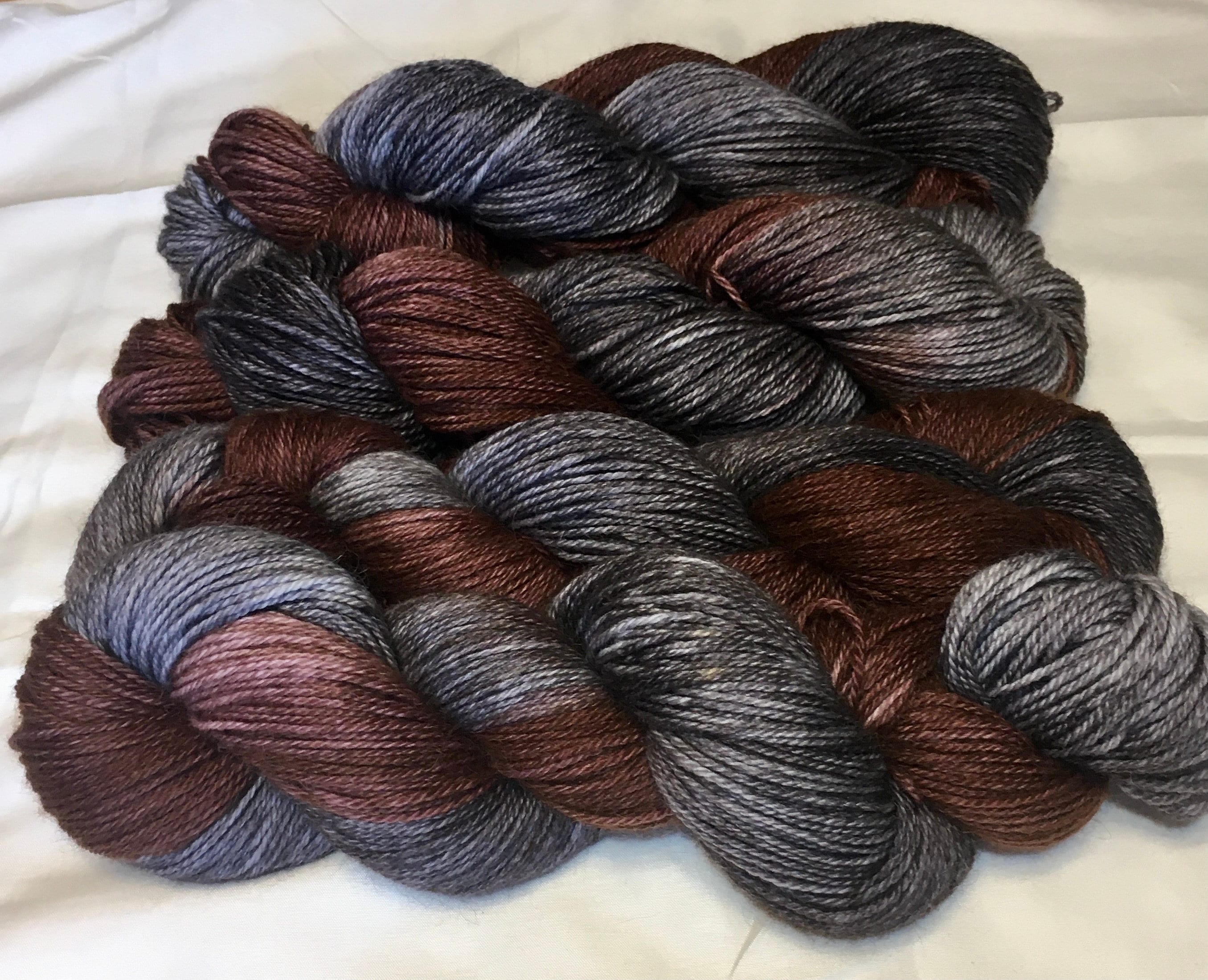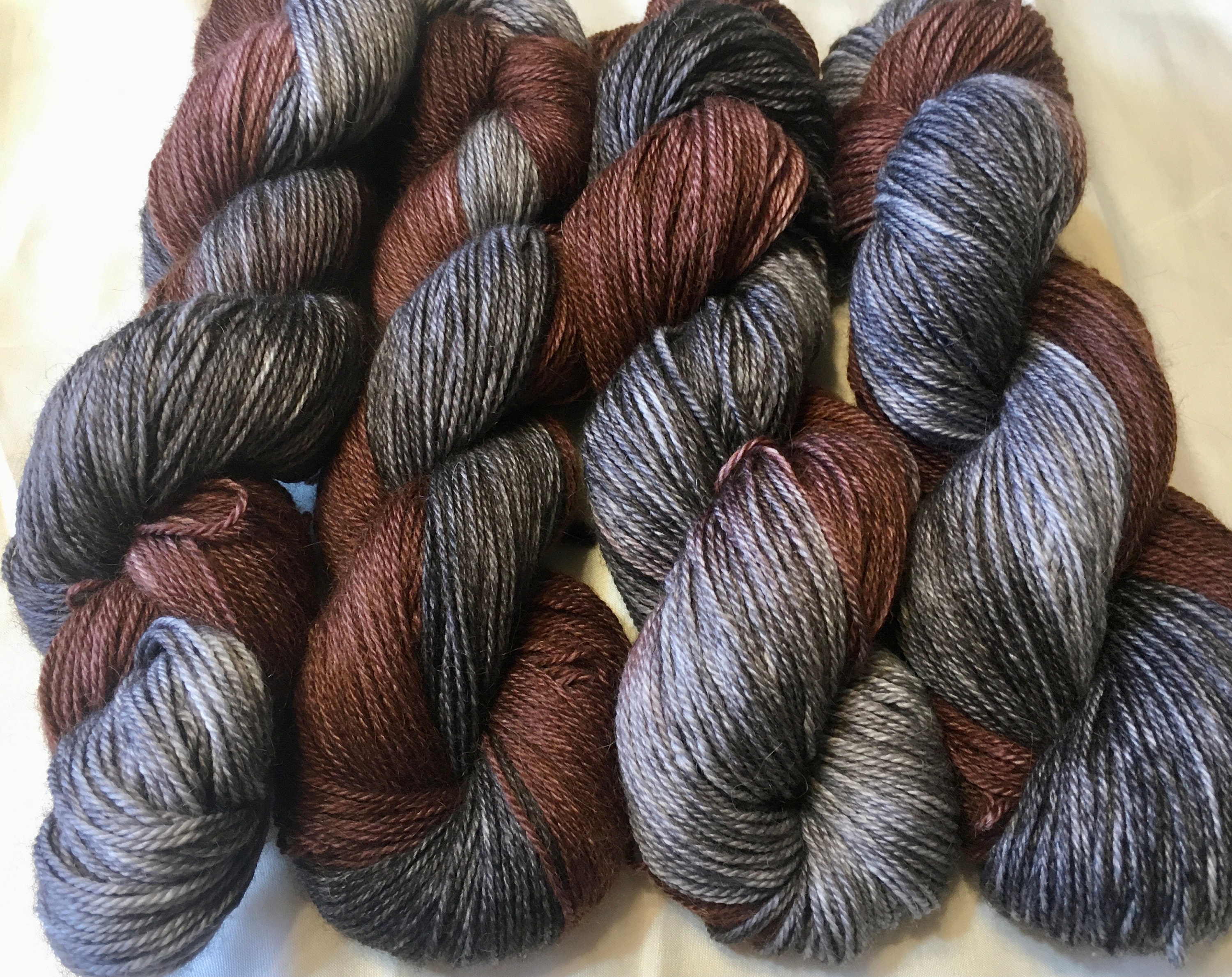 Soft as a cloud baby alpaca yarn, hand painted with brown & black with darker and lighter hues of each as the colors blend. Iron Maiden is ready for you to make something truly yummy with it! Each skein is 291 yards per 3.5oz. This a sport weight yarn.