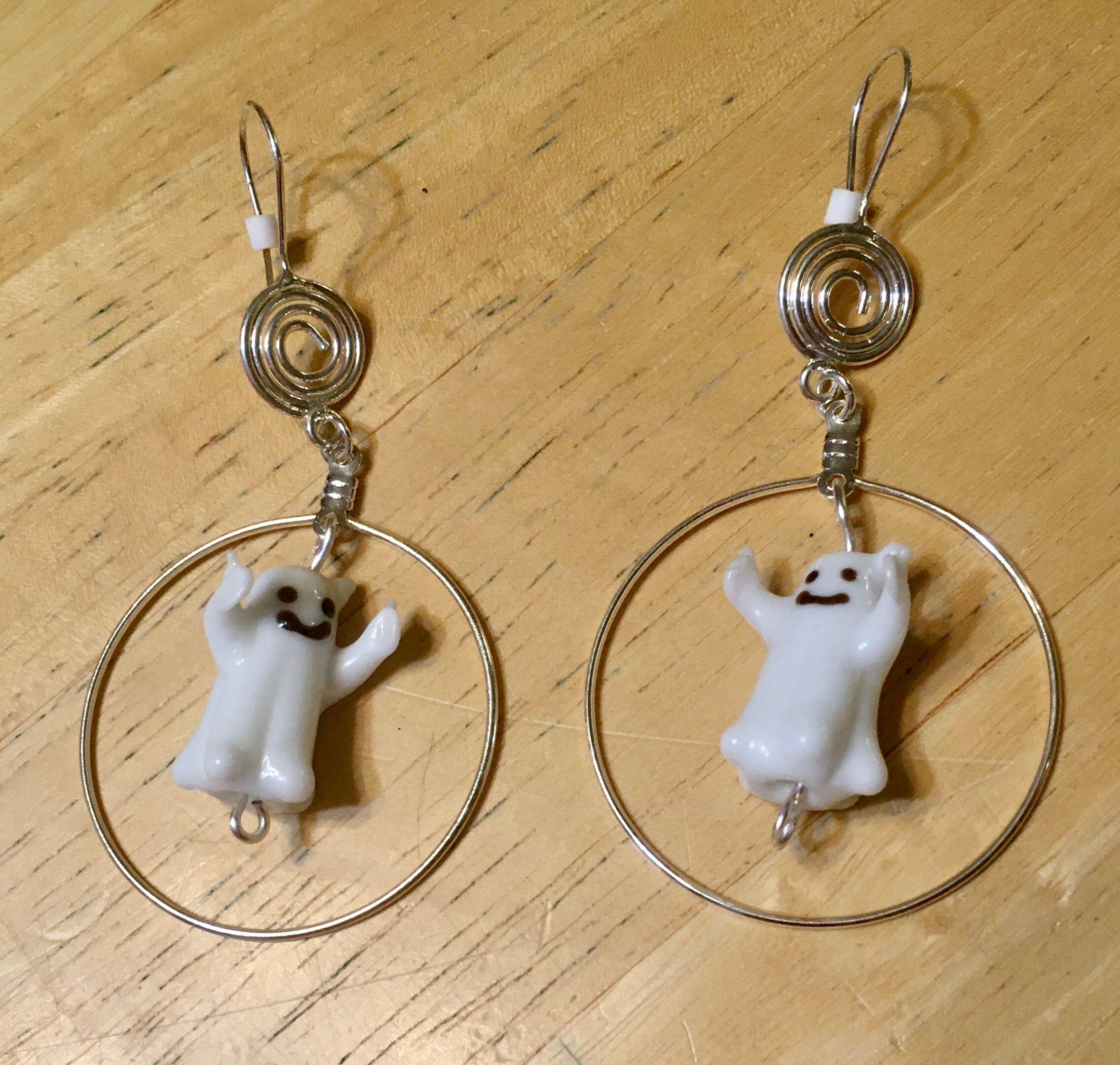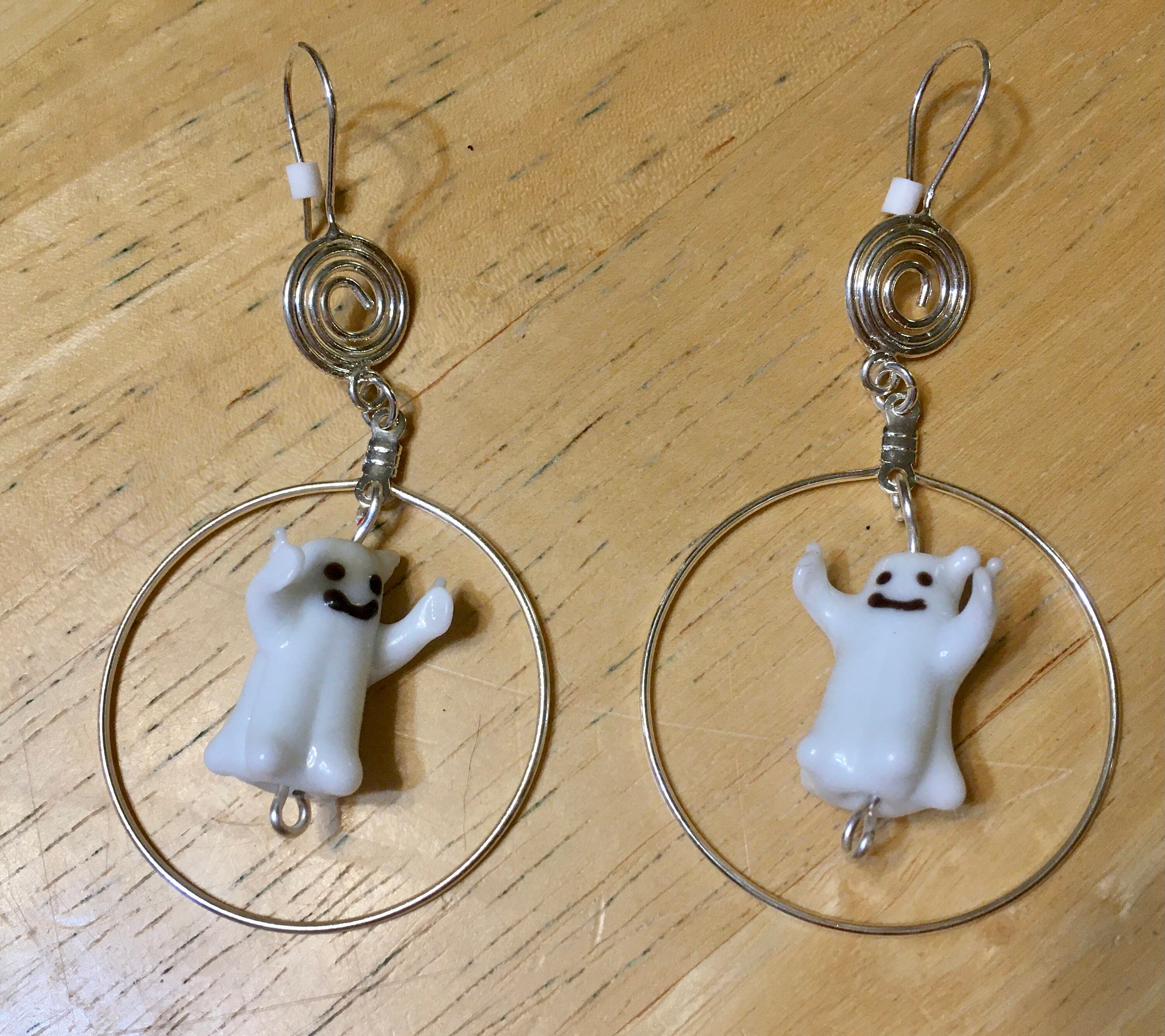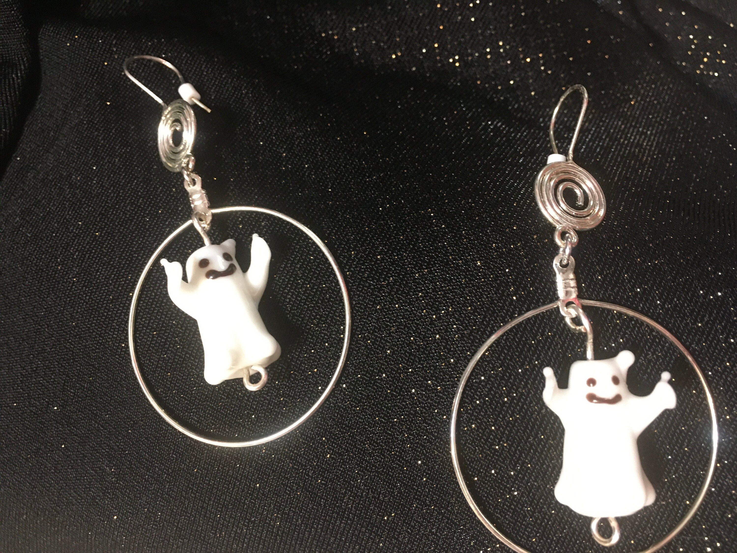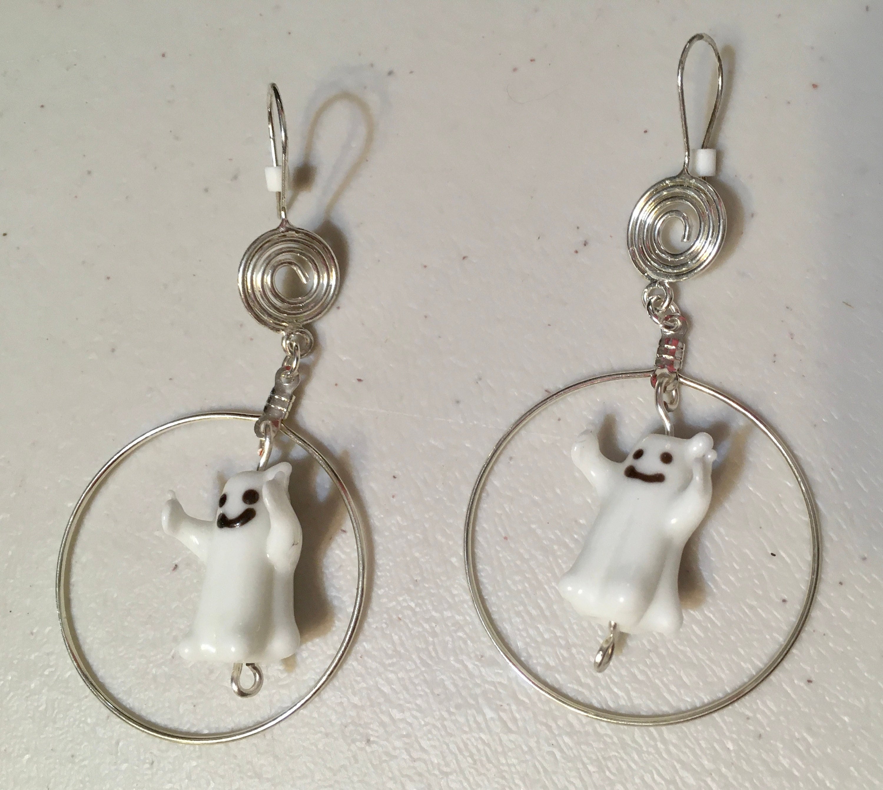 From the top to the bottom the earrings hang 3". The hoops surrounding the lampwork ghosts are 1.5" in diameter.