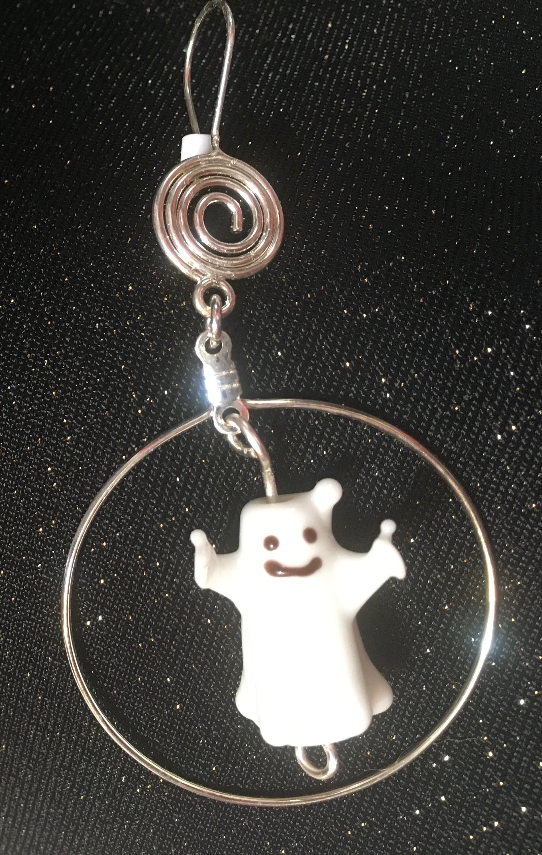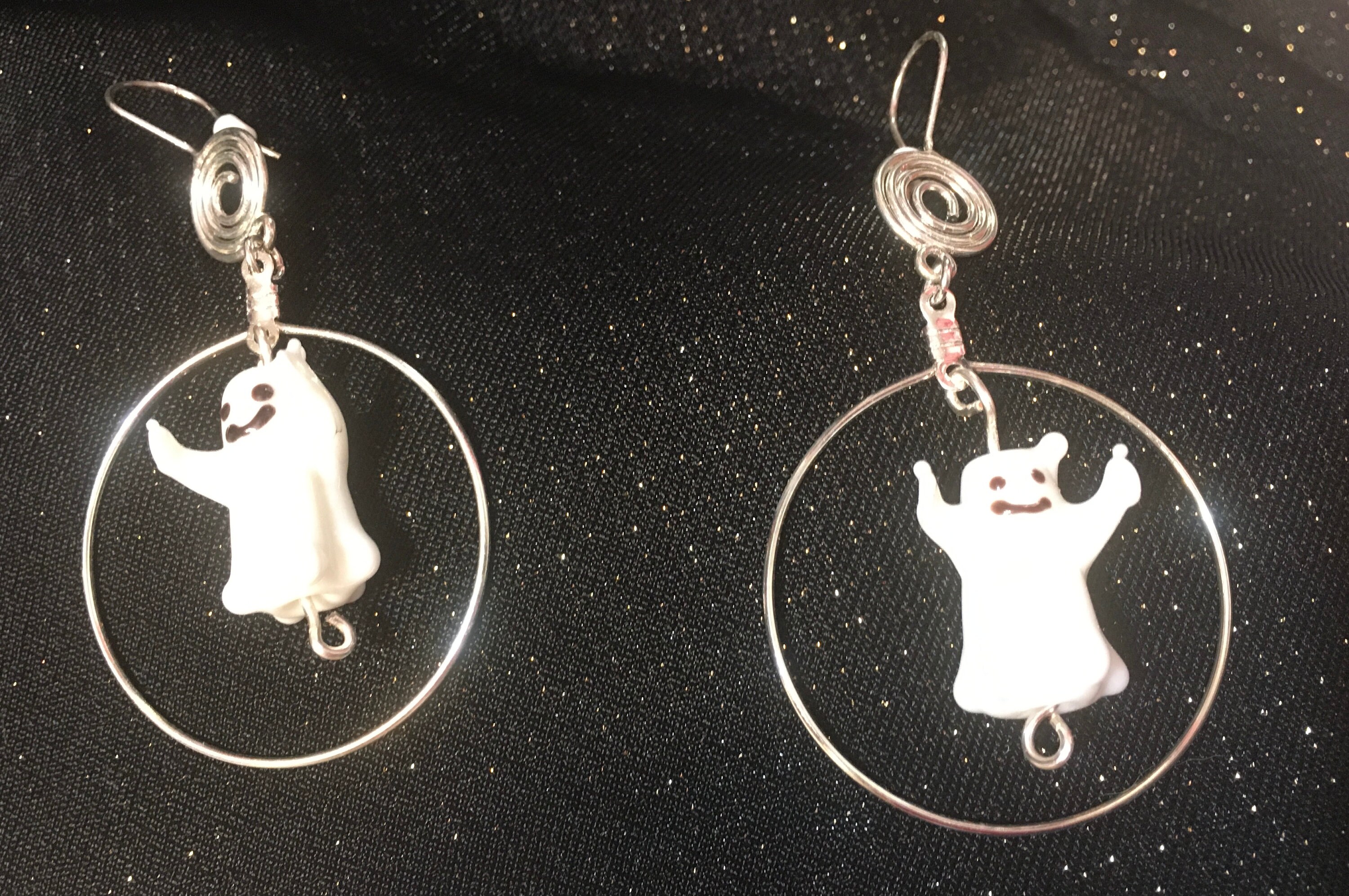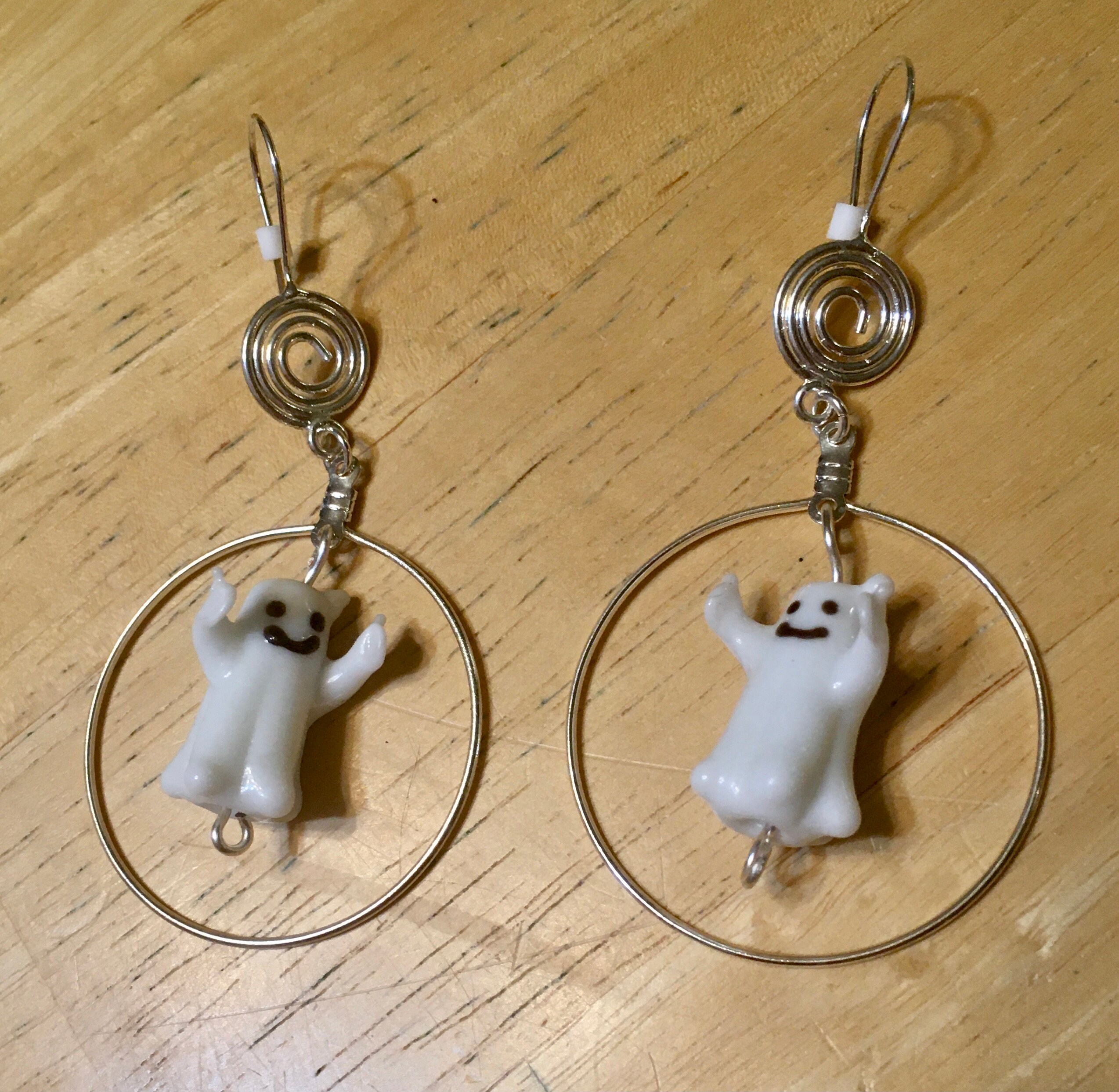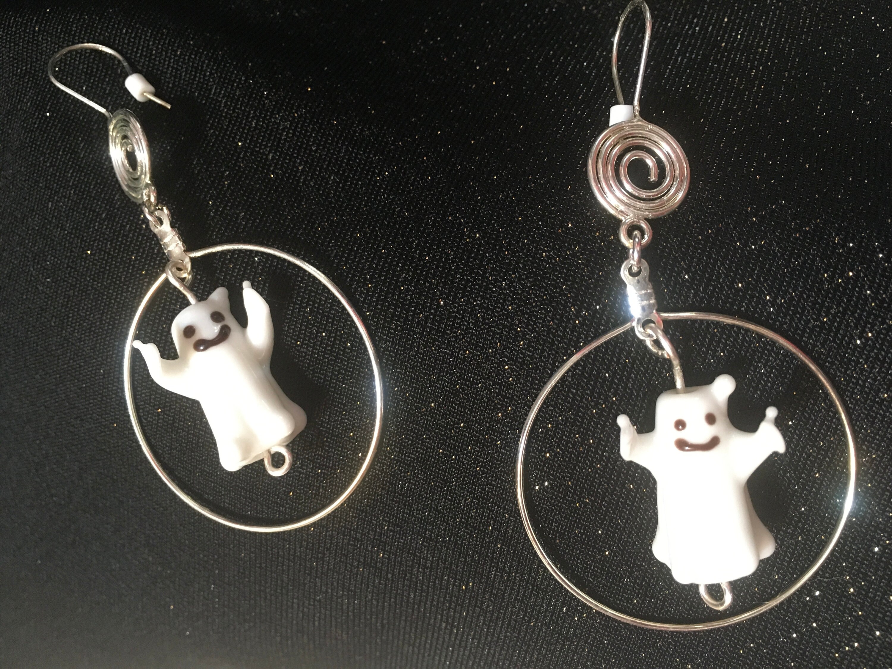 From the top to the bottom the earrings hang 3". The hoops surrounding the lampwork ghosts are 1.5" in diameter.
