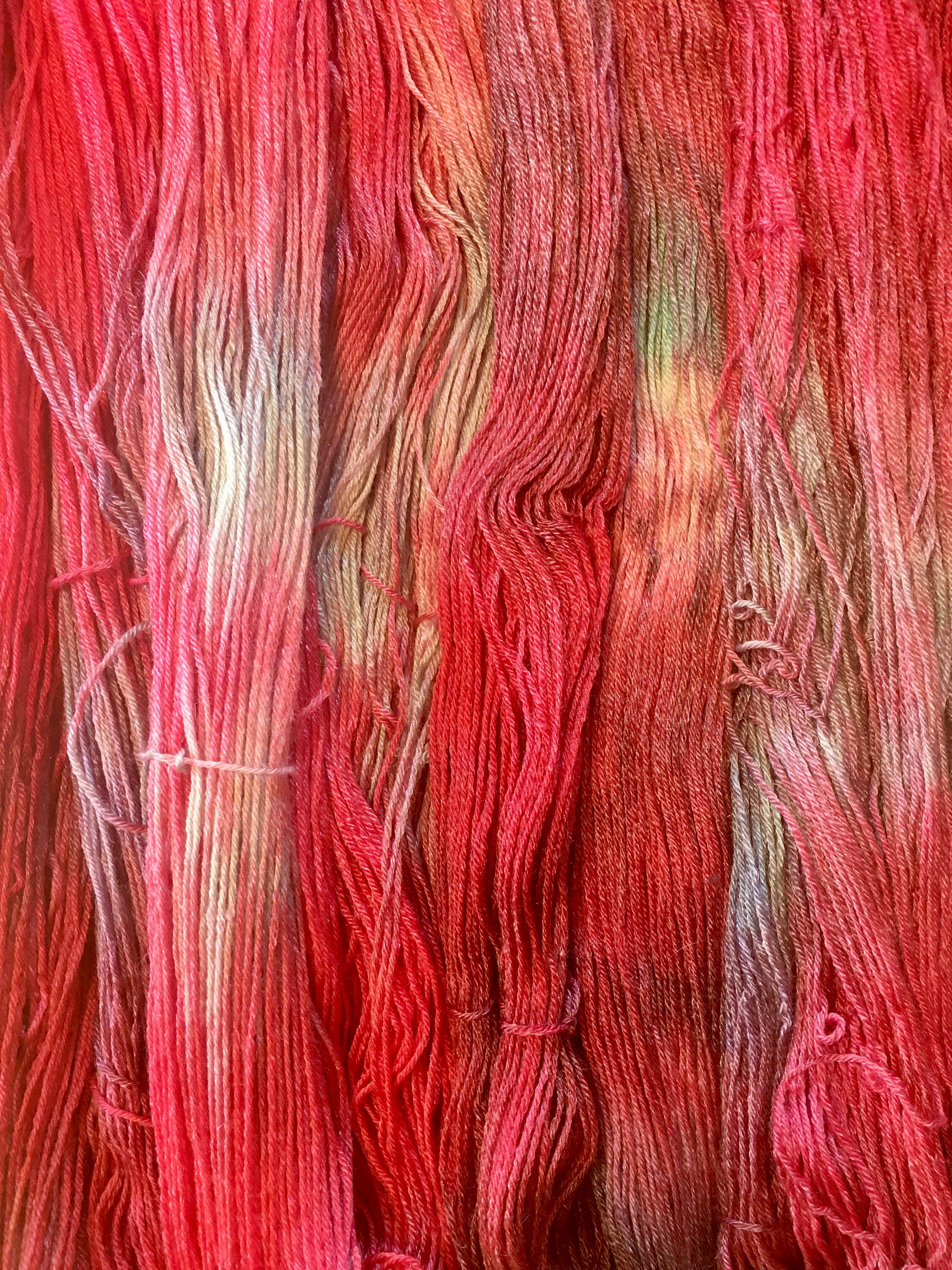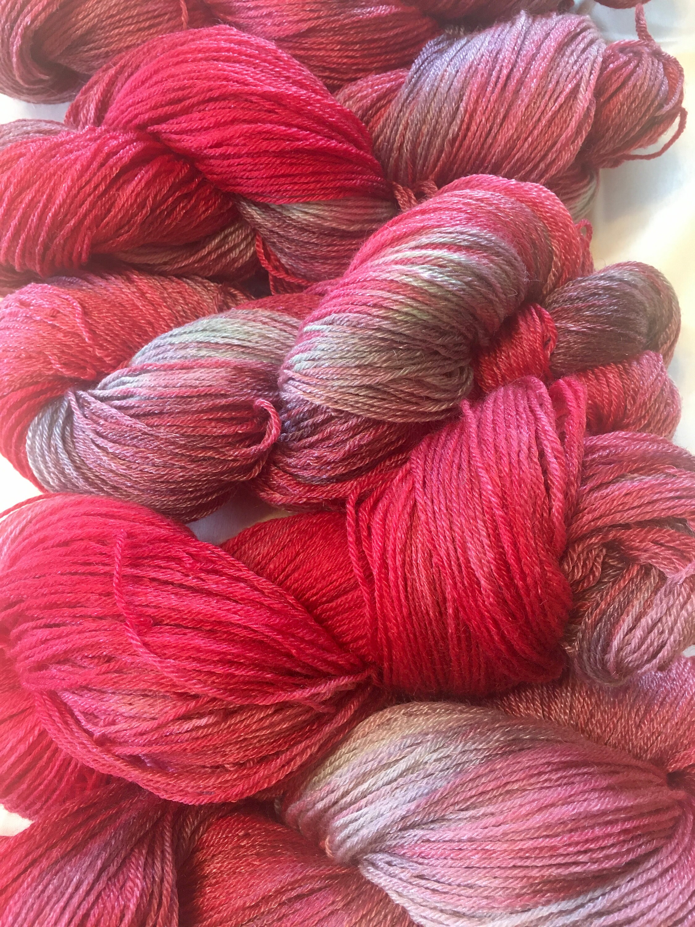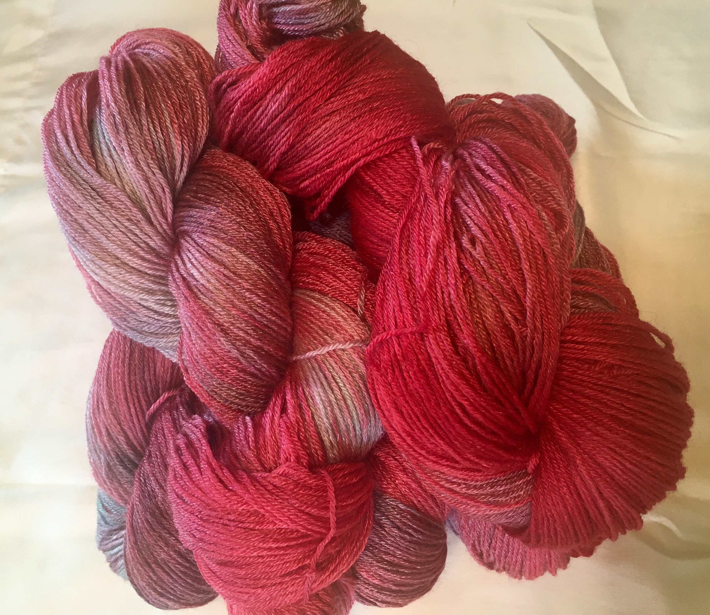 This yarn reminds me of red plaid flannel shirts, cranberries and comfy nights sitting around a campfire.