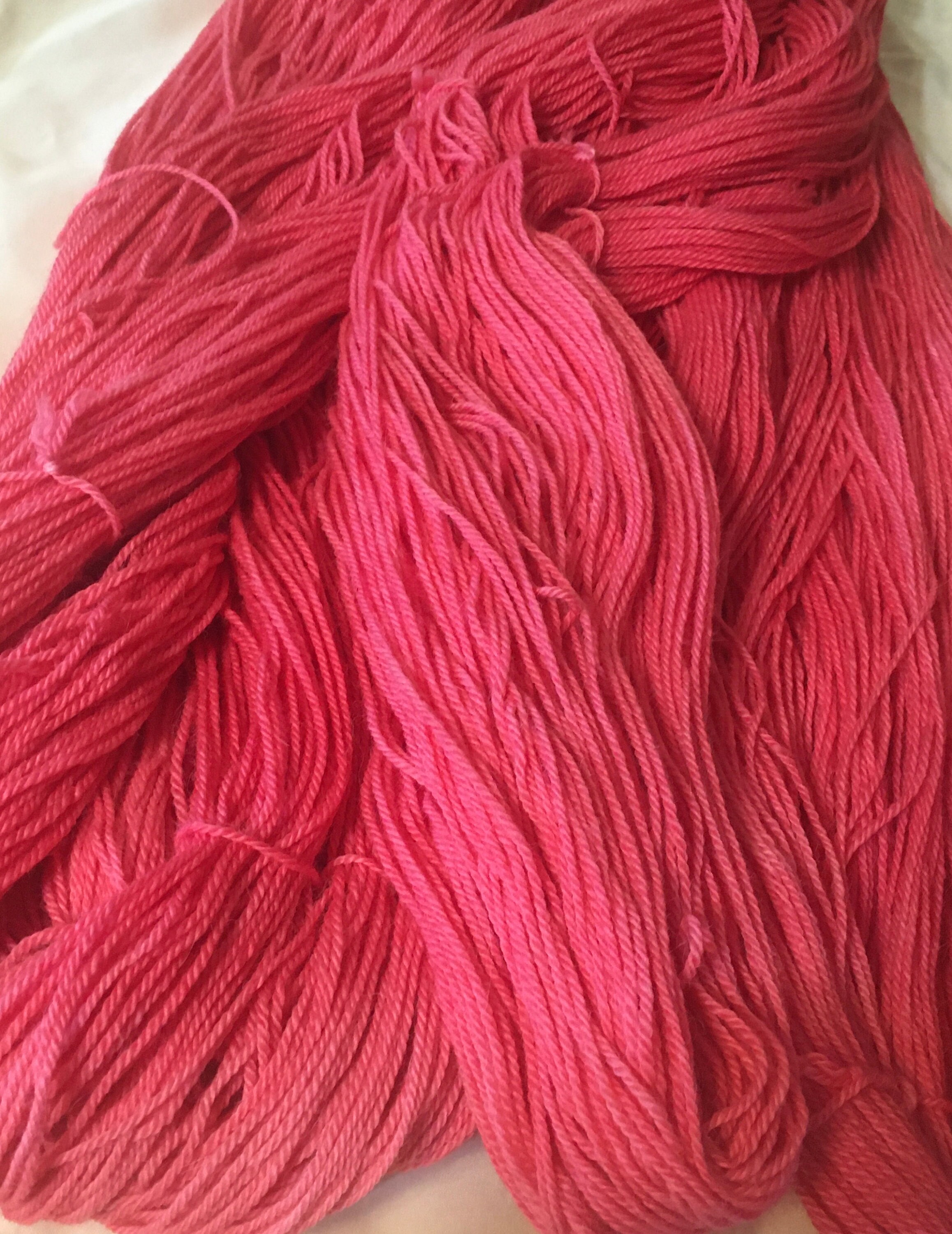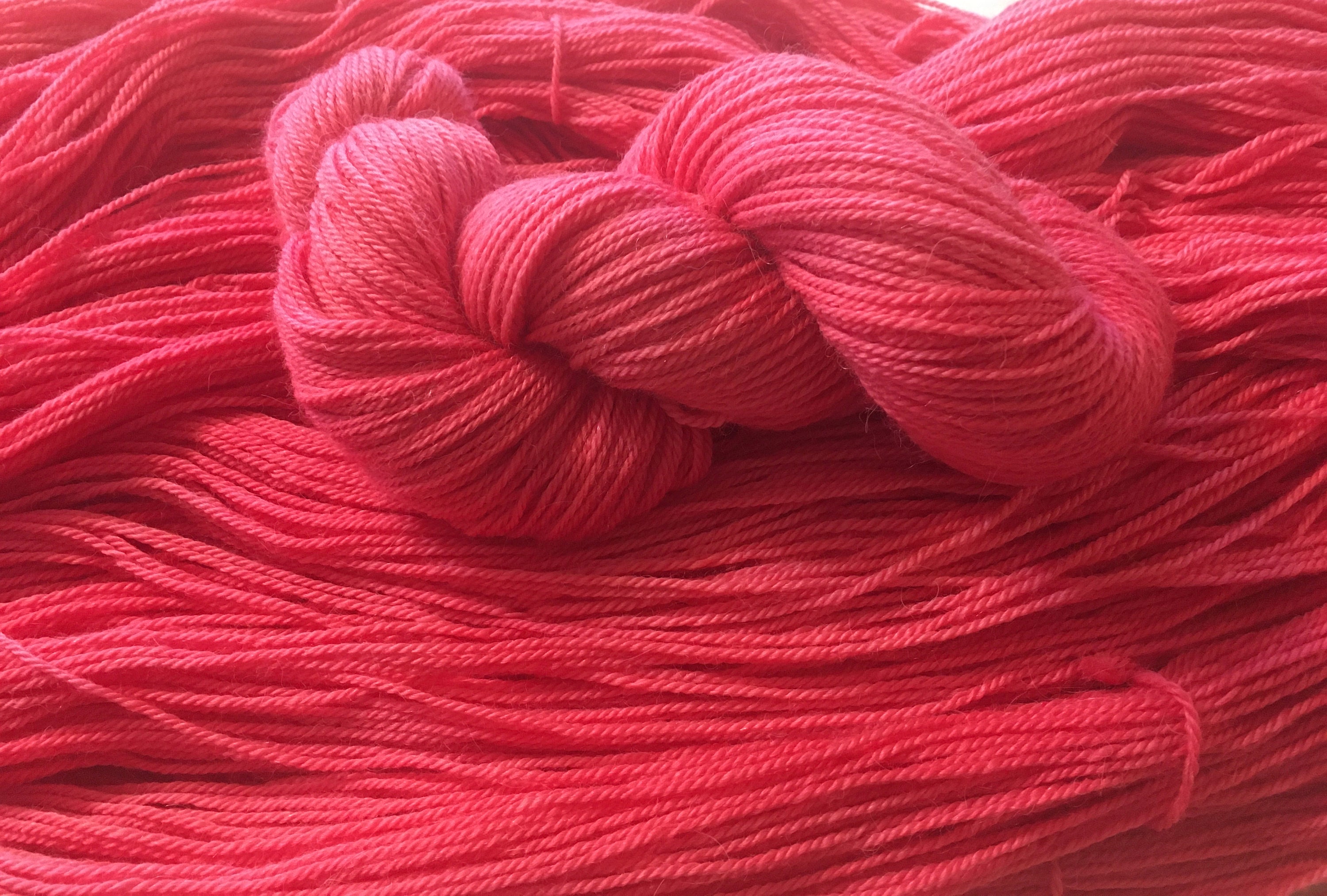Soft as a cloud baby alpaca yarn, kettle dyed in sumptuous pink; perfect for Valentine's Day or for anyone who loves the color pink. This is the second in our "IN Color" line and named for one of Wooly's favorite John Hughes movies. Wooly was on Team Duckie; how about you? It is ready for you to make something truly yummy with it! Each skein is 291 yards per 3.5oz. This a sport weight yarn.