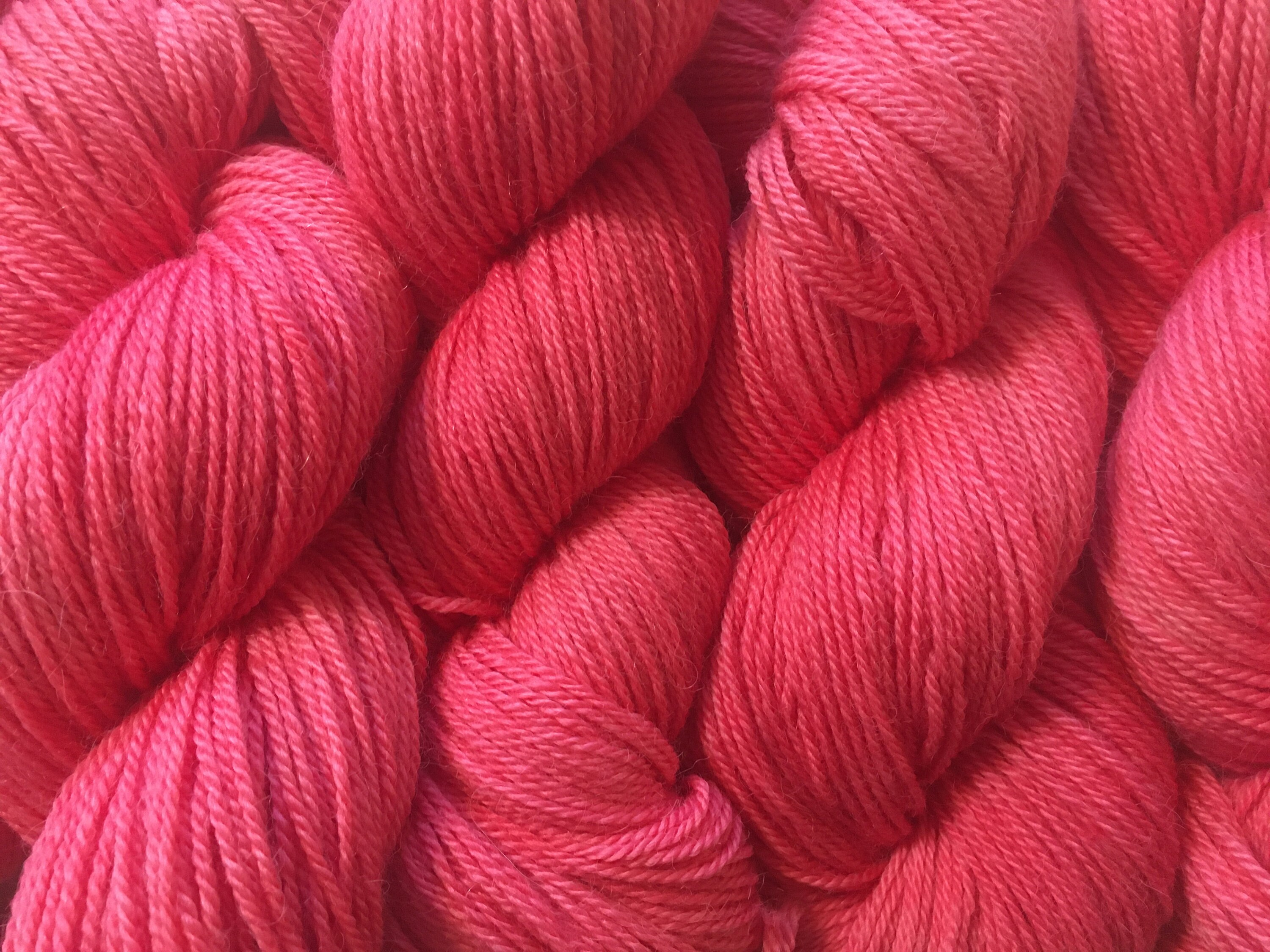 Please note: Kettle dyeing does not result in a uniform color or similar variegation of the skeins of yarn dyed together. Some will have more dark colors, some lighter. No 2 skeins are alike, which is half the fun!