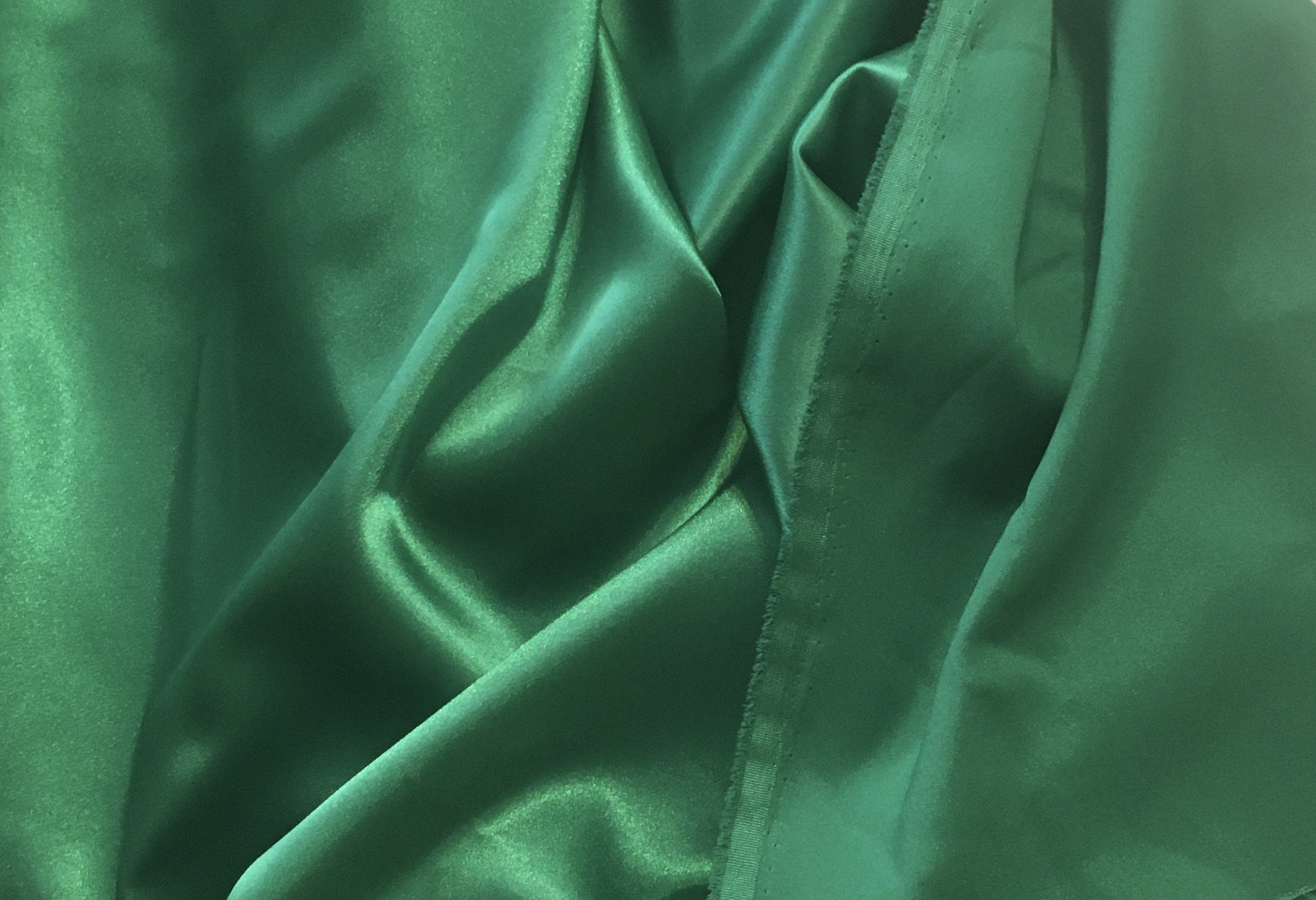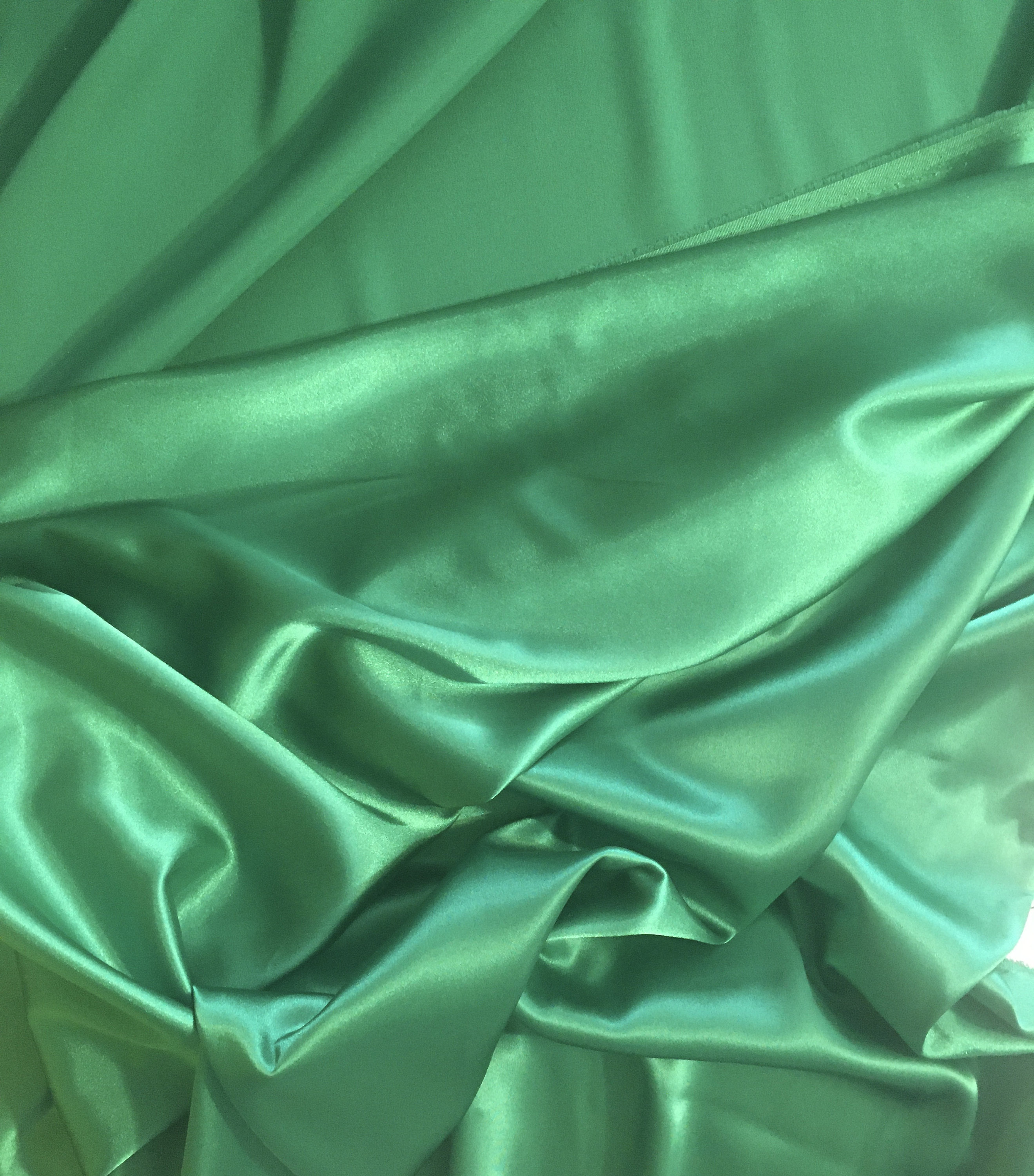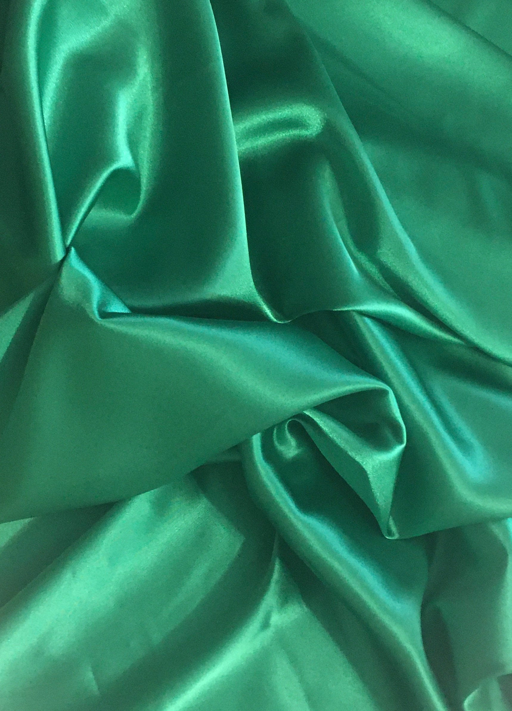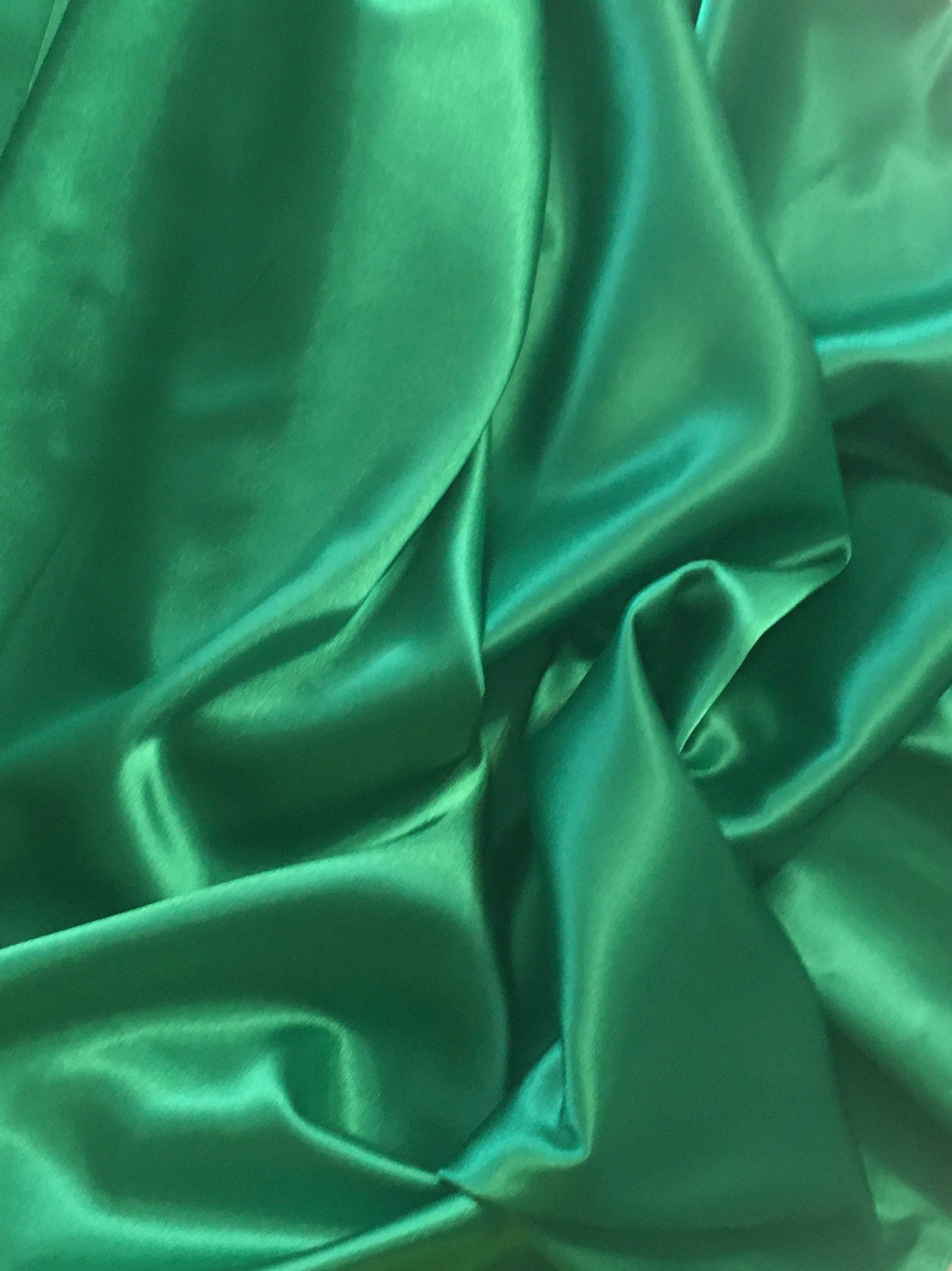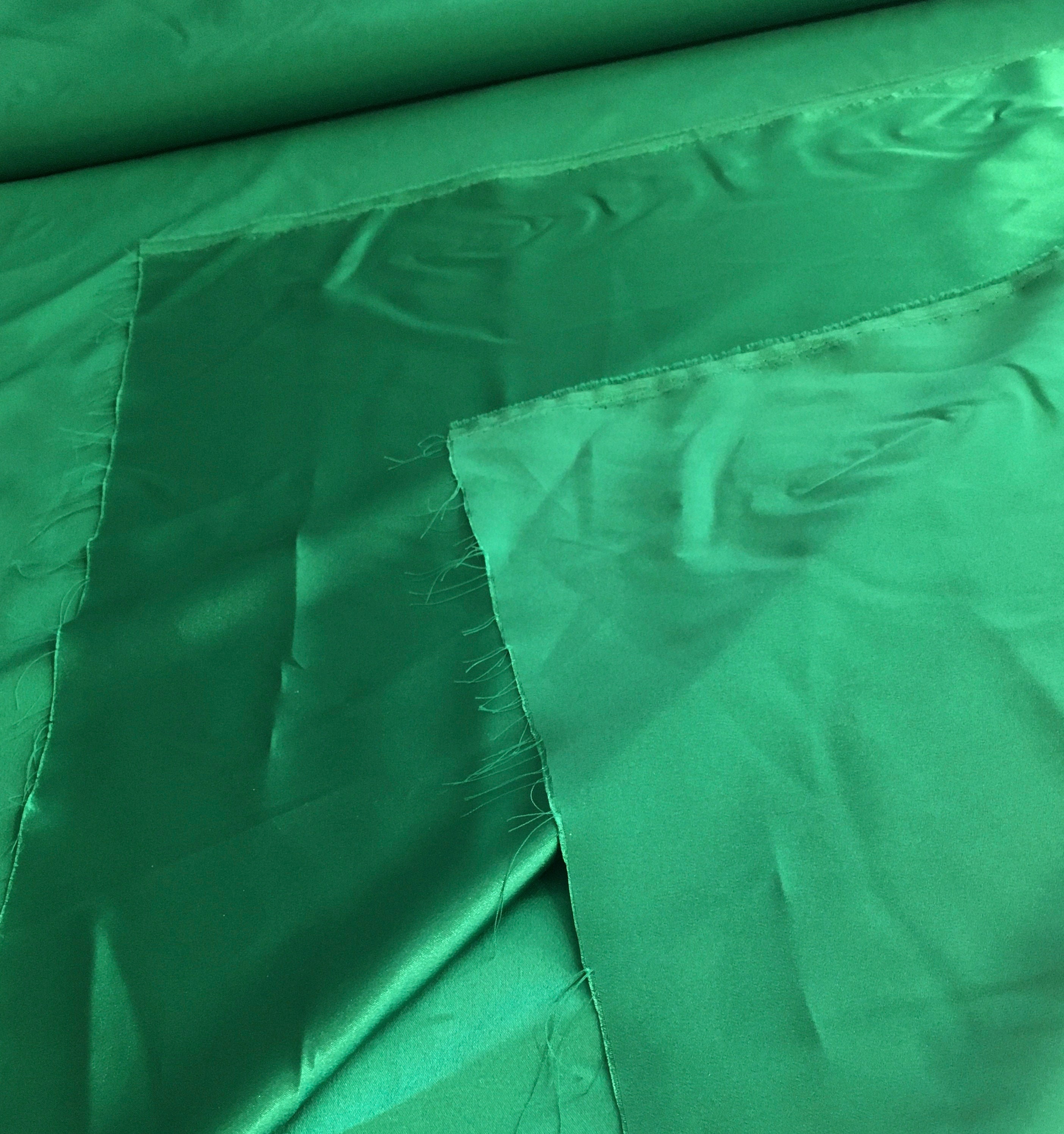 A beautiful Stretch Satin in a luscious Nile Green color. 57/59" Wide, the reverse is a lightly textured back that I find quite lovely. You could use the back for cuffs, collars & various design bits that would coordinate beautifully with the satin.