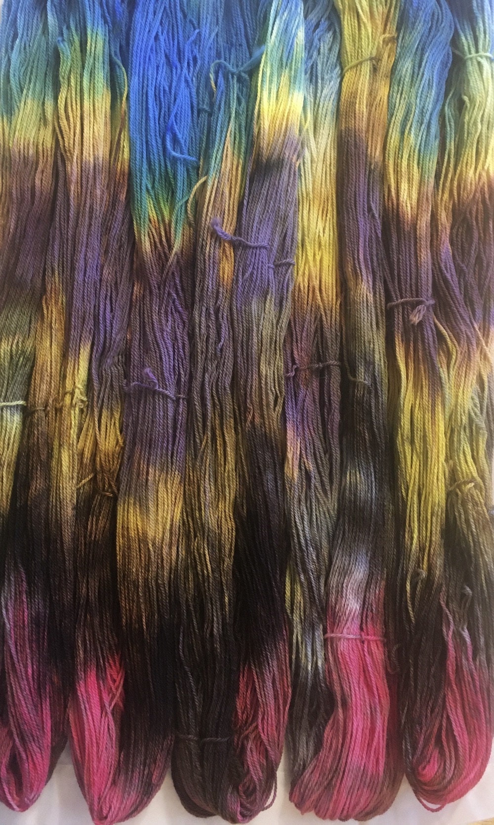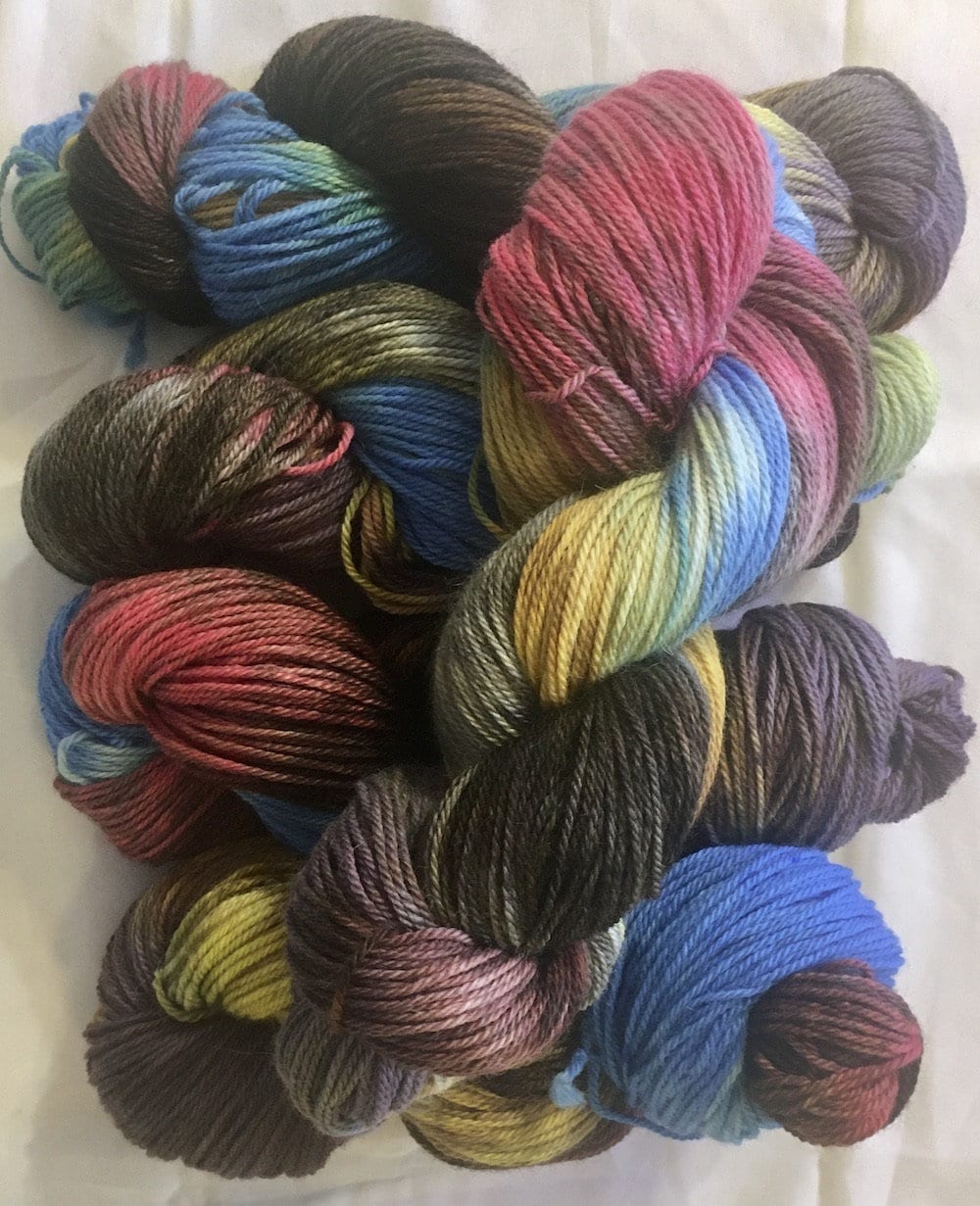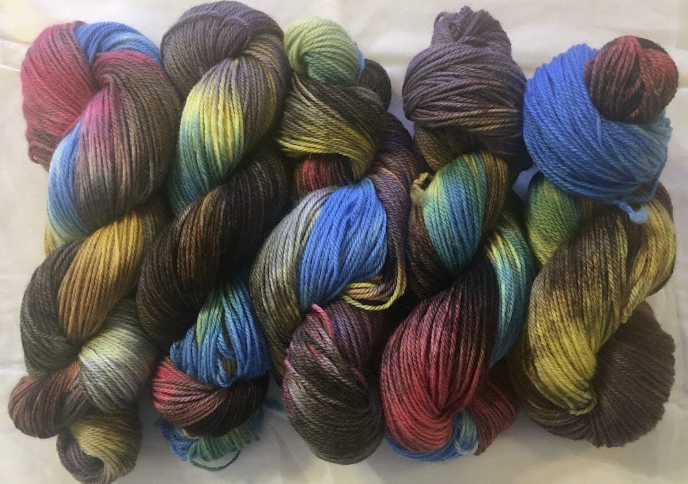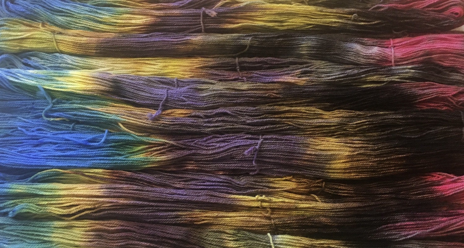 Hand painting means each skein is unique; no two skeins are exactly alike.