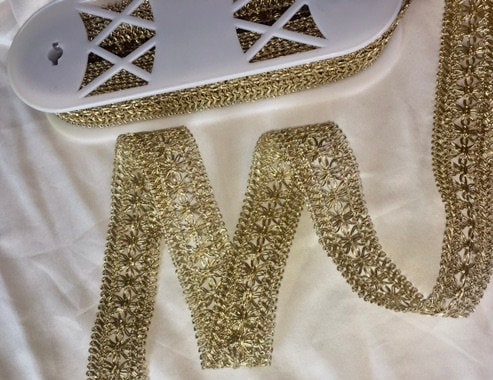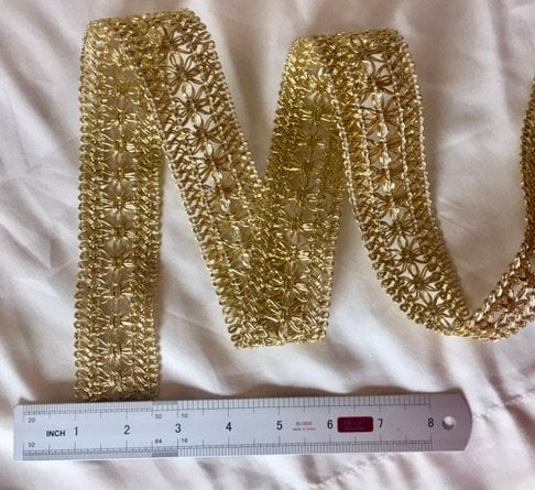 Luxurious wide golden trim to add just the right touch; costuming jumps to mind here. Medieval wear would be perfect. Or Cosplay, Renn Faire, costumes of all kinds. And bridal or jewelry.