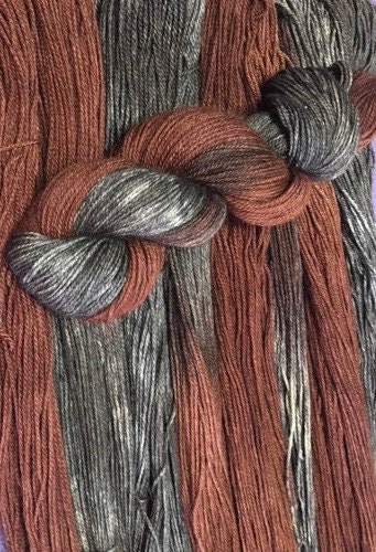 Soft as a cloud baby alpaca yarn, kettle dyed with brown & black with varied hues of each as the colors blend. Dark Iron Maiden is ready for you to make something truly yummy with it! Each skein is 291 yards per 3.5oz. This a sport weight yarn.