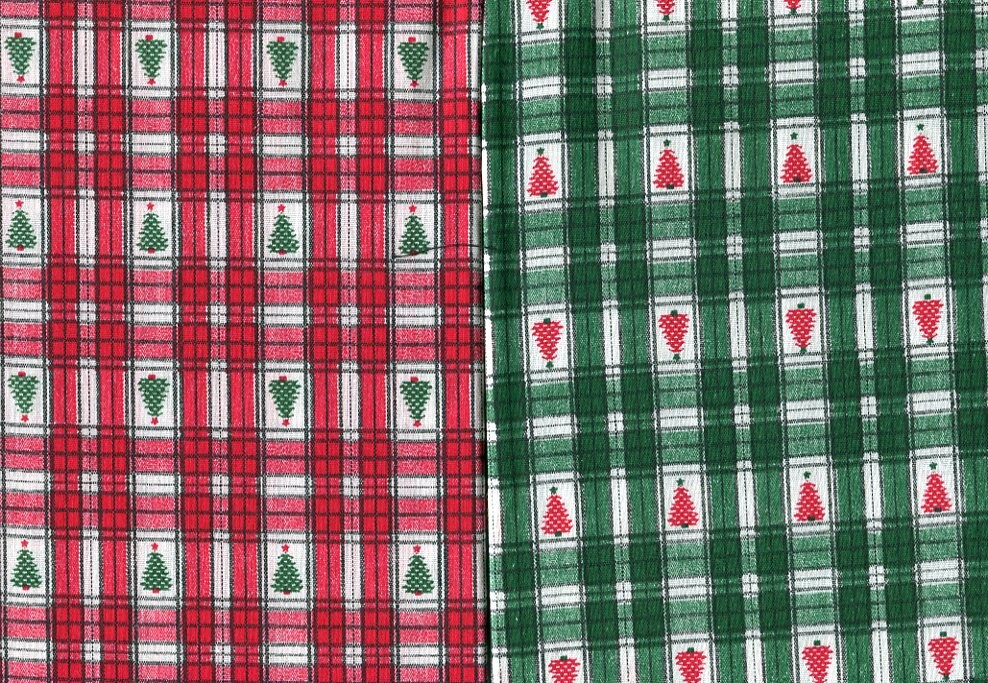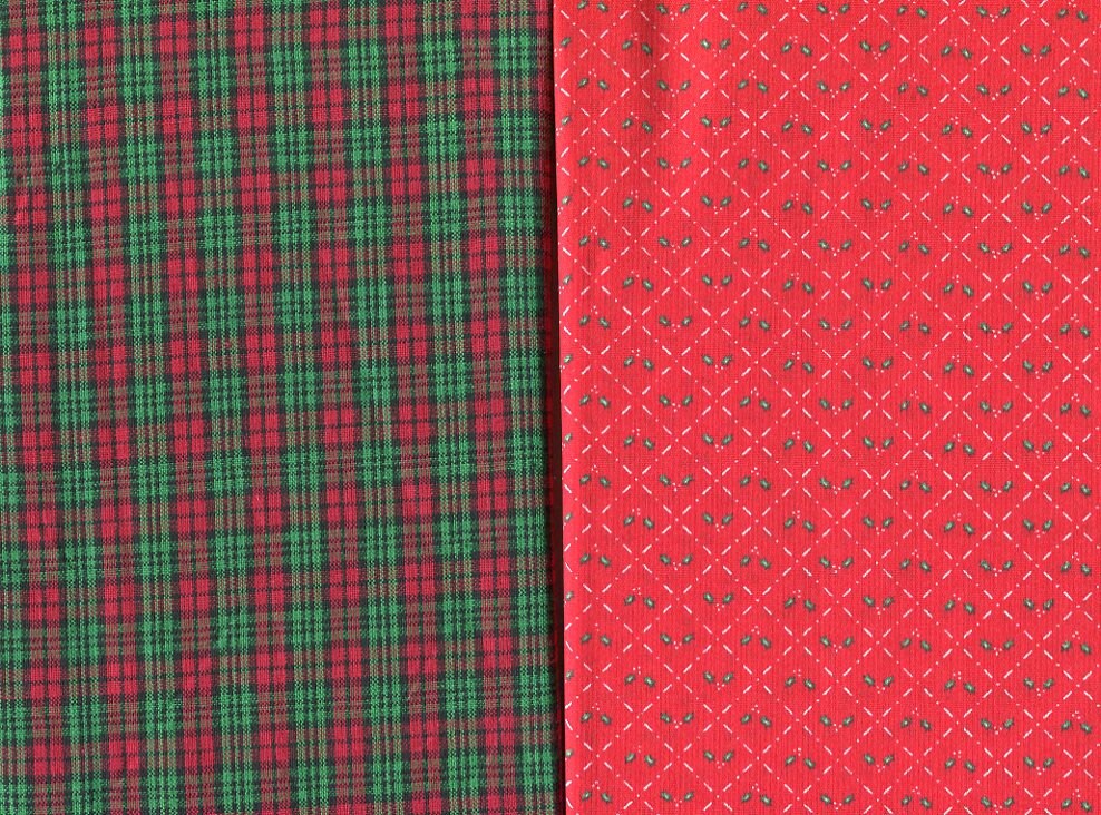 Then there are the pairs...the red plaid with green trees & the green plaid with red trees. The red with black spots & the green with black spots. A red & green plaid. A red with green holly.