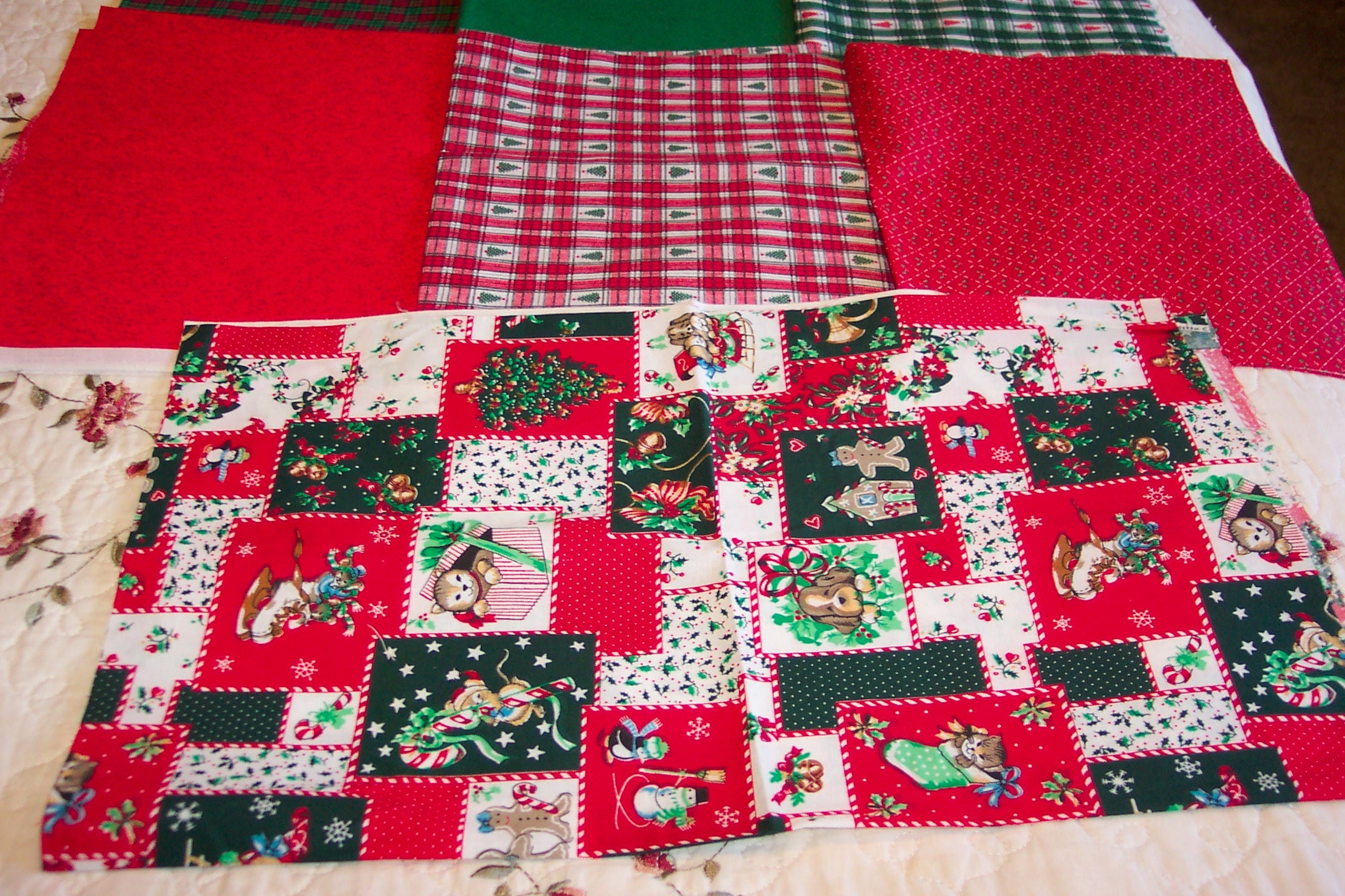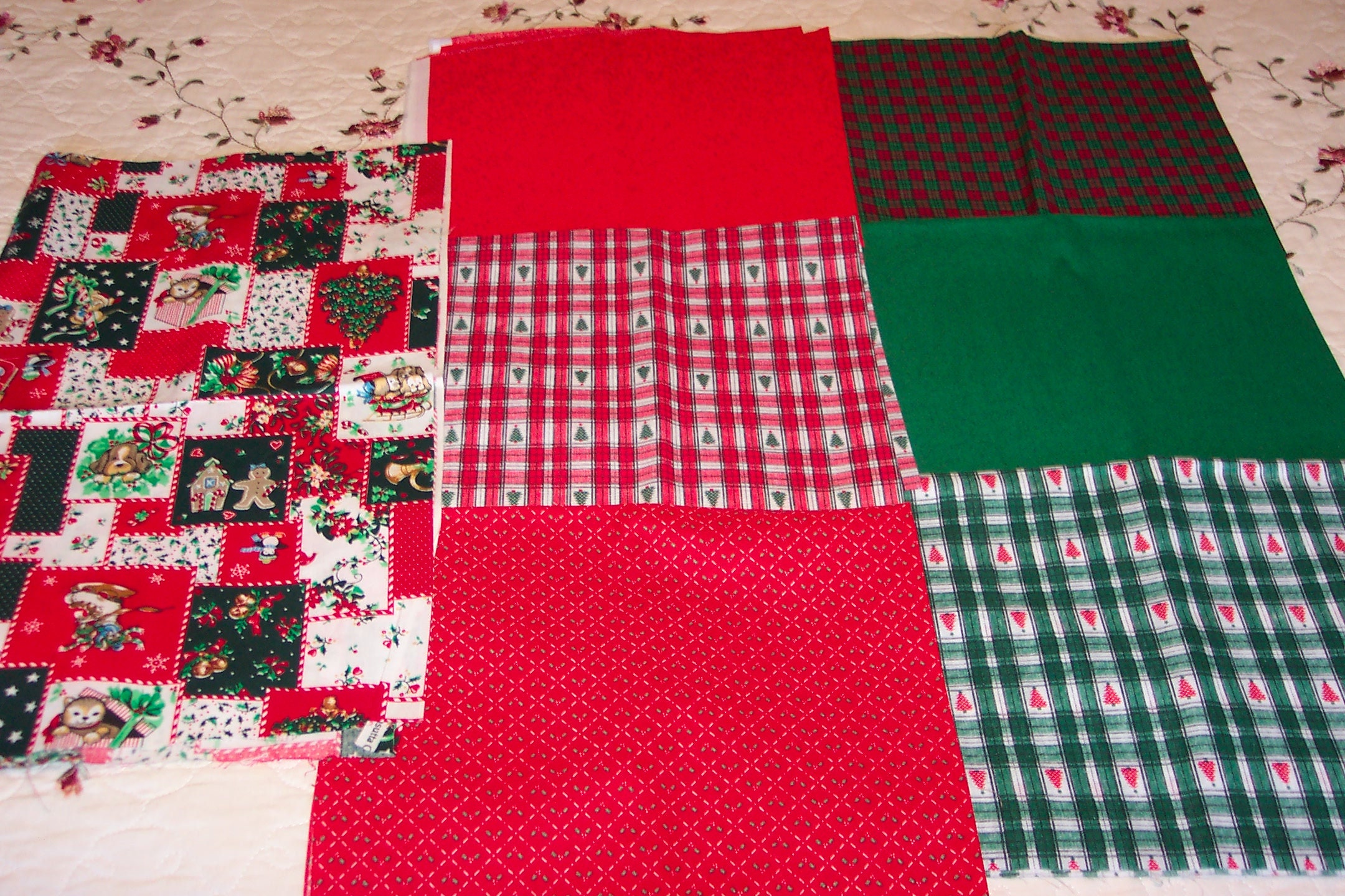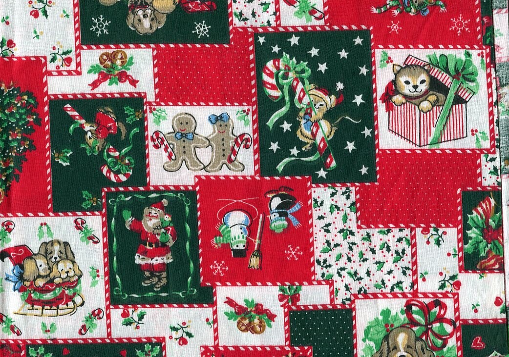 This set of 7 coordinating fabrics is in classic Christmas colors, Red & Green. One has cats & dogs, Santas & Snowmen, holly, bells and candy canes. Also, mice, gingerbread & penguins.