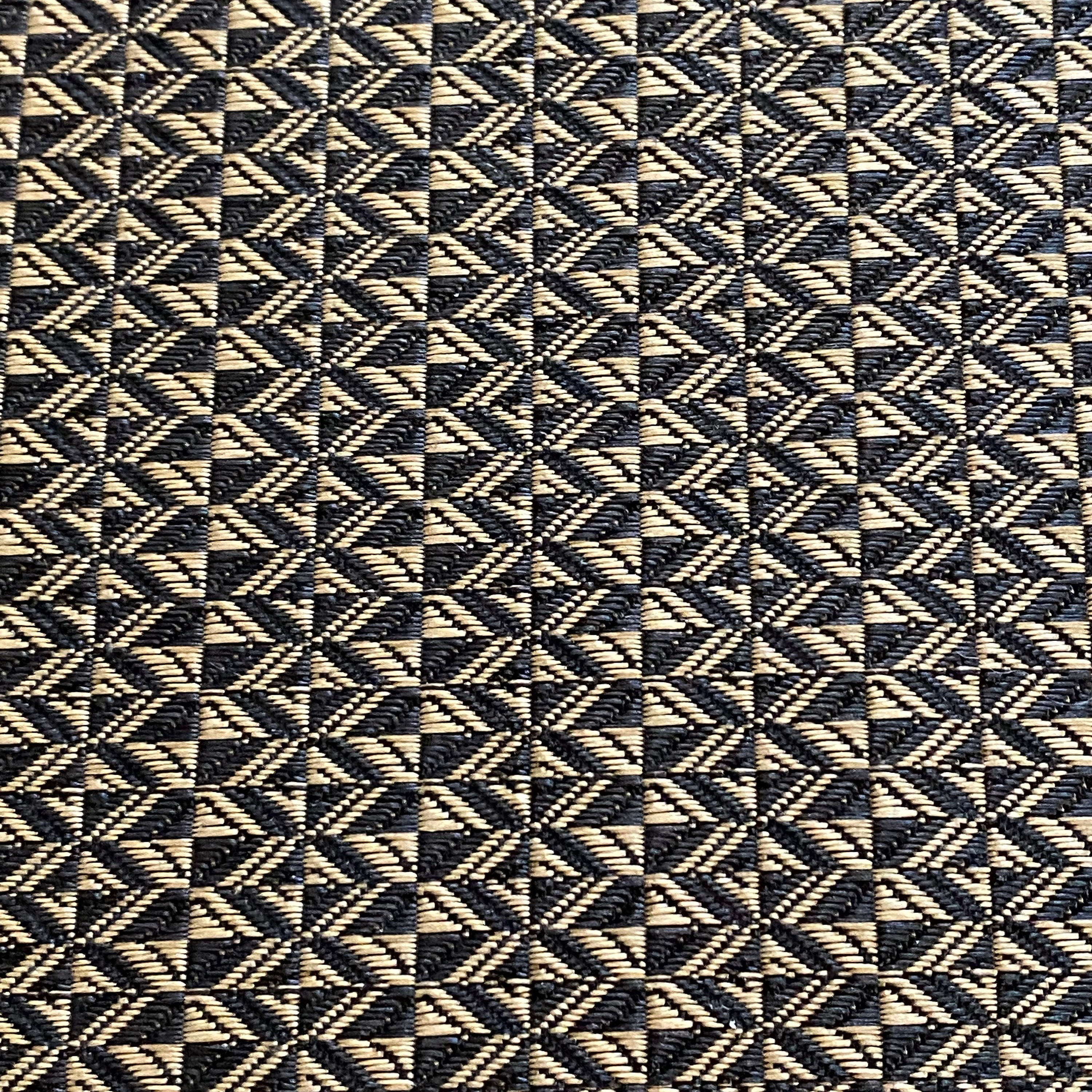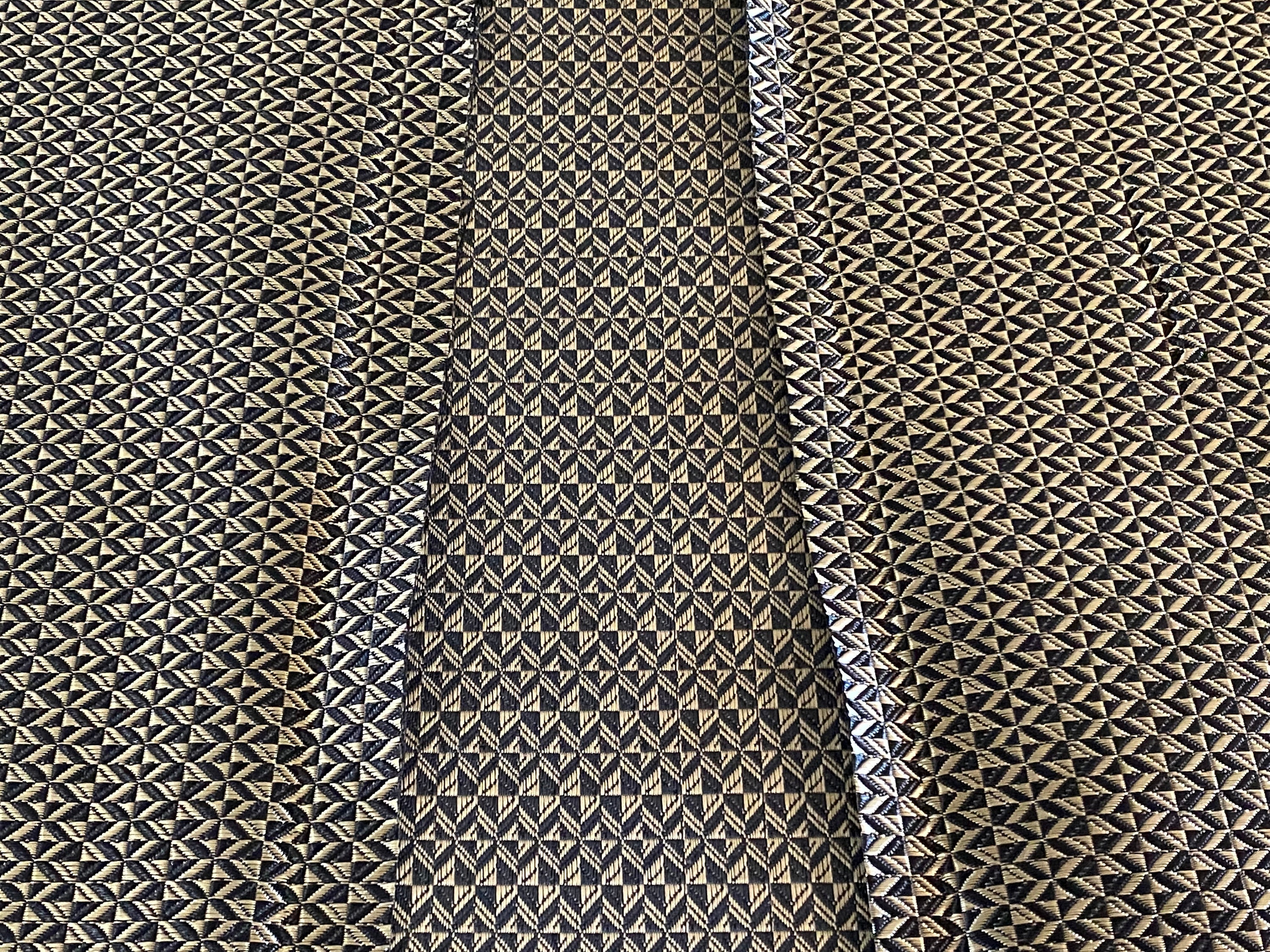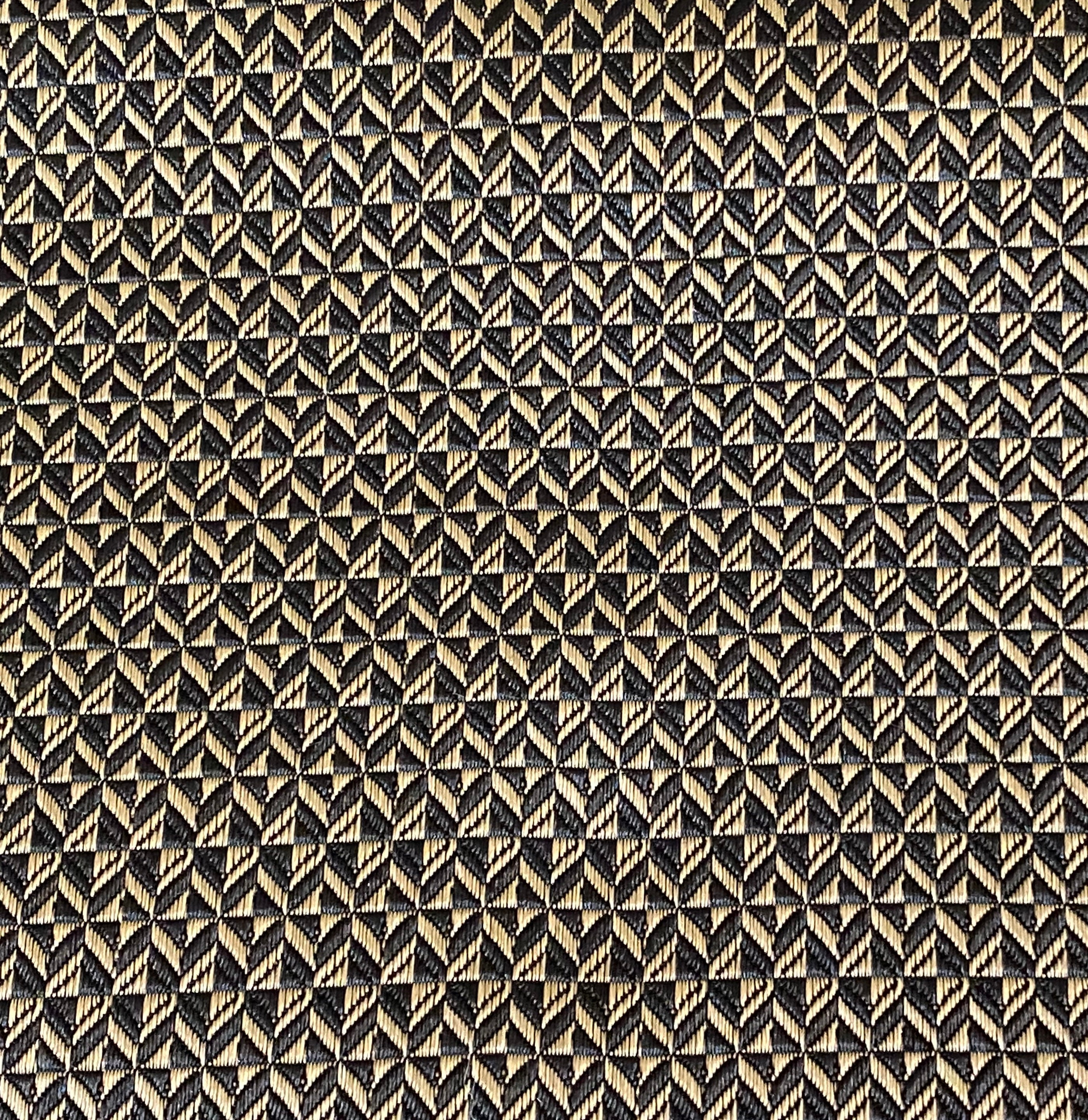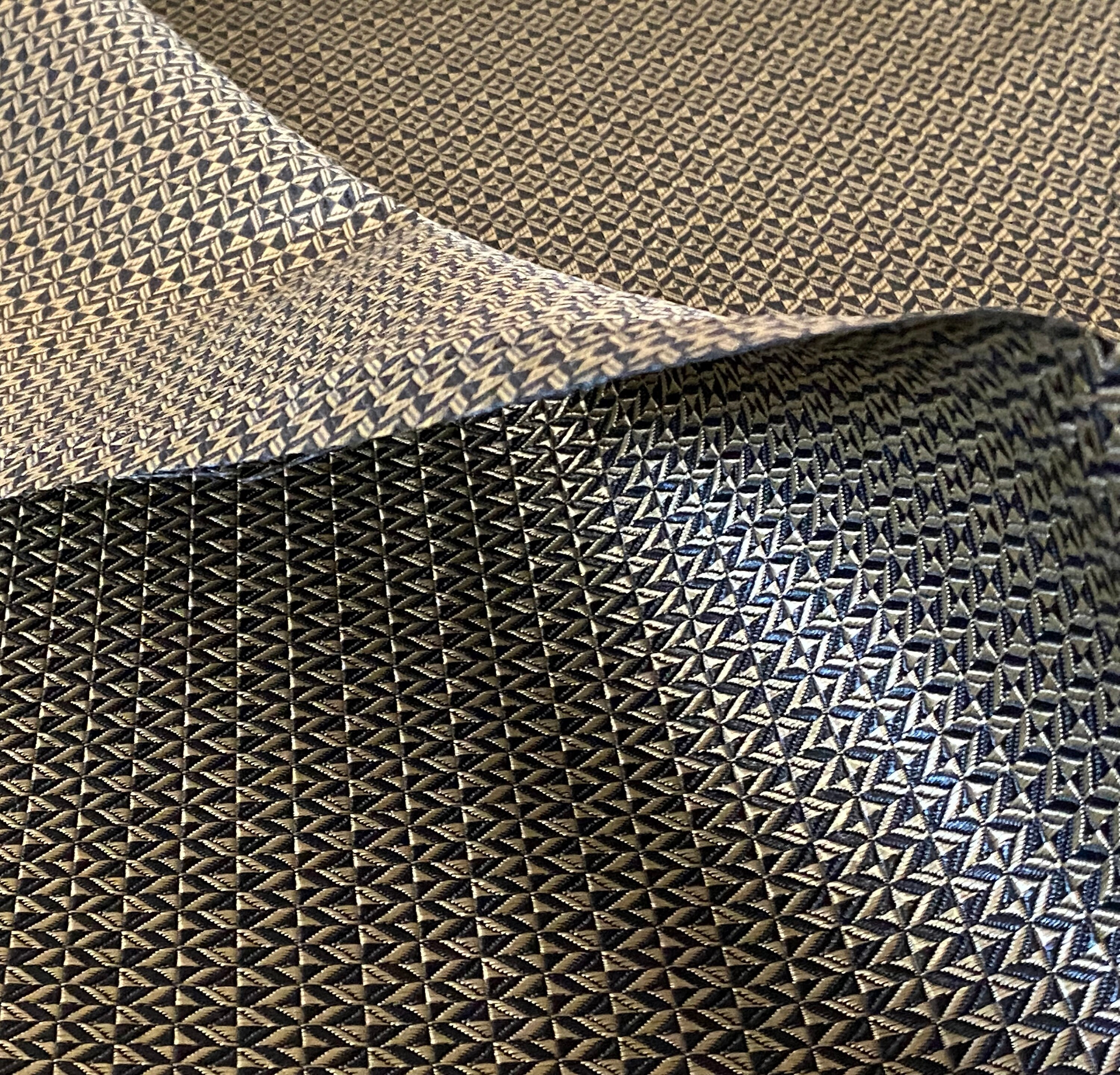 The fabric is woven, definitely not a printed pattern. Strong & sturdy, no stretch. The pattern is identical on both sides. Changes in the light create different color depths; more gold, obvious pattern, more black.