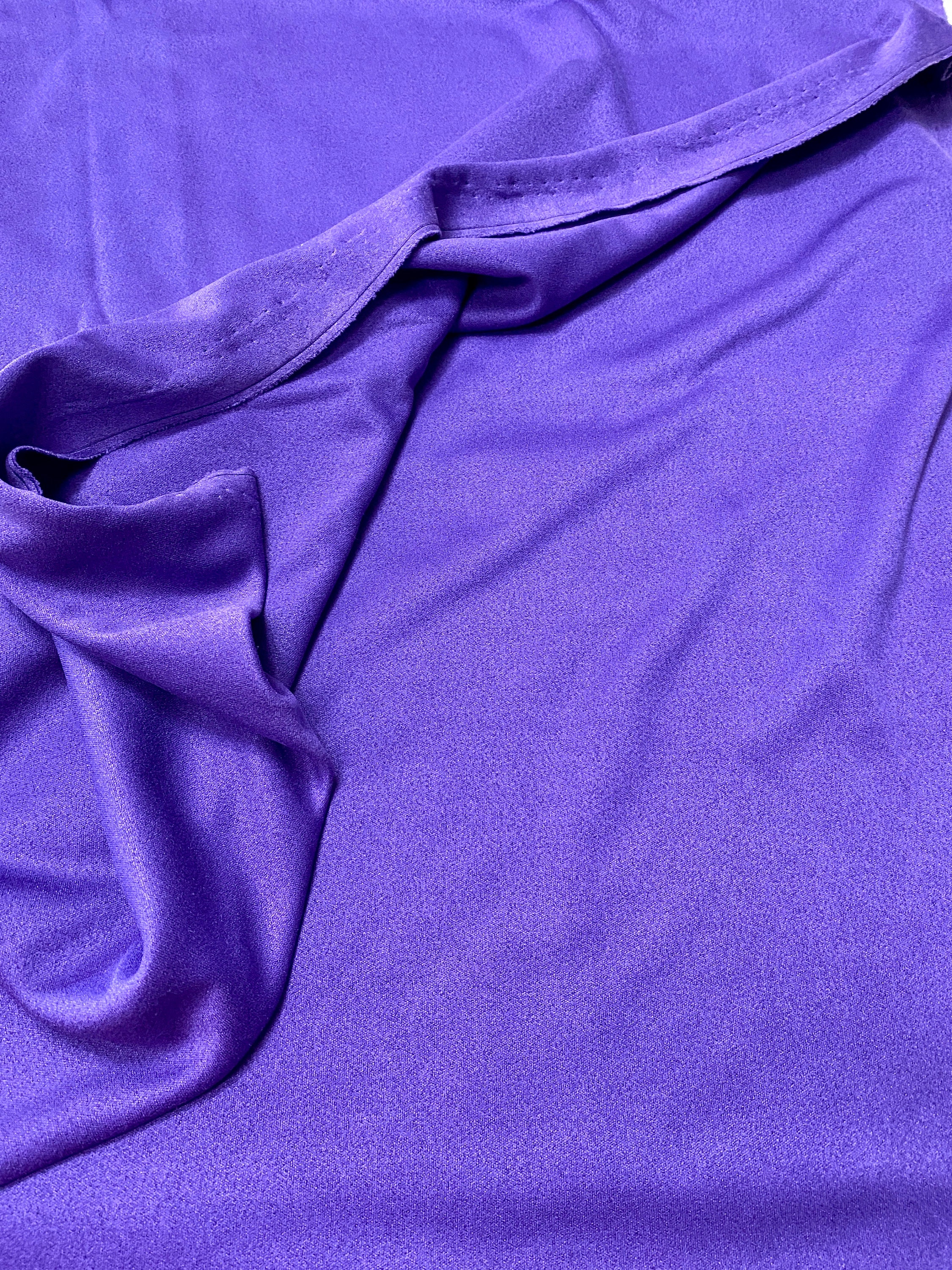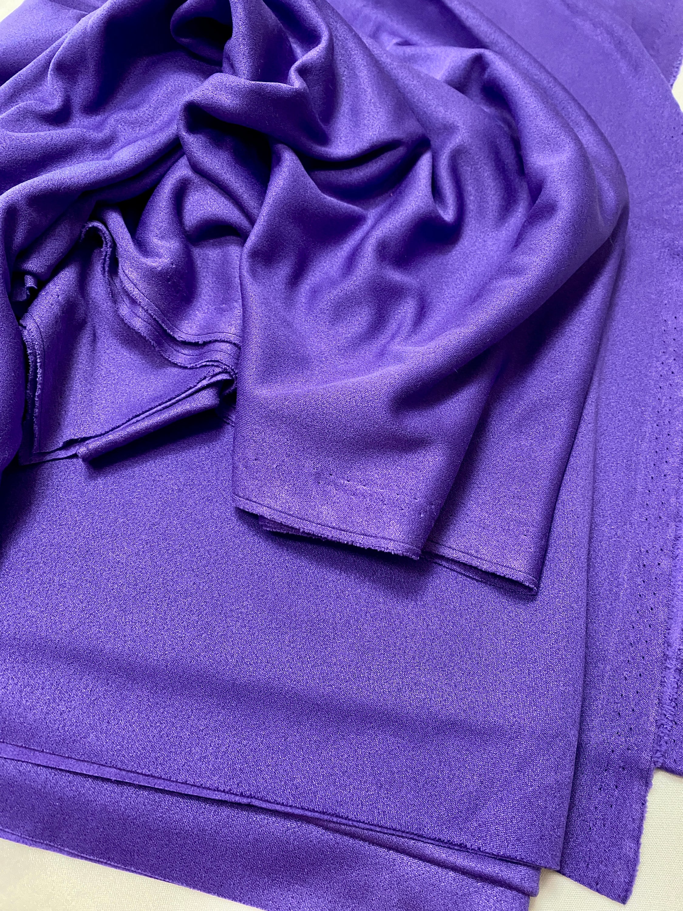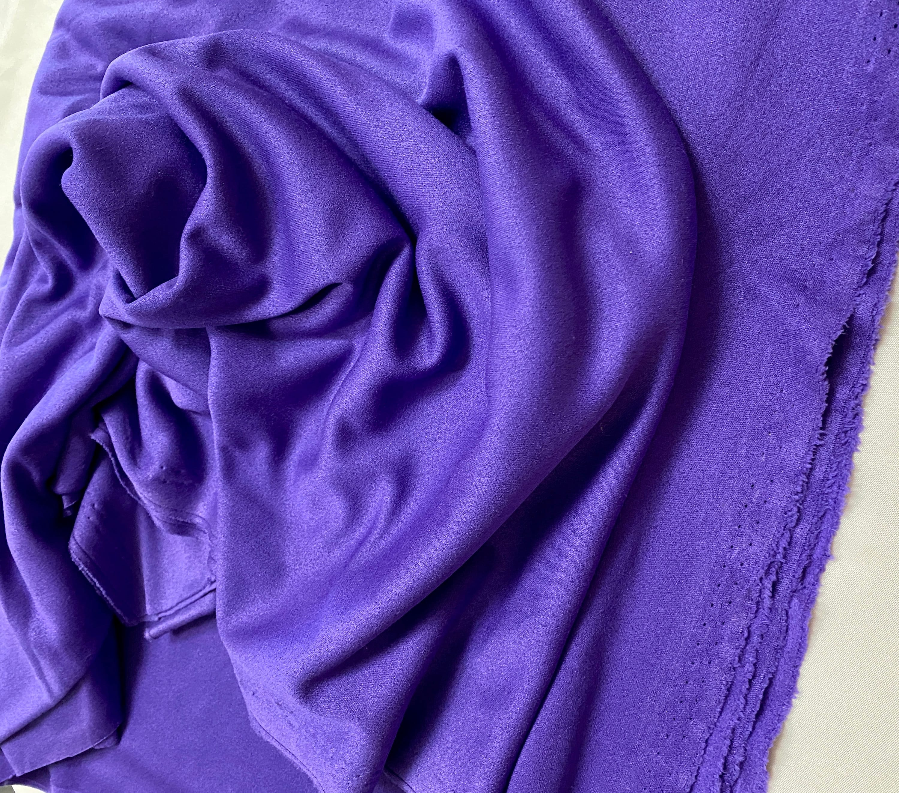 A quality, vintage piece of velvet fabric. It is durable & warm, suitable for making a skirt or pants. It is a beautiful shade of dark violet, soft and drapes well.