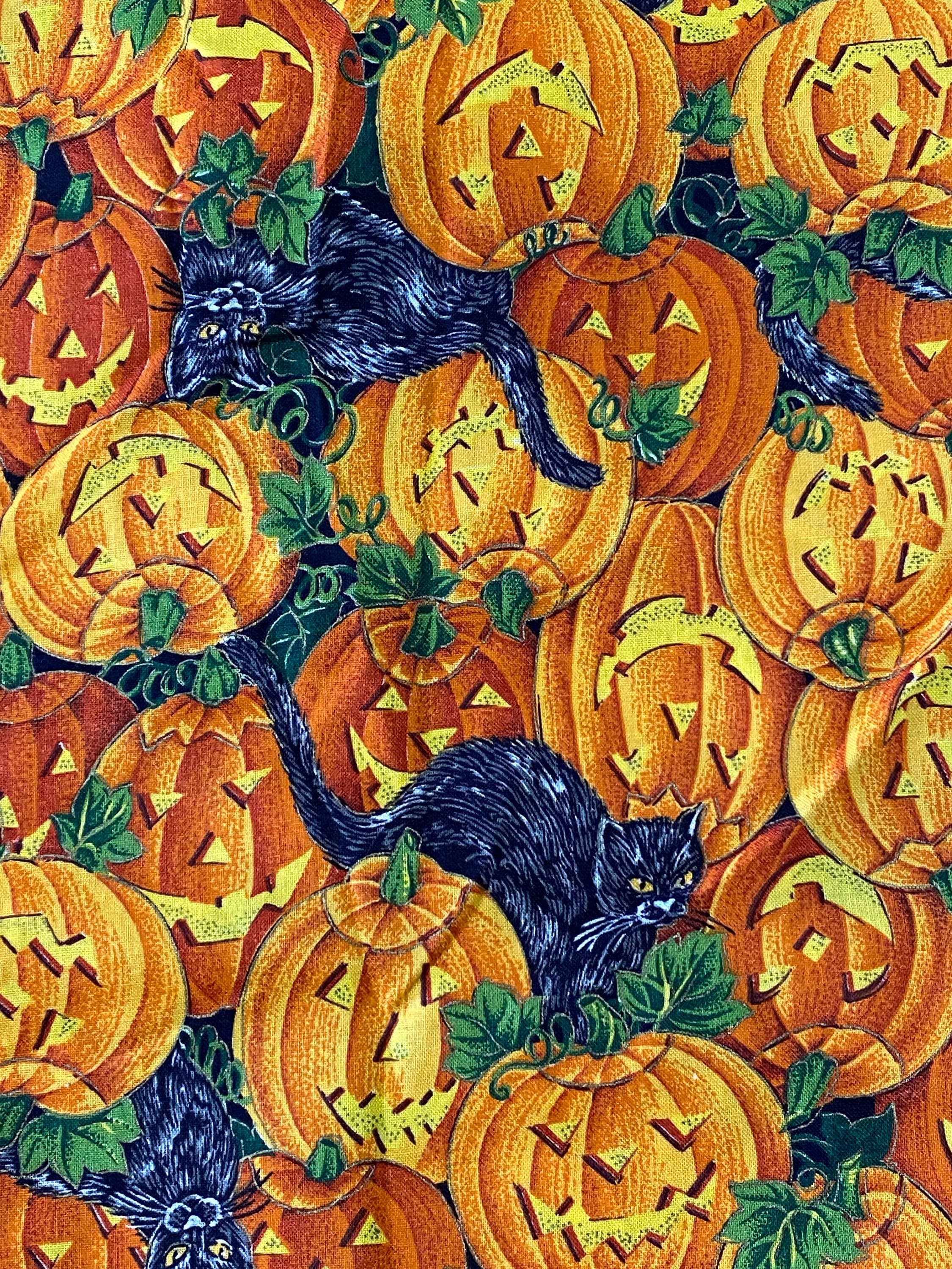 What a great Trick or Treat bag this would make! Or an apron, skirt, place mat, pillow case, part of a quilt and more.