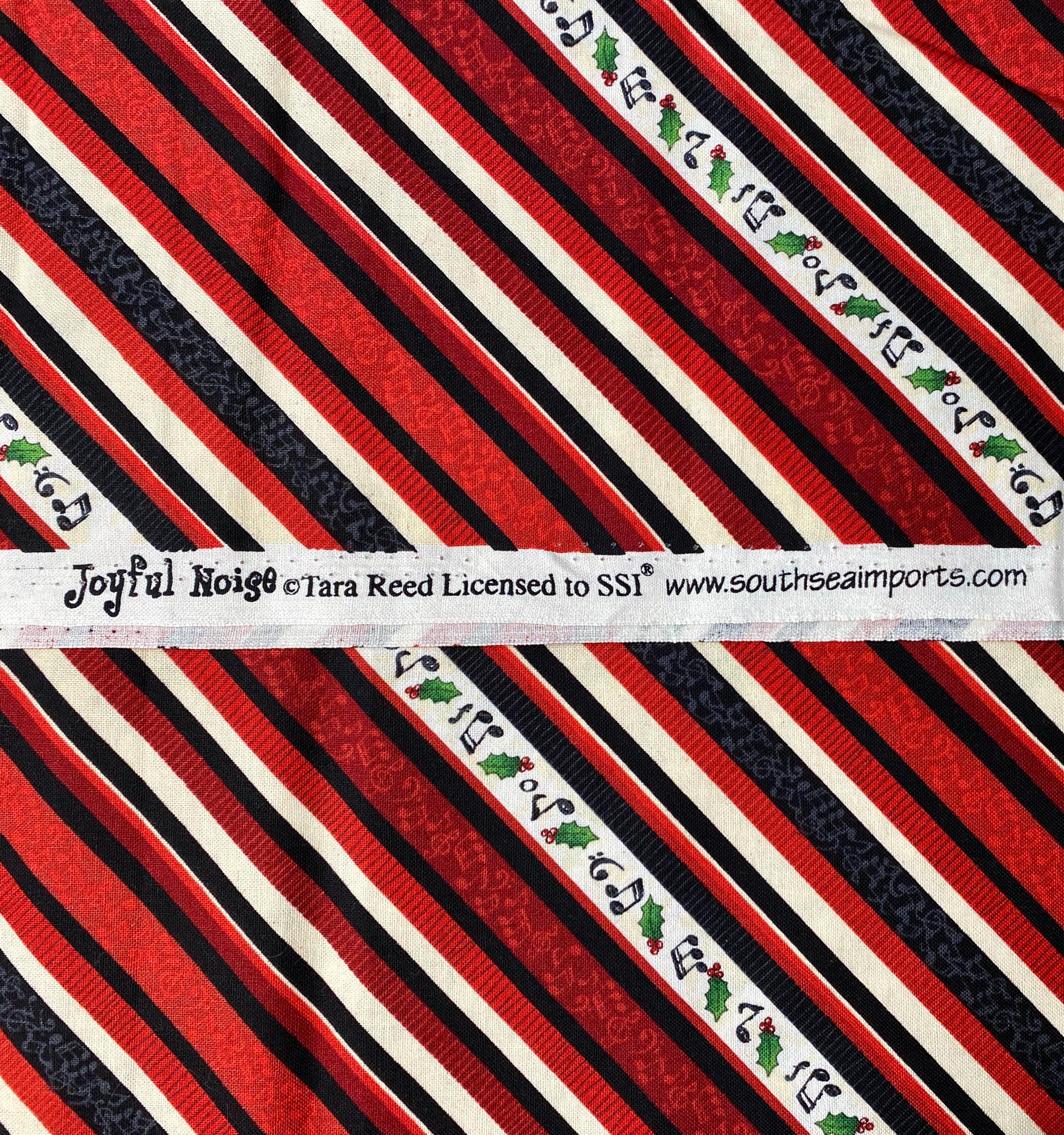 The selvage says: Joyful Noise Tara Reed Licensed to SSI (South Sea Imports). The fabric is out of print & hard to find.
