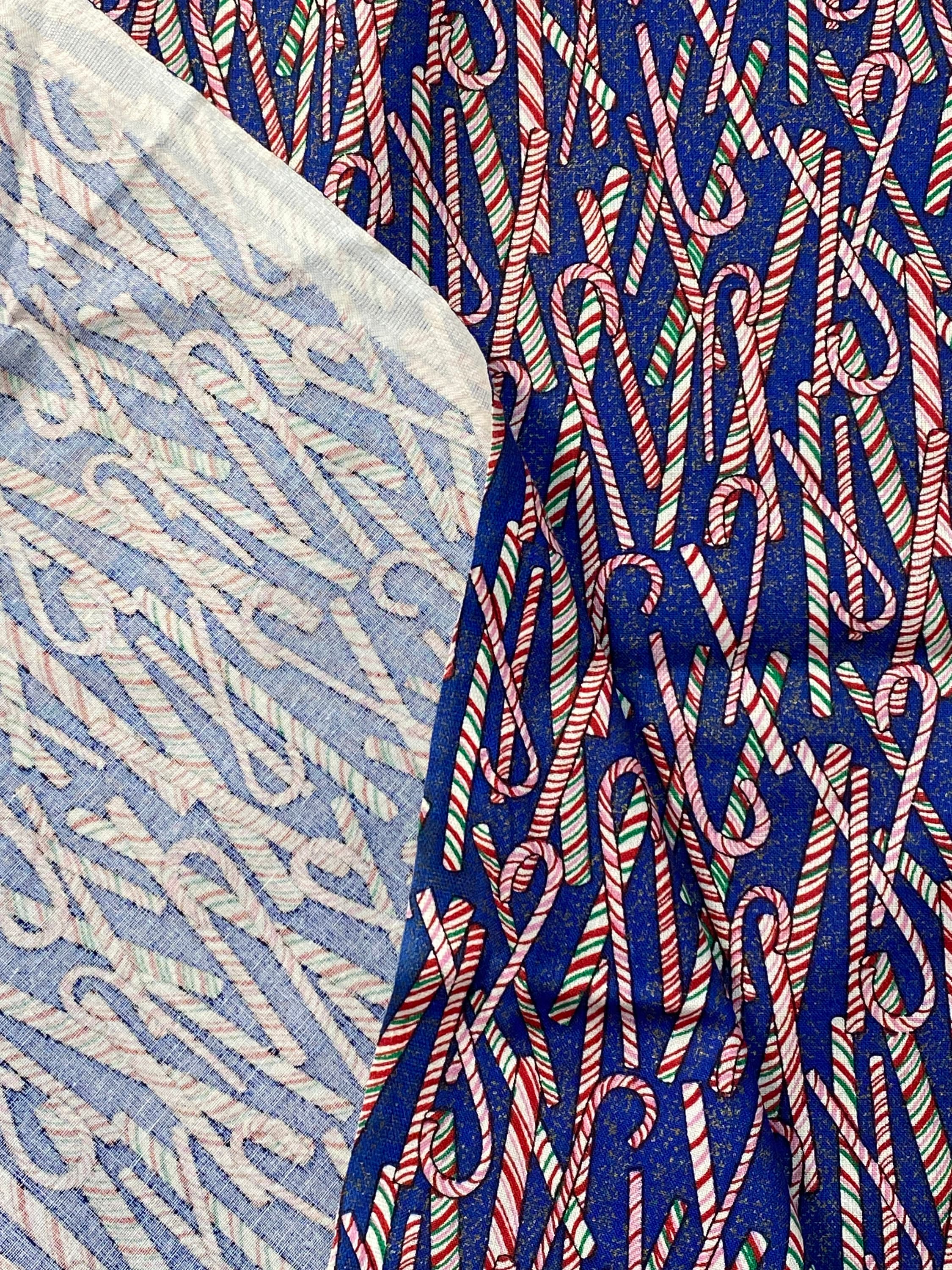 It's lovely fabric, could be used for most any sewing project, The candy canes run the length of the fabric and vary from 1" to 3". The fabric is unwashed.