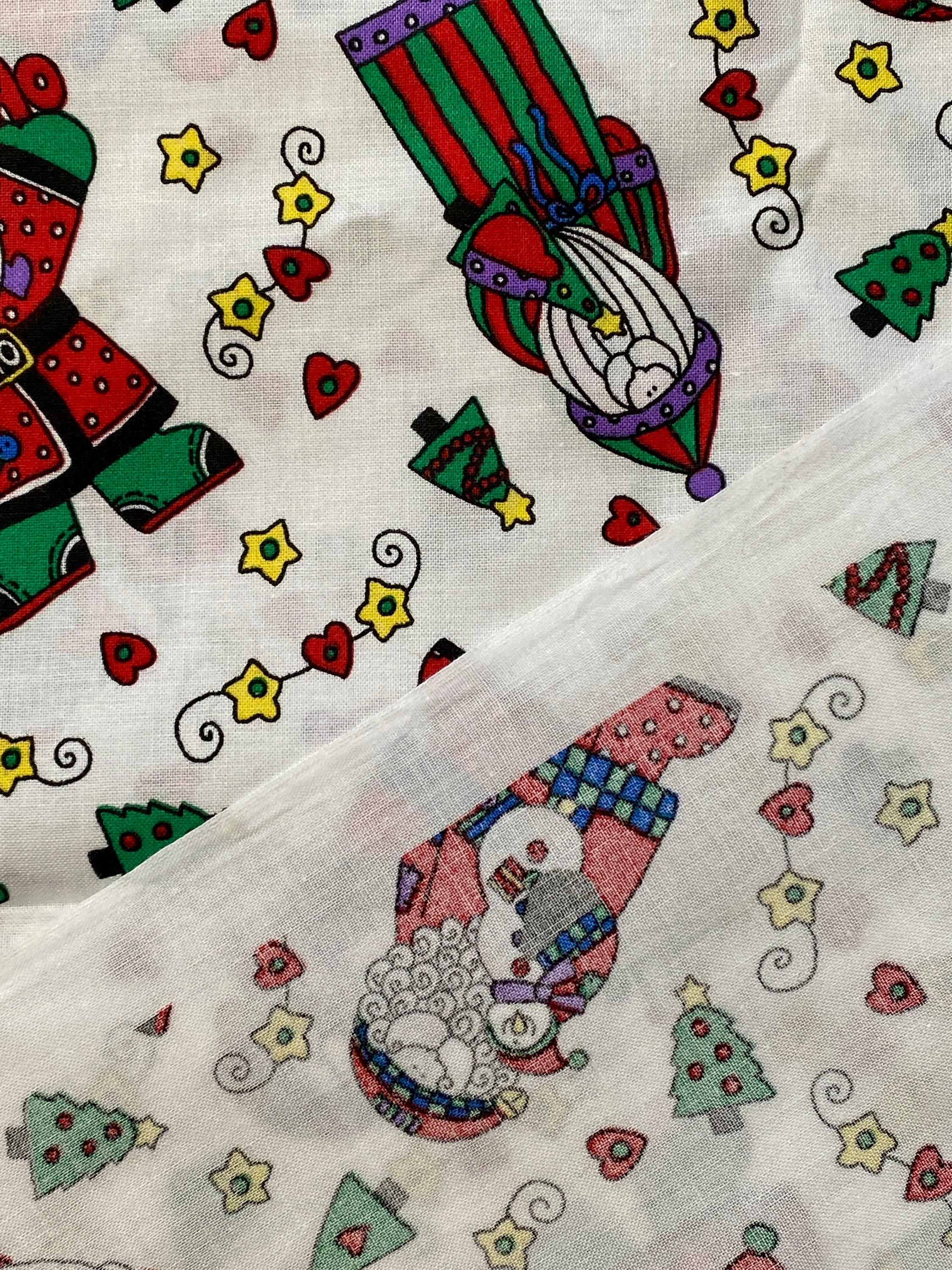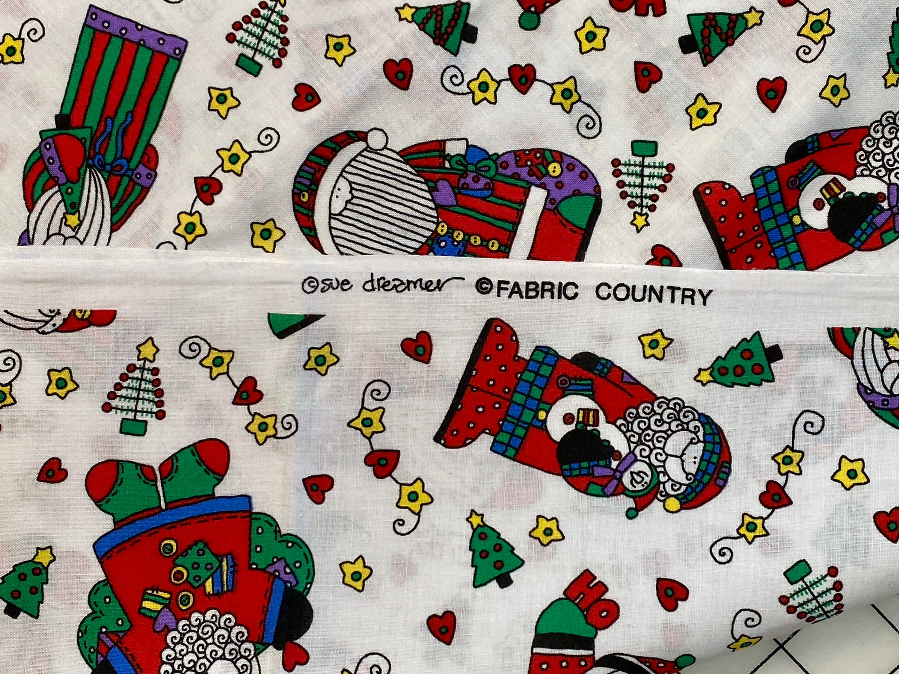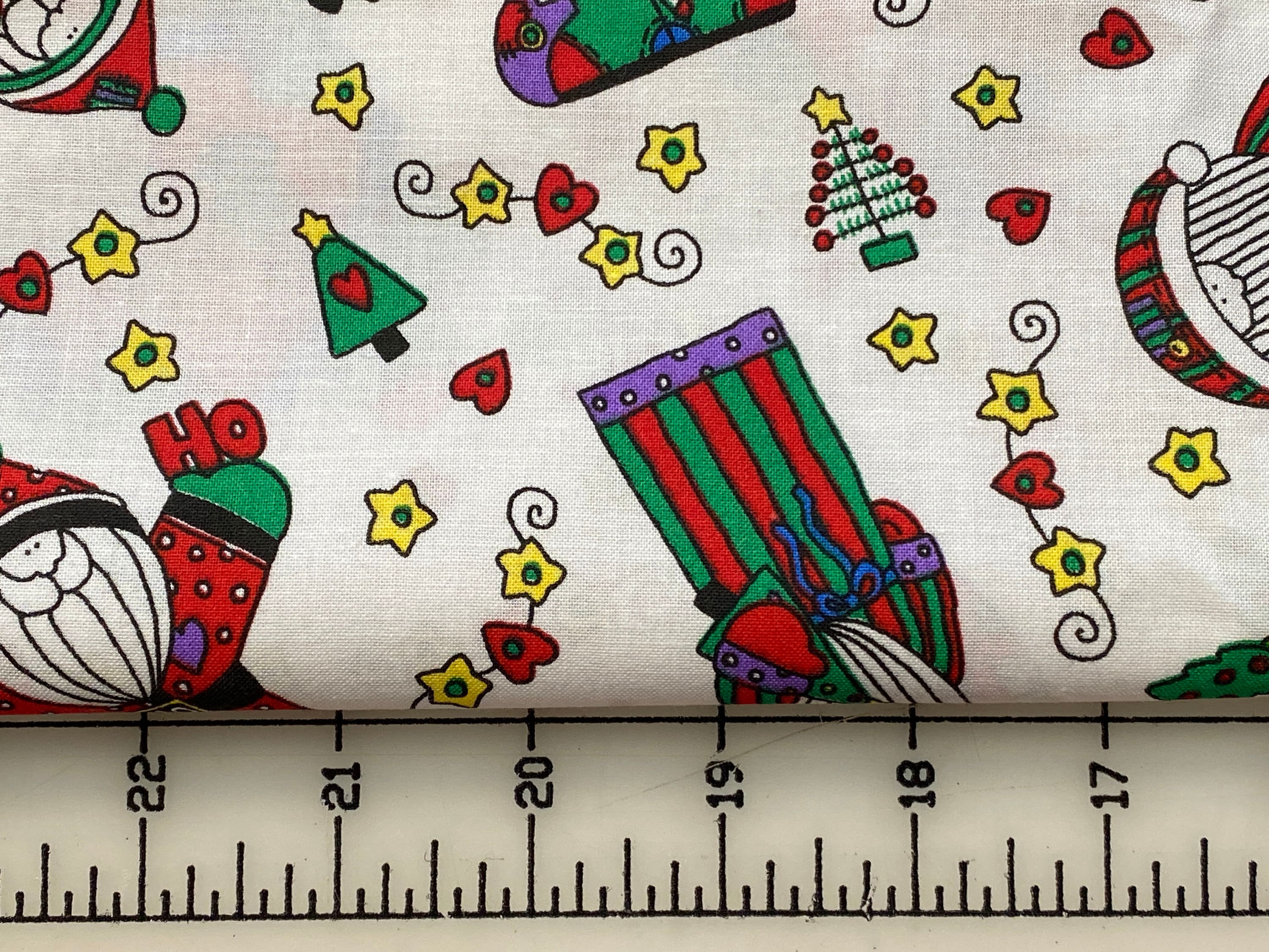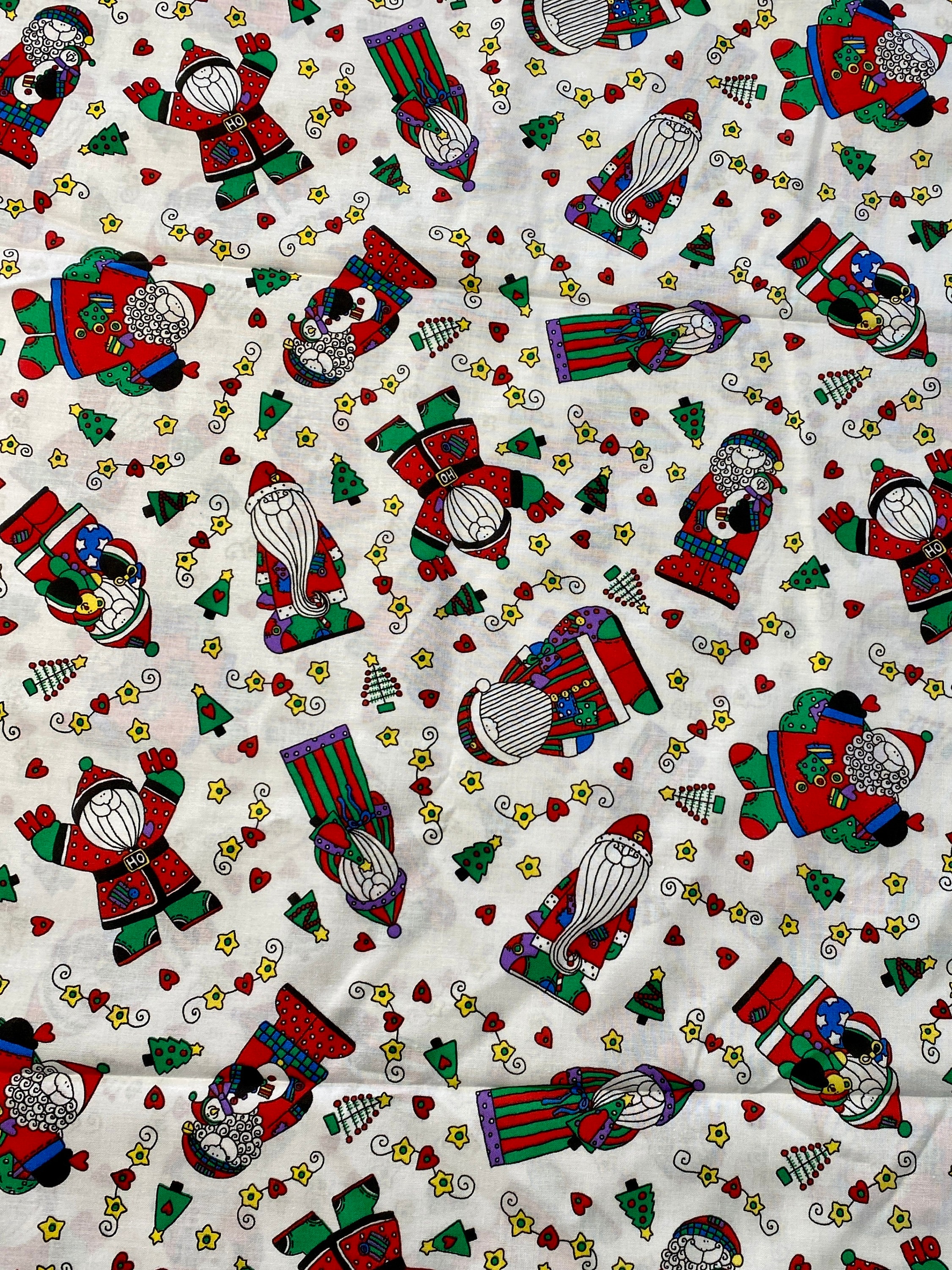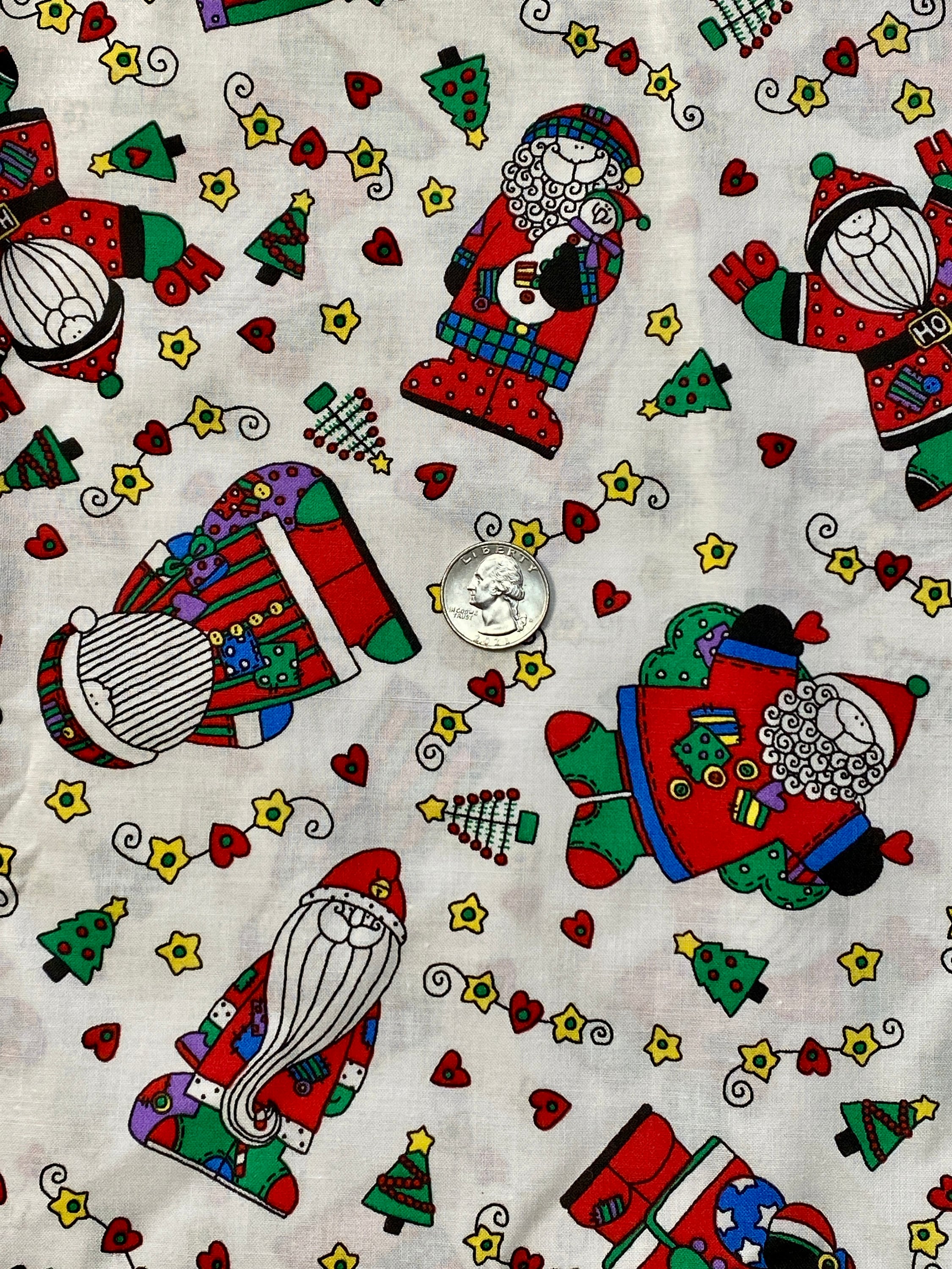 Each Santa is about 3" to 3.5" tall and 1.25" to 2.75" wide. This fabric is as it comes from the bolt, unwashed. This is long out of print & I could not find its like online.