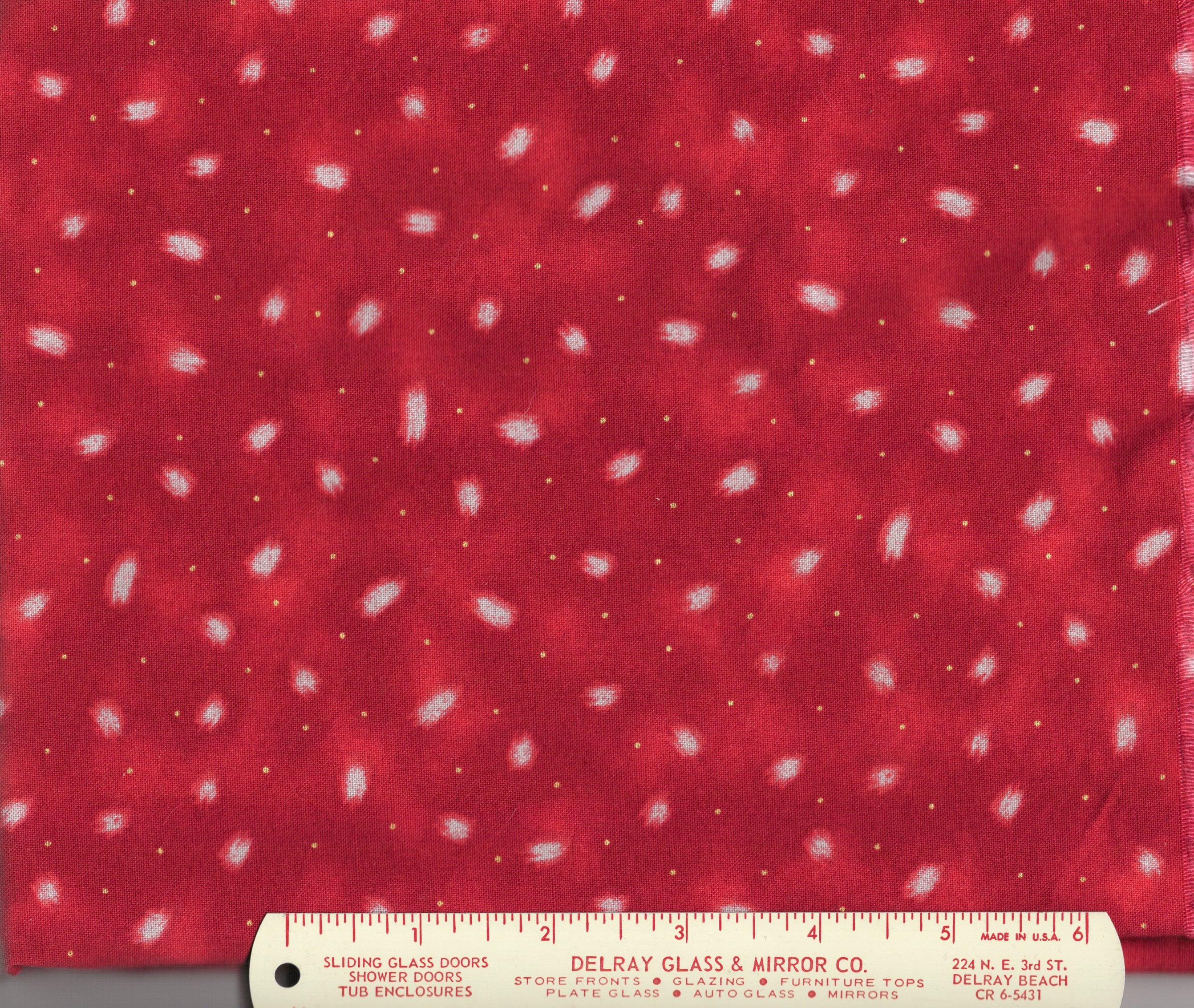 Squinty Lights on Red. At least, that's what it looks like to me. You know, when you were a kid, you would squint at the Christmas tree & see all the blurry lights. This has been washed & has a very good hand. It is 41" wide & 18" long.
