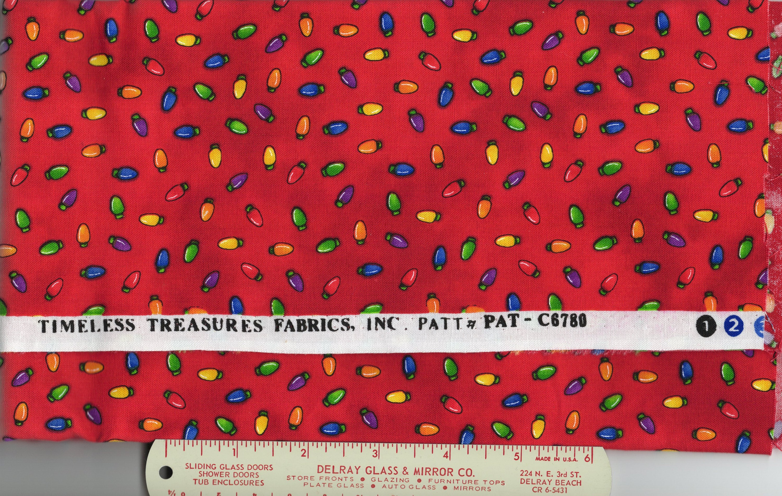 Christmas Light Bulbs on Red by Timeless Treasures Fabric Patt#C6780. Multicolored old fashioned Christmas Tree bulbs dance across a flowing red background that goes from a true red to a very dark red. This piece is 32" wide by 18" long and has not been washed. *Sold Out*