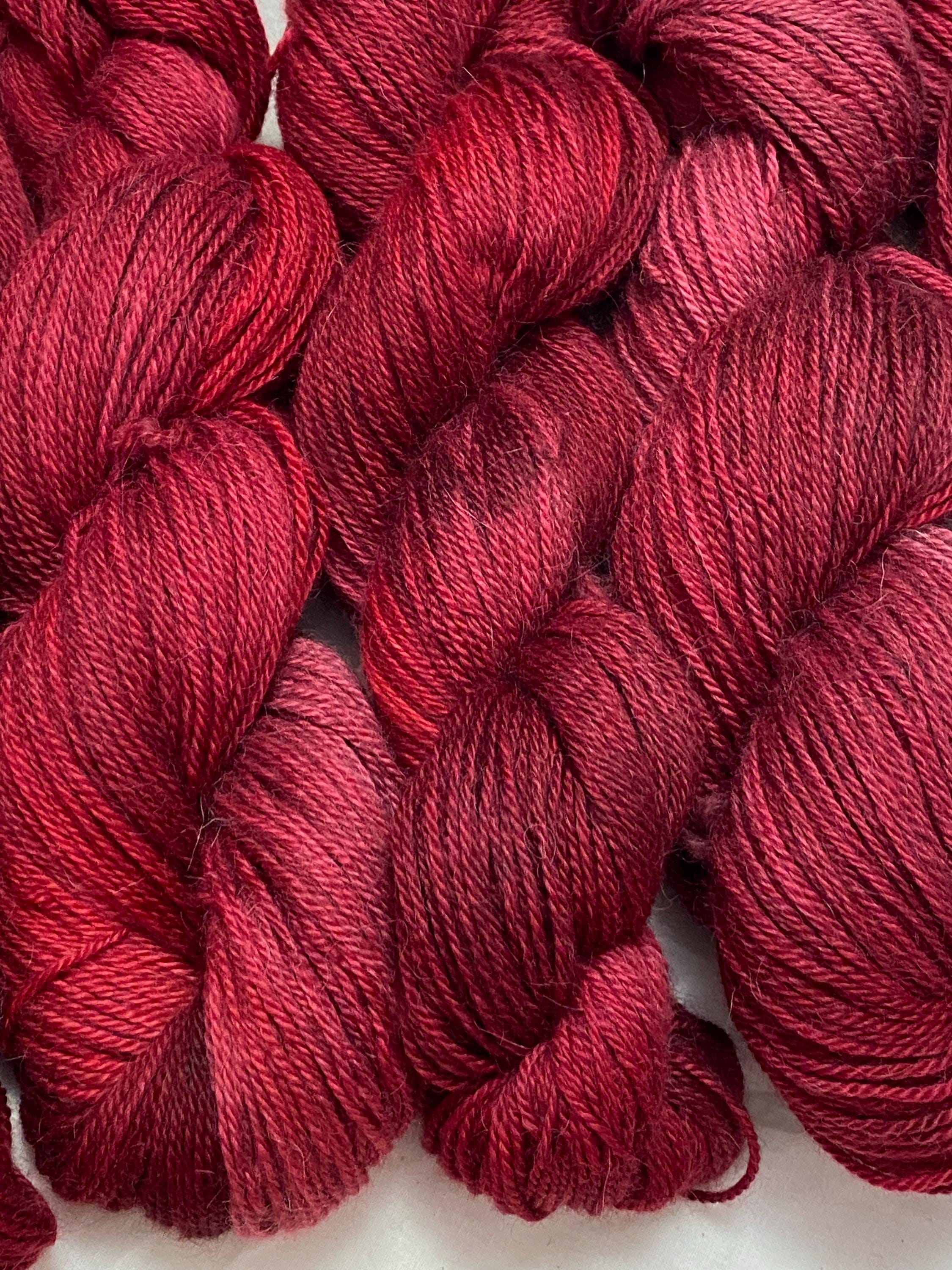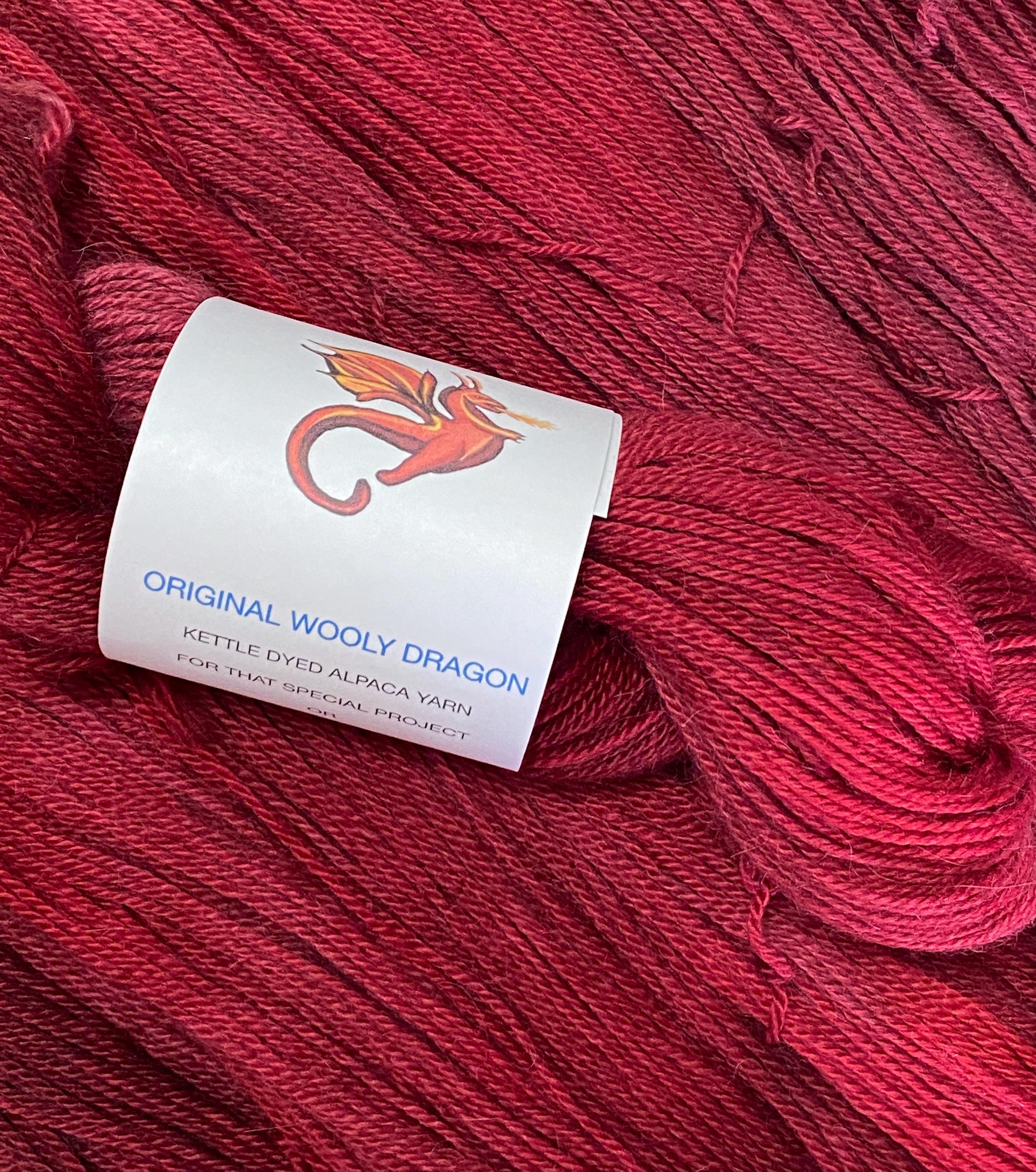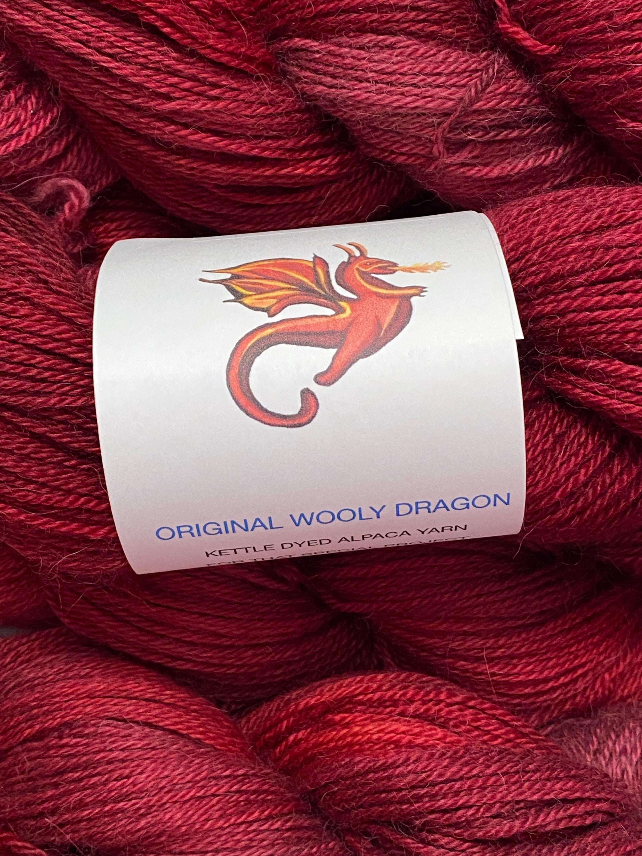 Soft as a cloud, baby alpaca yarn. Kettle dyed, lovely shades of red and ready for you to make something truly yummy with it! Each skein is 291 yards per 3.5 oz. This a sport weight yarn.