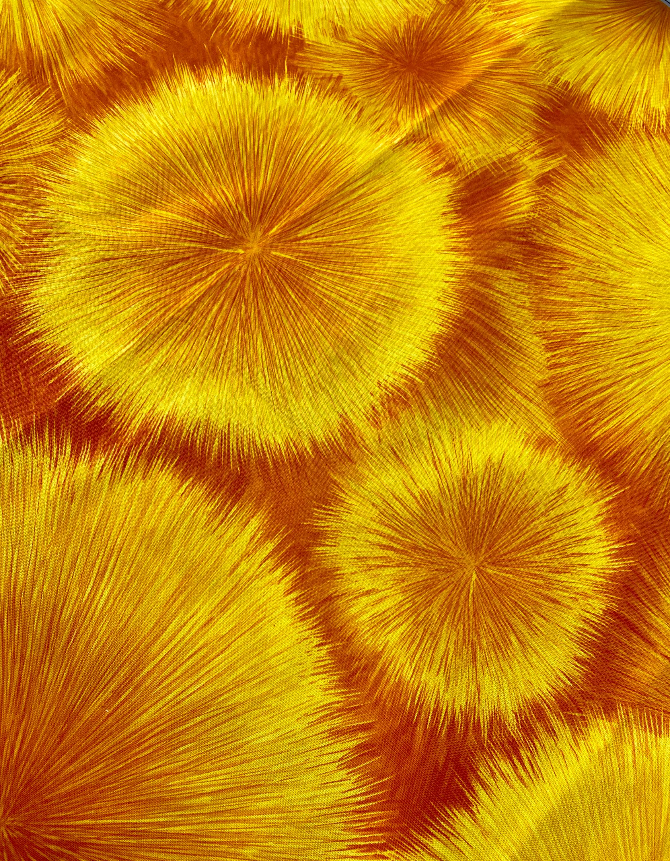 Abstract stars in vivid oranges & yellows dazzle your eyeballs.