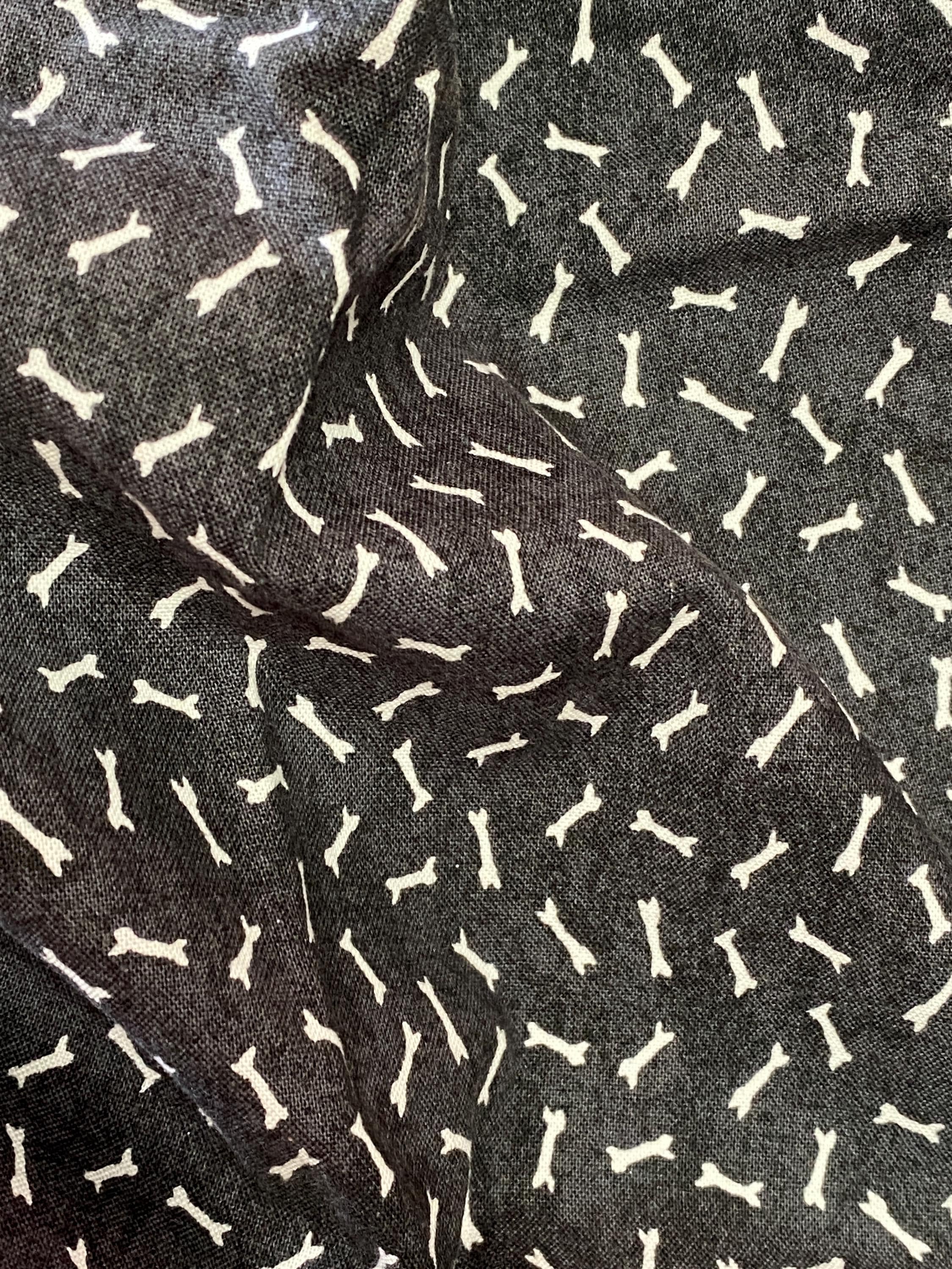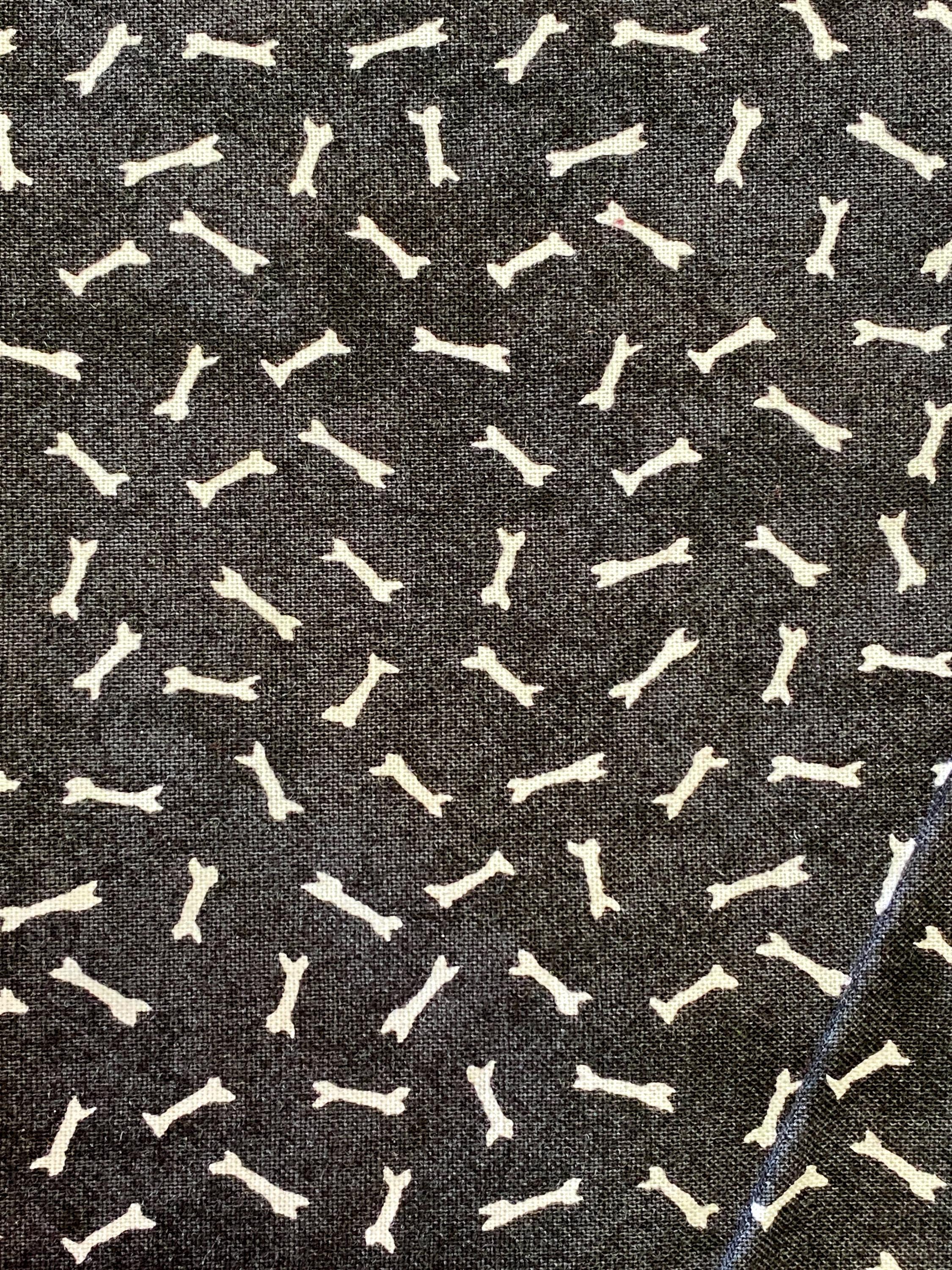 White Bones on Black Cotton Fabric: Fuzzytail Kittens & Pups by Lisa McCue for SSI- A quality cotton fabric with a firm but not heavy hand. It is a vintage piece by South Sea Imports. You could use this in quilting, dog treat bags, pup wear, pillows and more. It has been washed, so no shrinkage. Uncut fabric is 42inches wide.