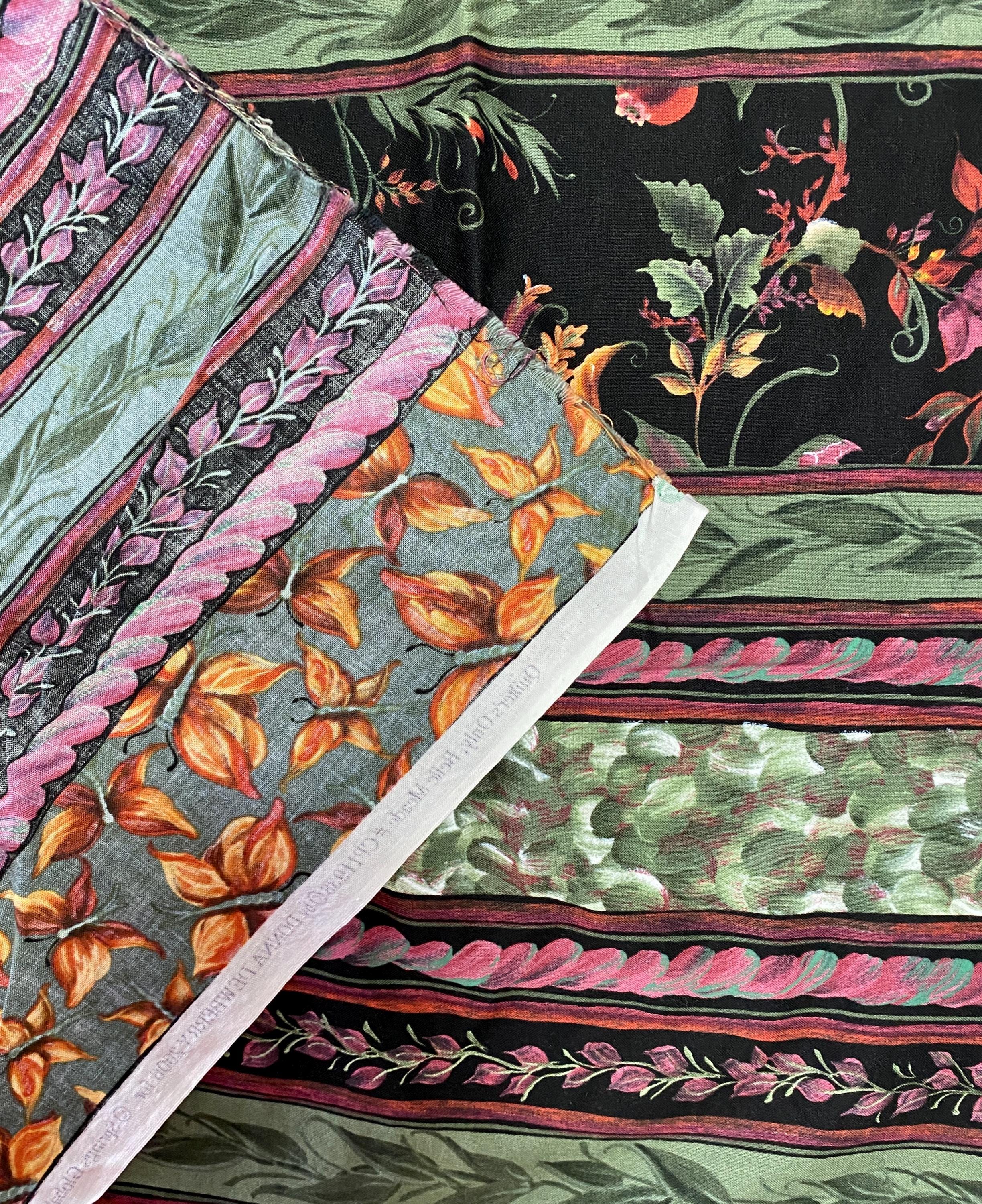 The borders can be separated into several different widths, perfect for apparel, quilting, pillows, place mats and more. Autumn colors of sage green, burgundy, black, orange...perfect for fall decor!