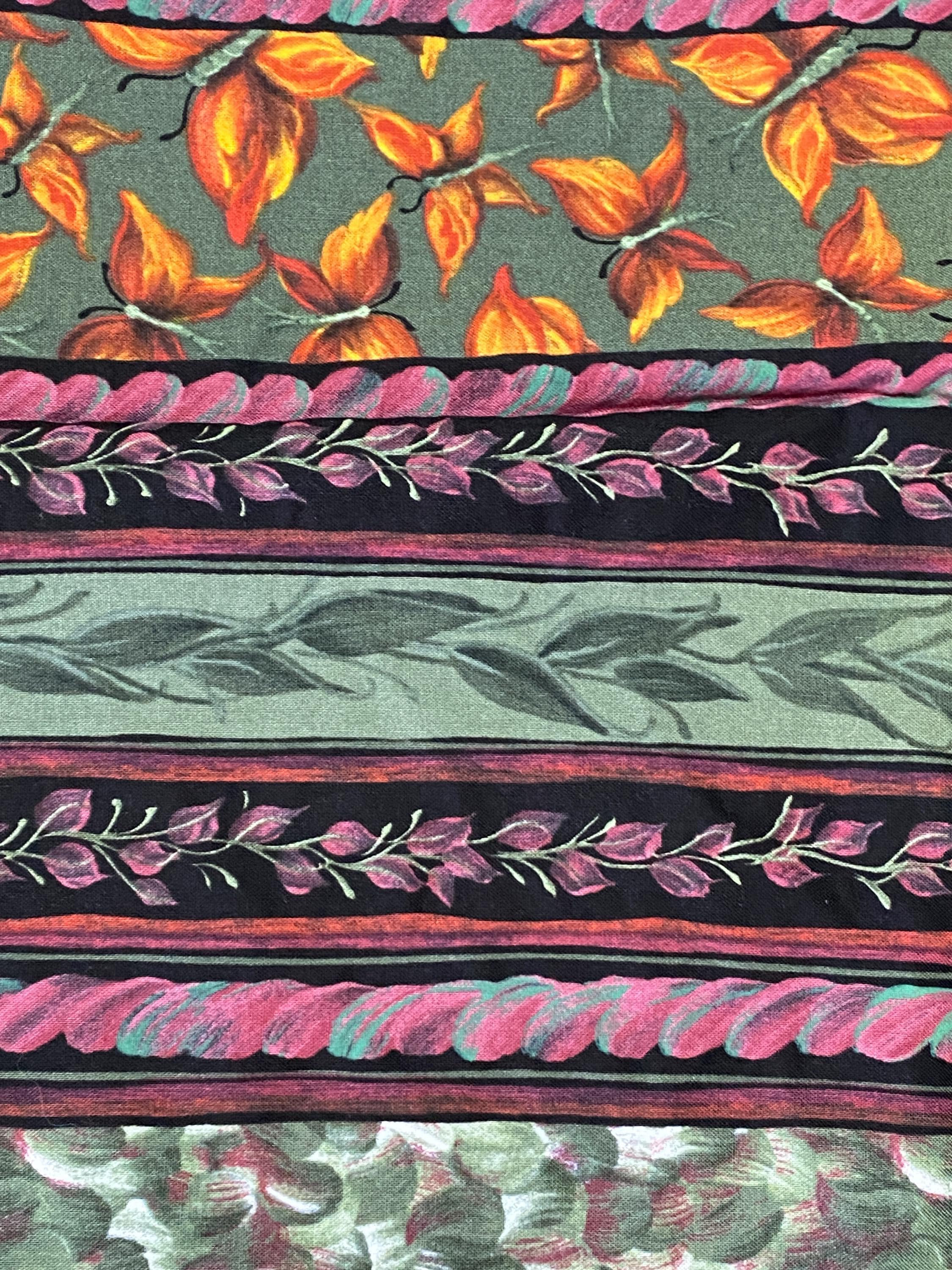 A beautiful border print in hard to find colors, this may be just what you've been looking for.