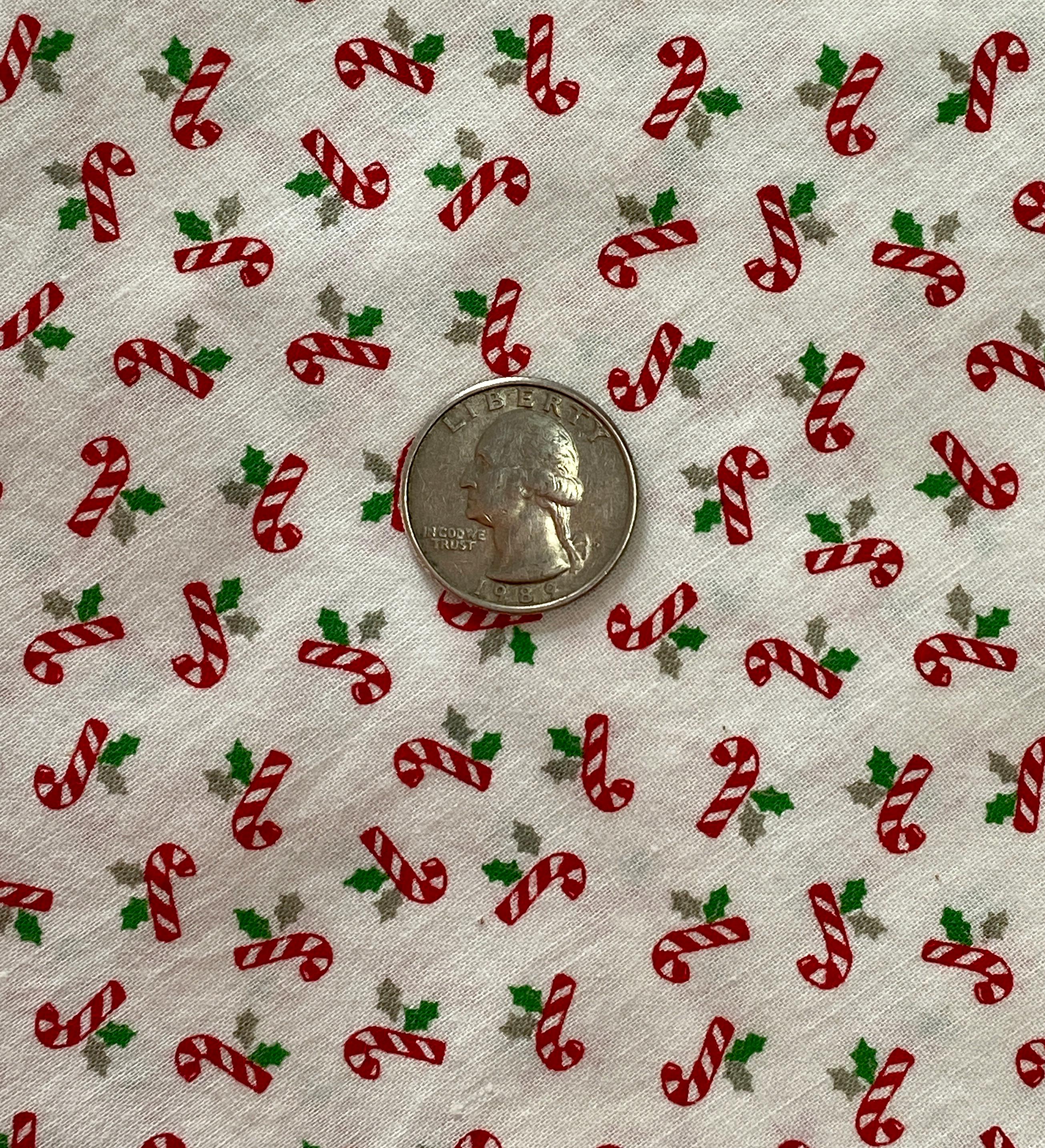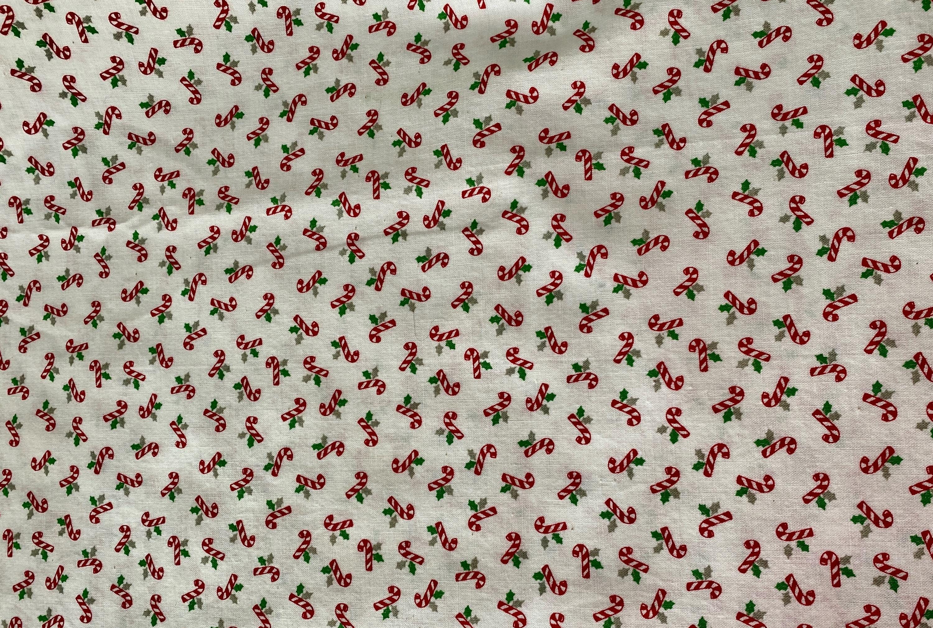 Vintage cotton fabric with tiny candy canes: perfect for your Christmas decor.