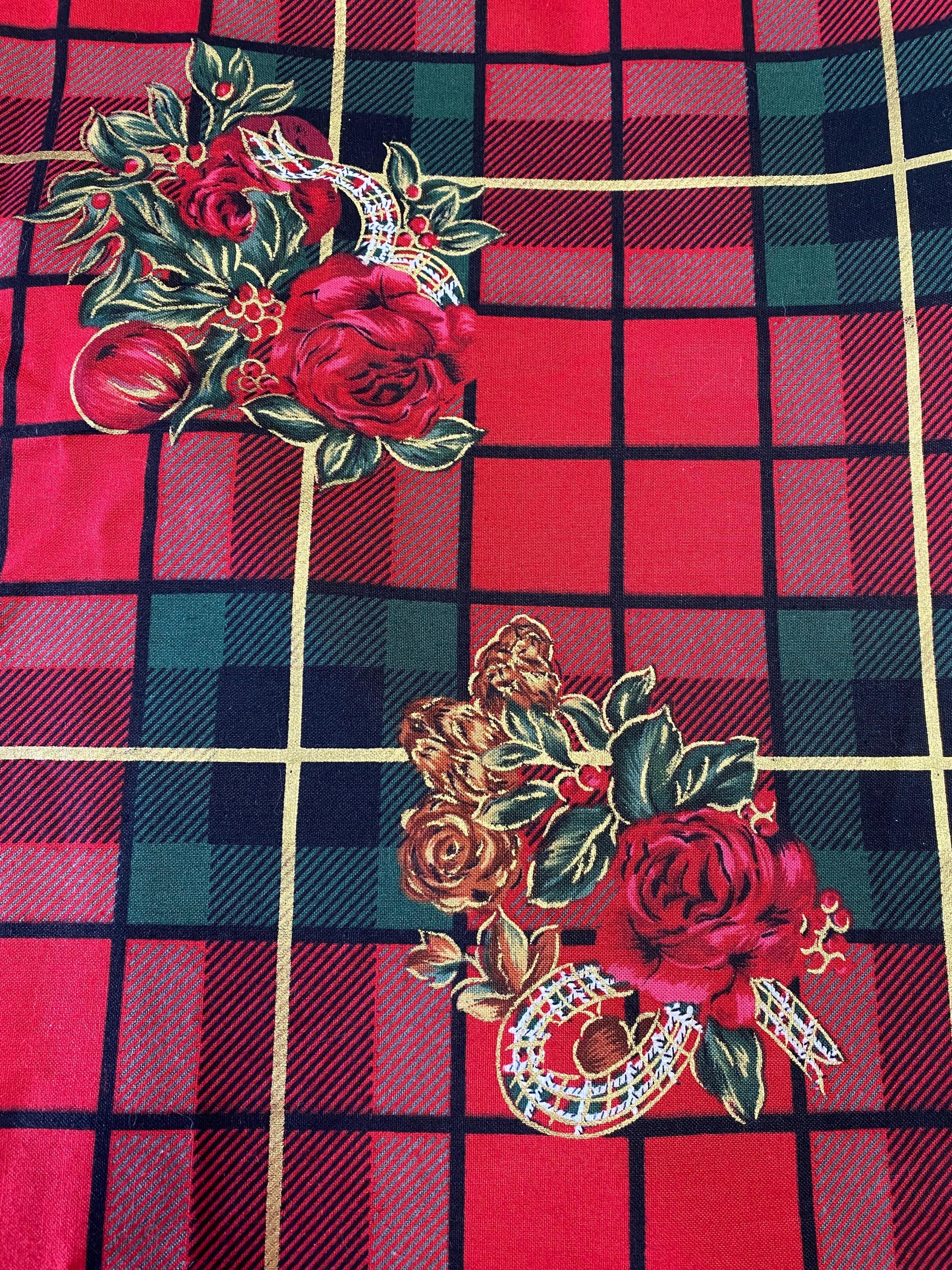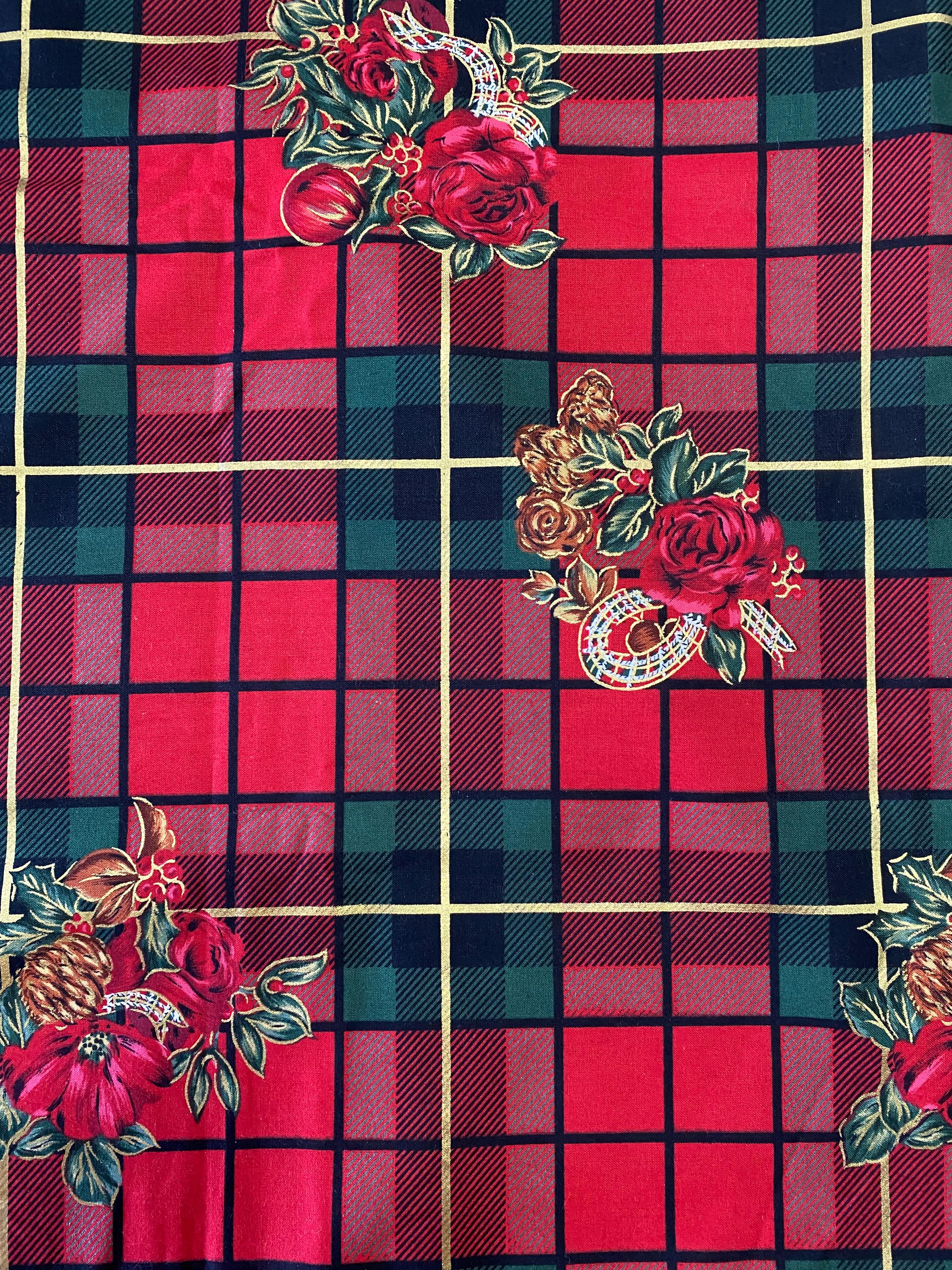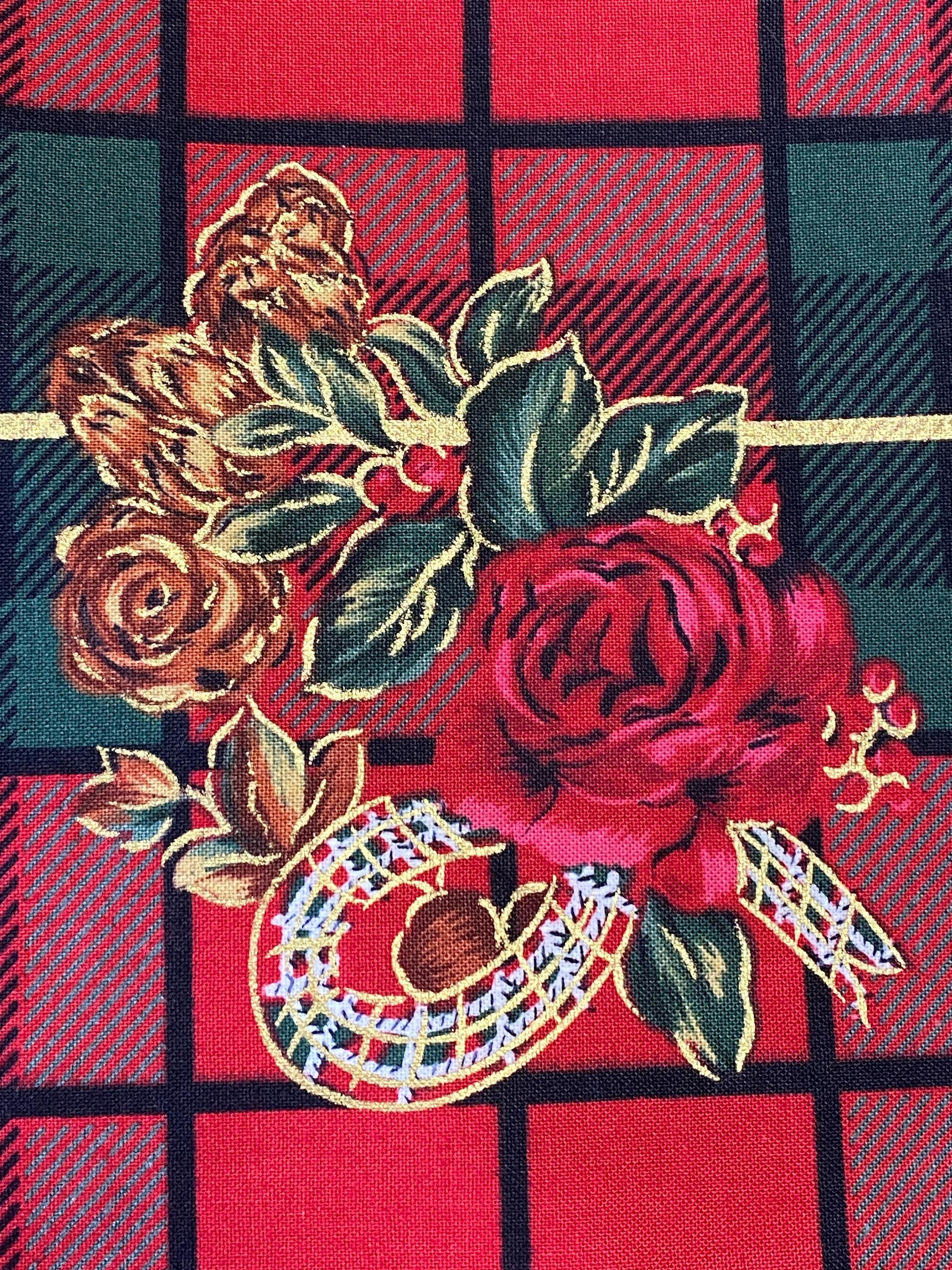 Brilliant Christmas Plaid in Reds & Greens with Roses & Pine Cones.