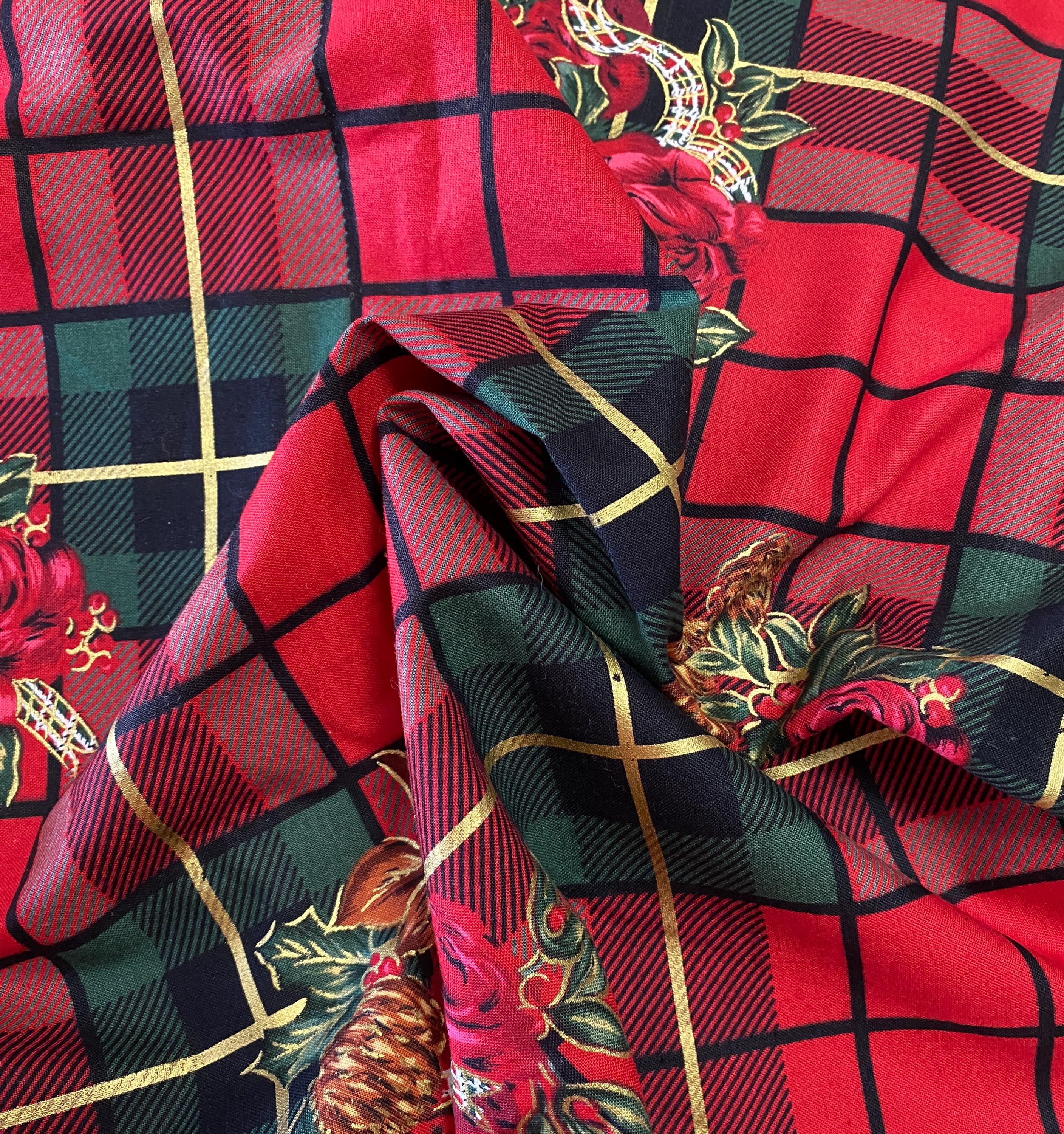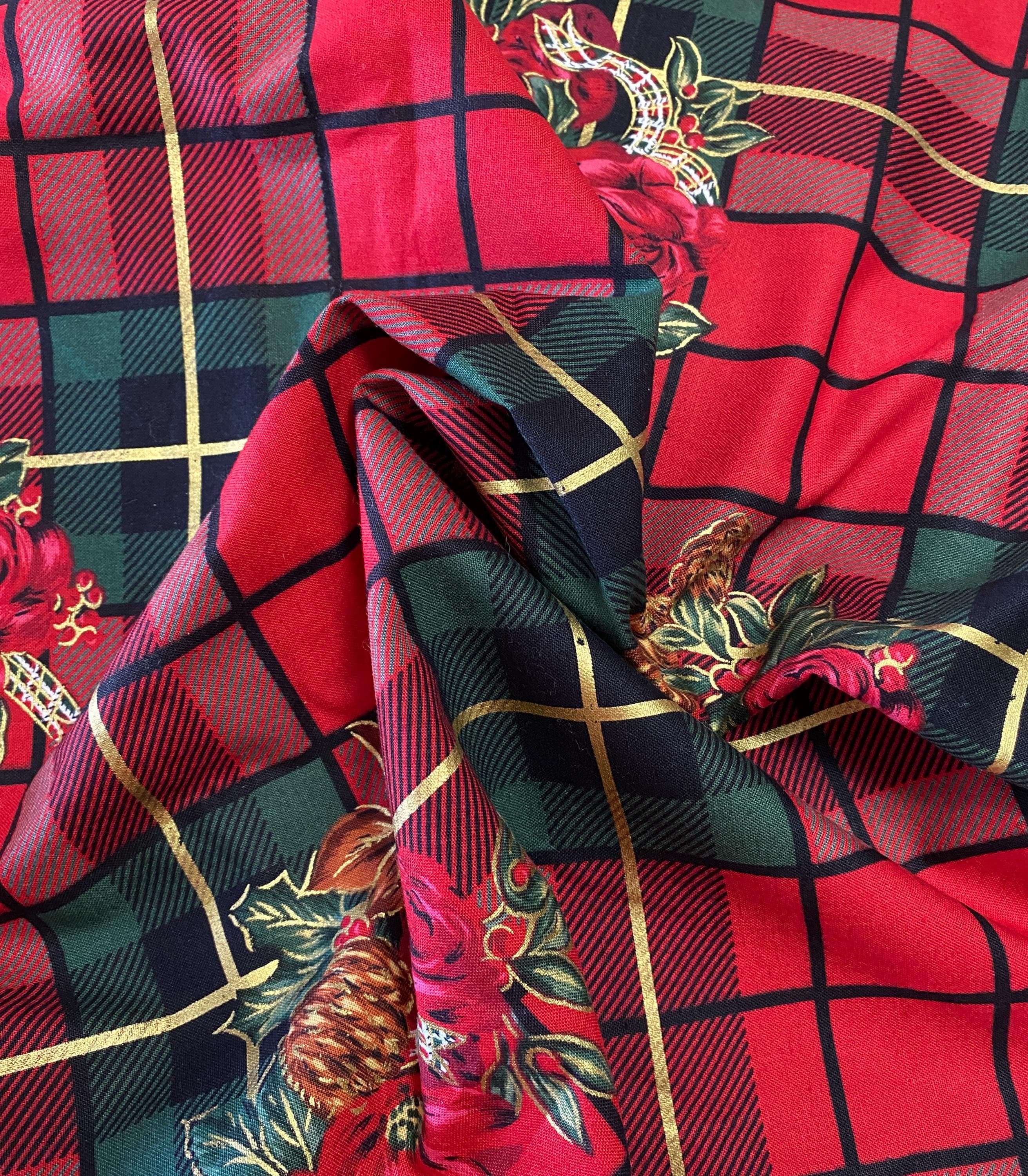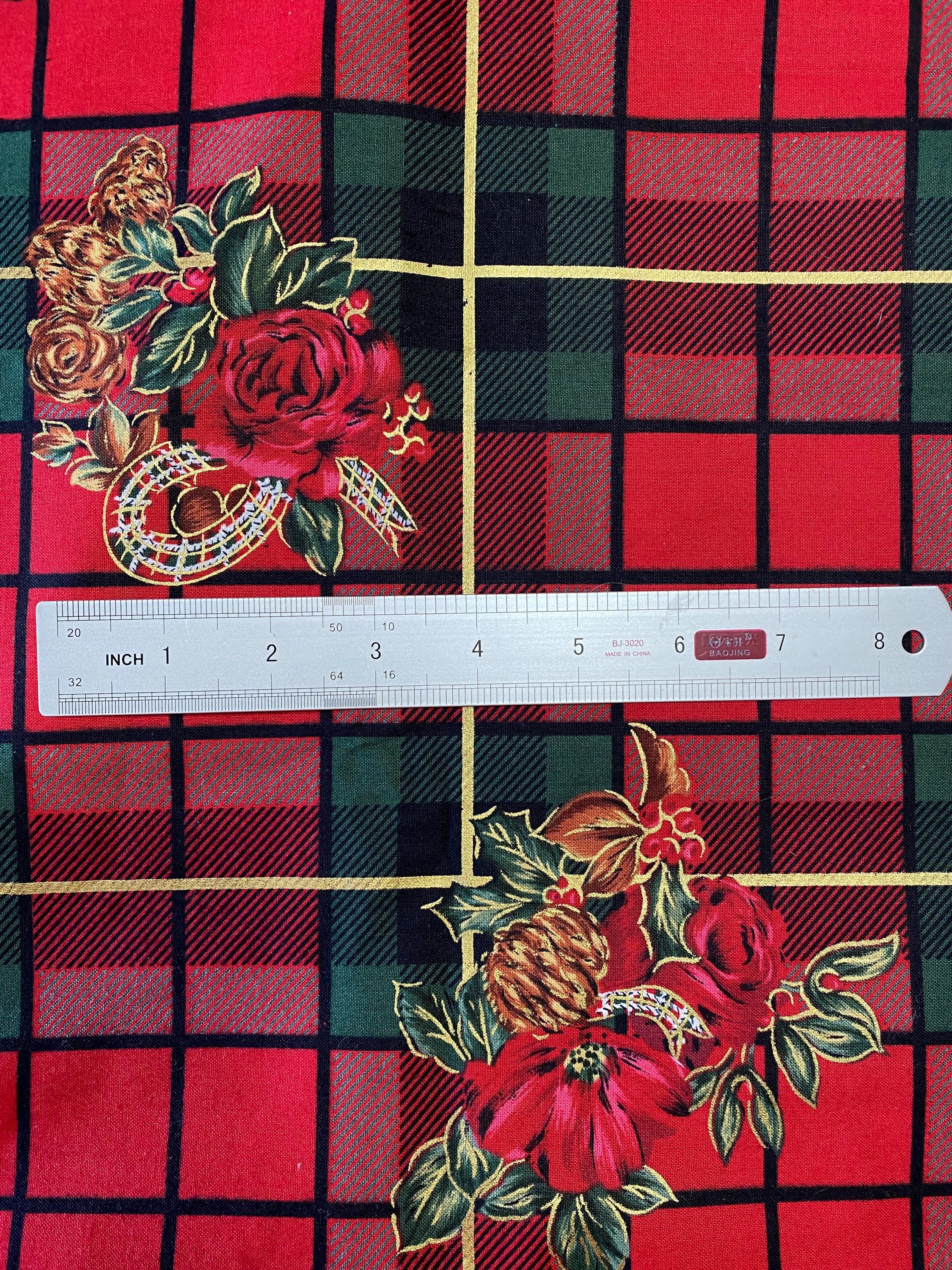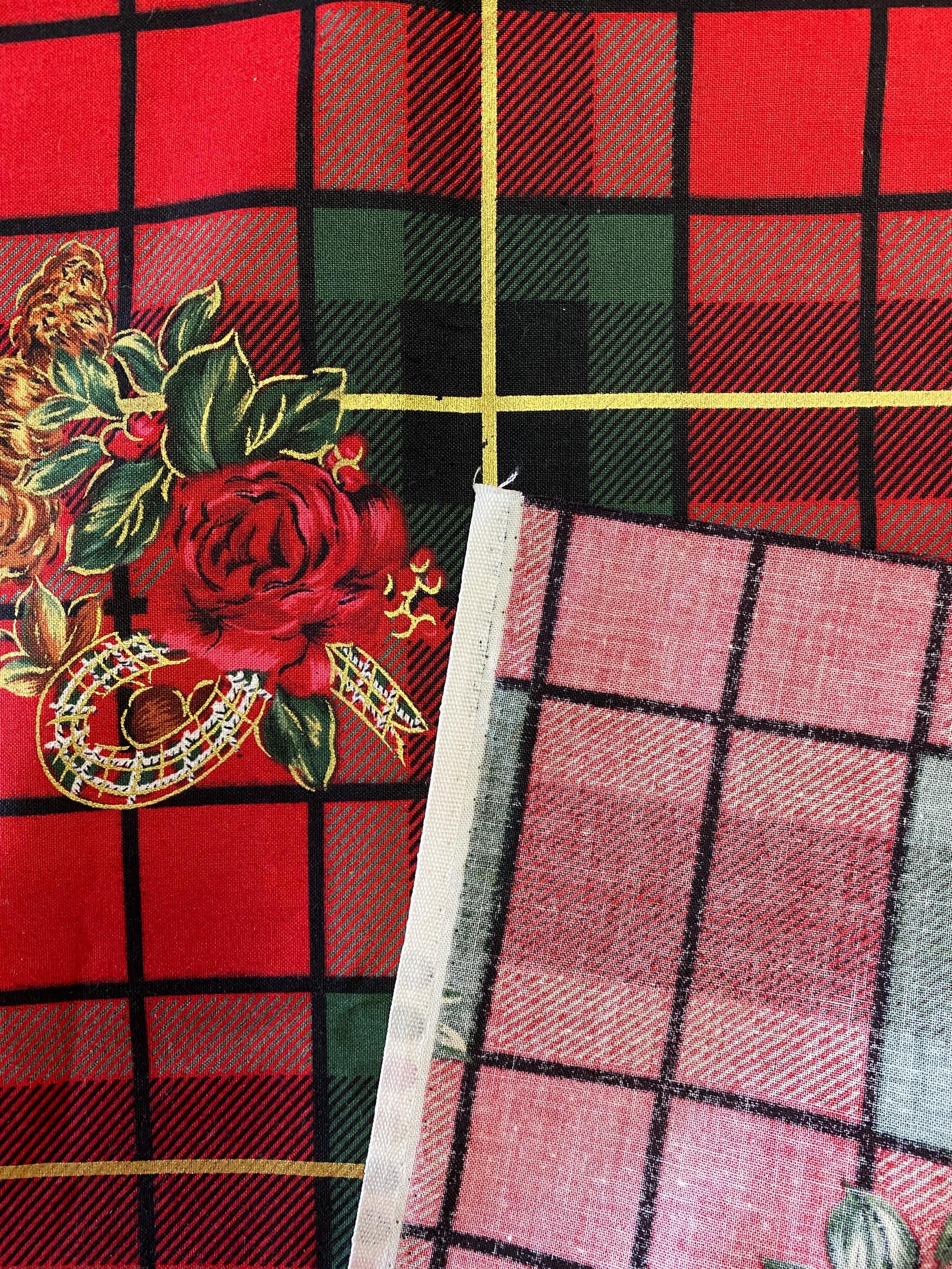 Brilliant Christmas Plaid in Reds & Greens with Roses & Pine Cones.