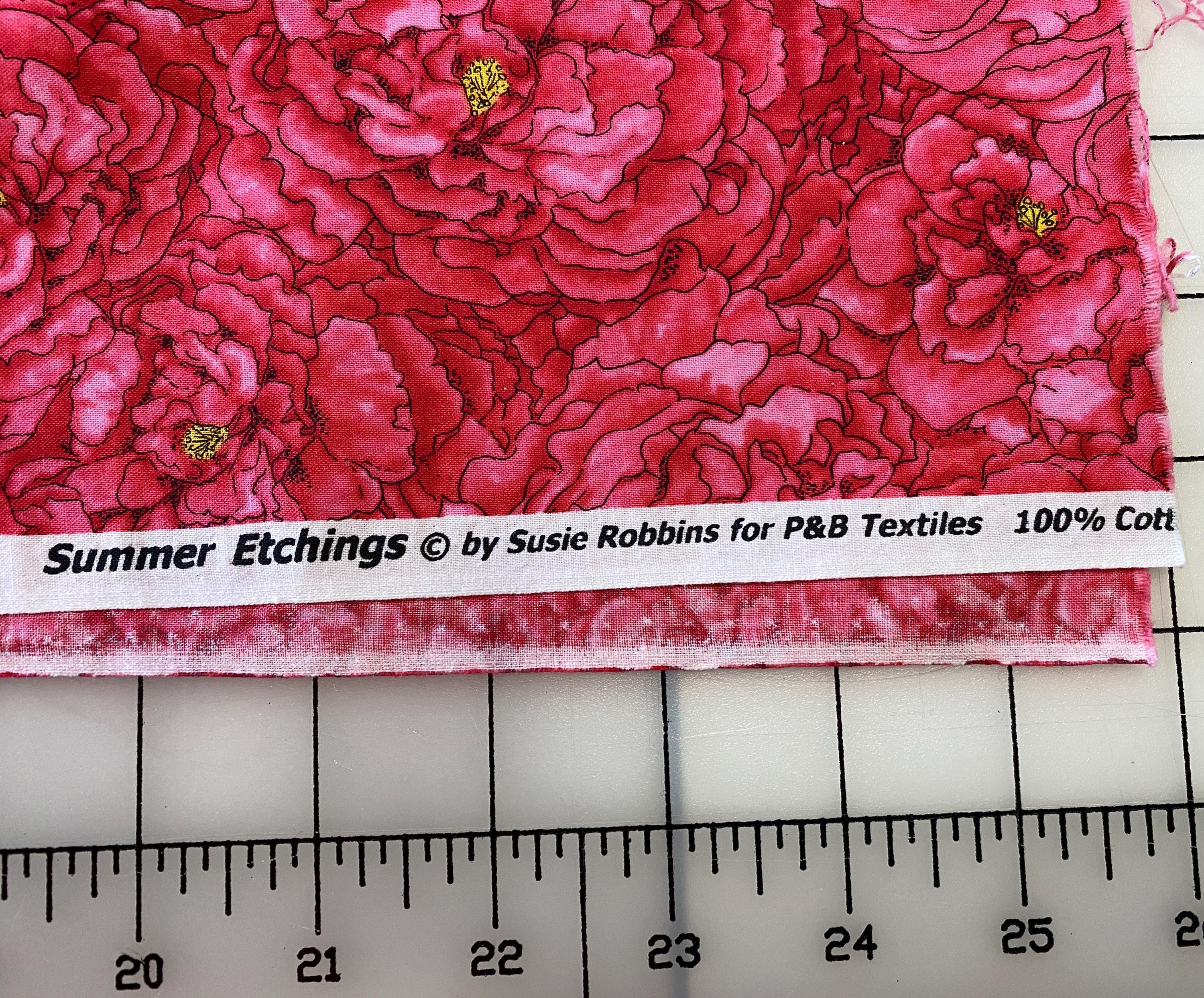 The Selvage says "Summer Etchings by Susie Robbins for P&B Textiles 100% Cotton"