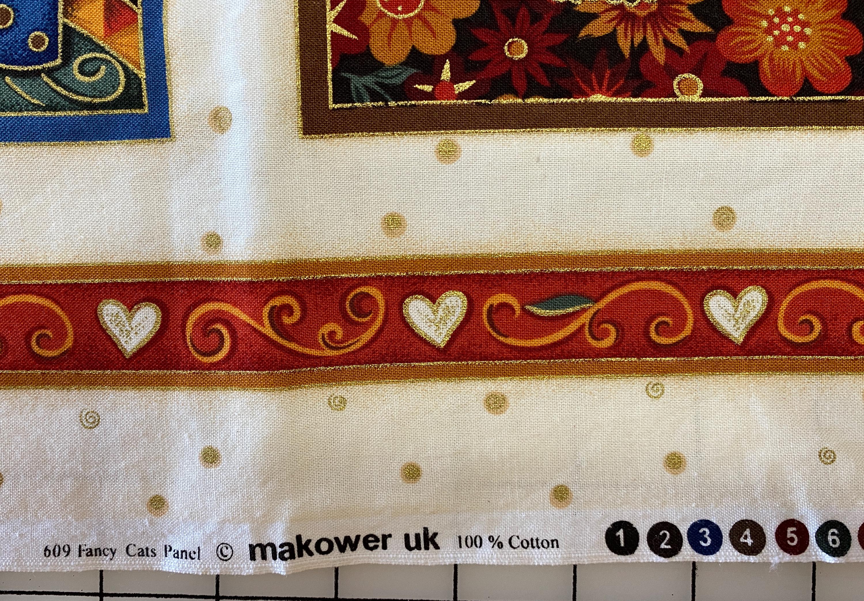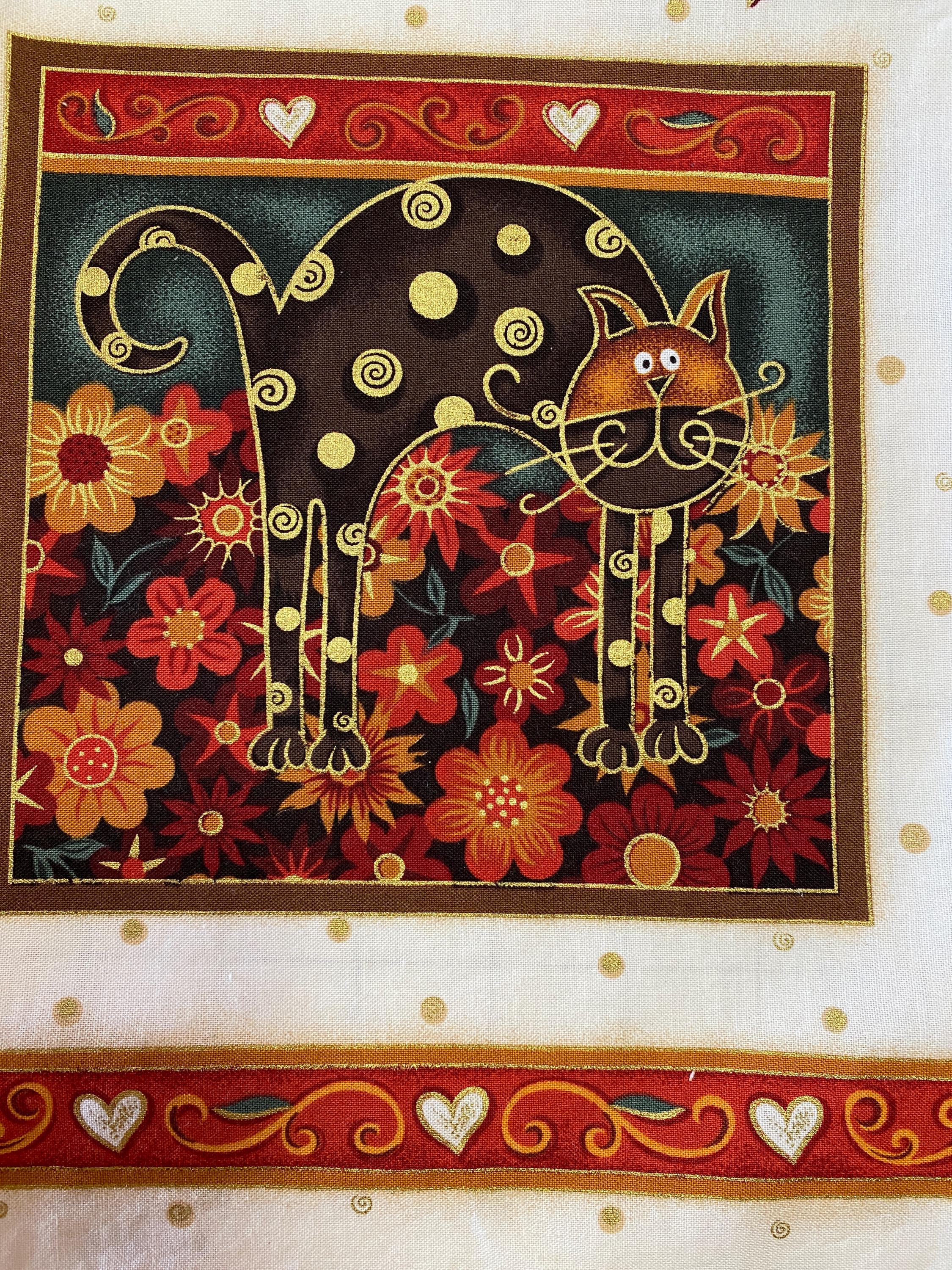 Fun Cats in great colors including metallic gold. There are cute details in the margins between the blocks too.