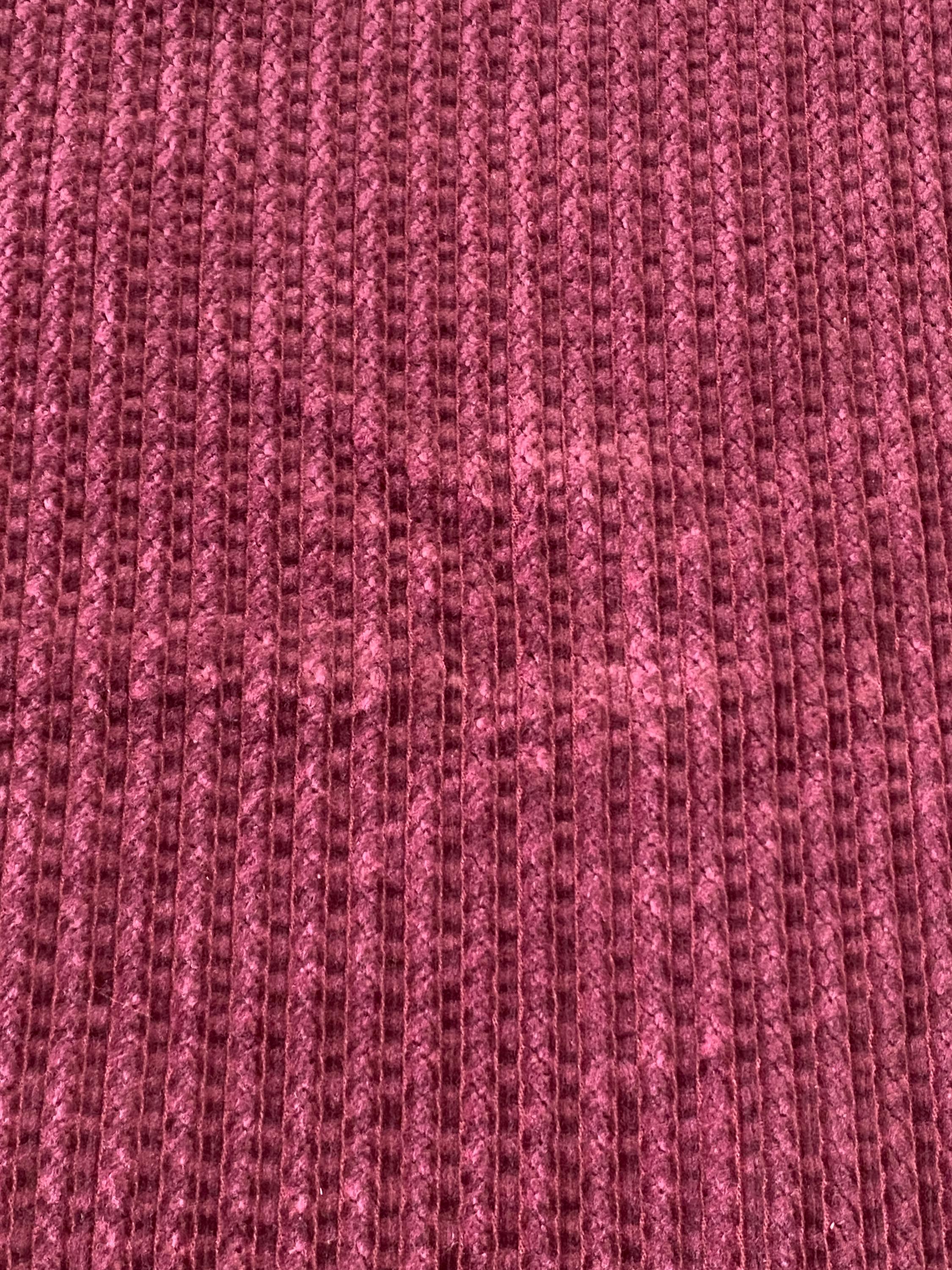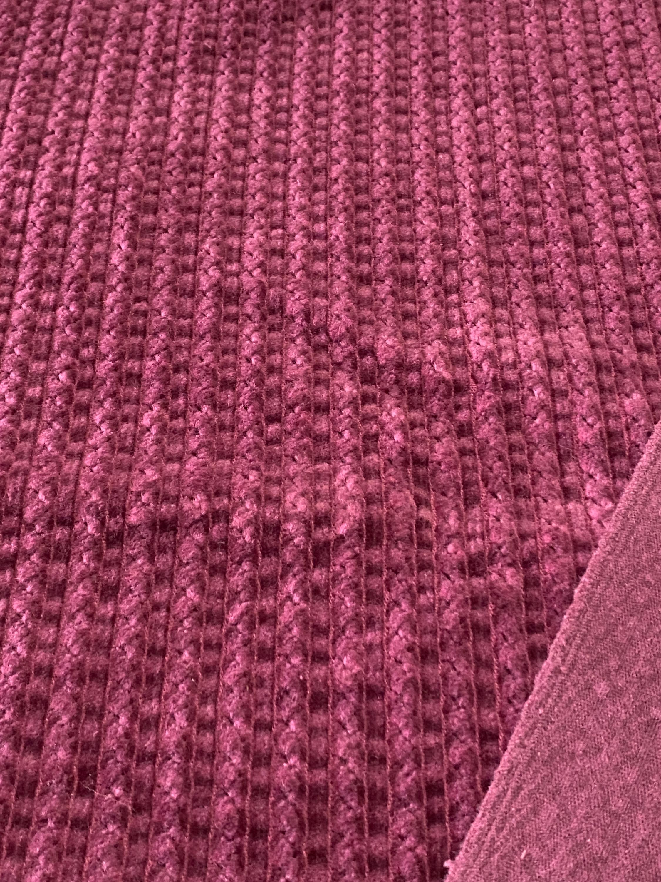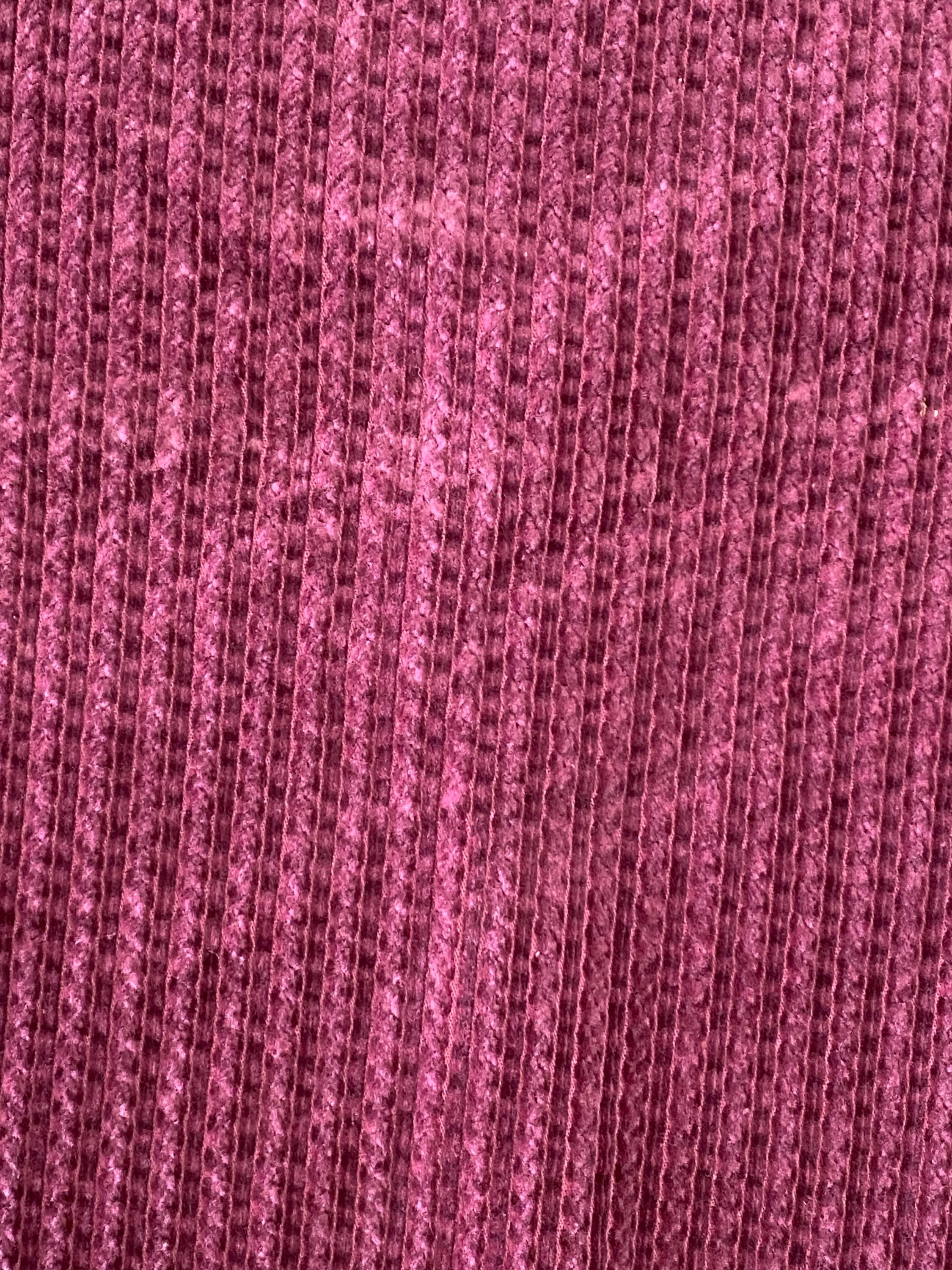 This is a vintage piece. The color is either a deep burgundy or a regal purple; I can't make up my mind. There are two different widths of wale... 1/8" and 3/8" and there is a pattern in the wales themselves.