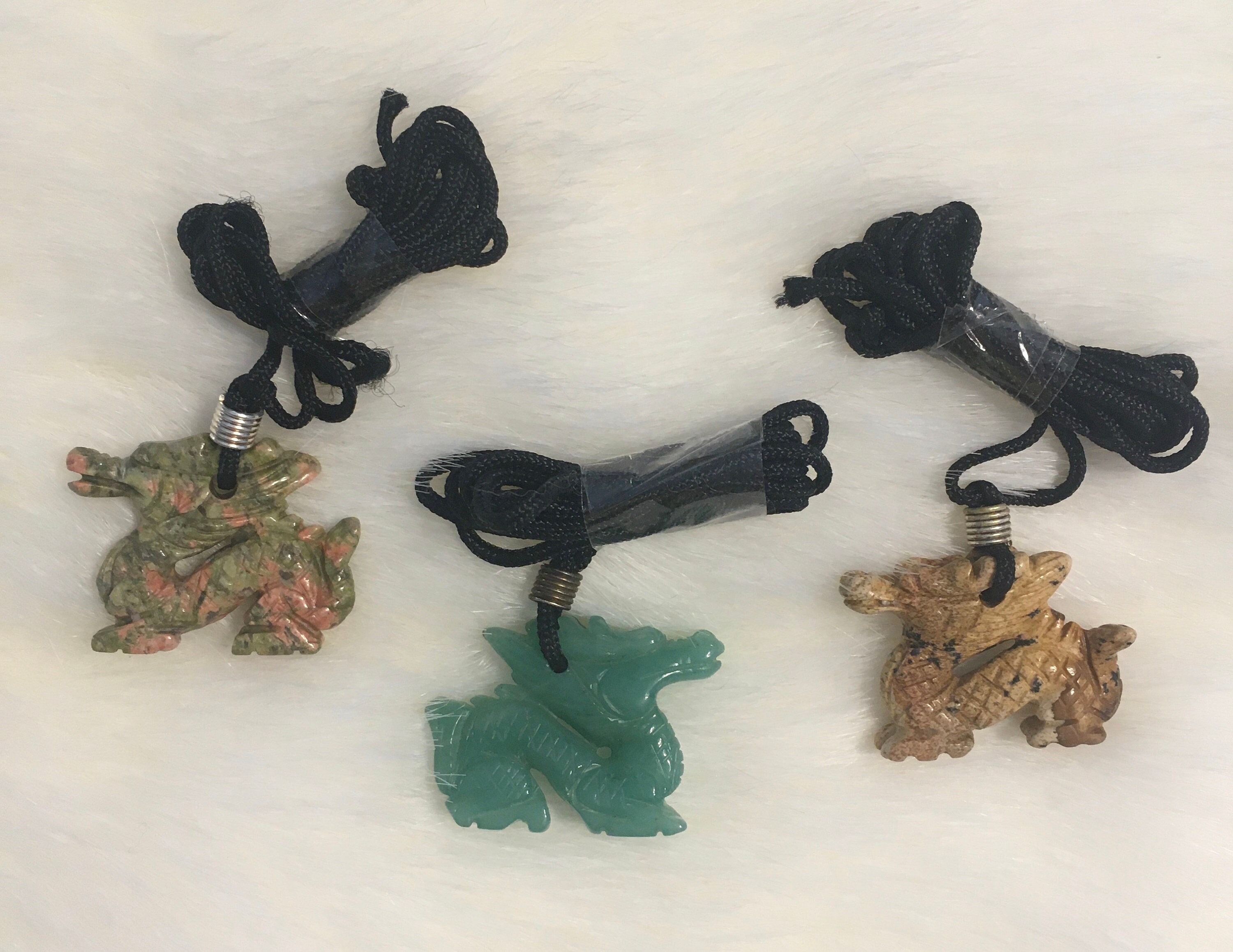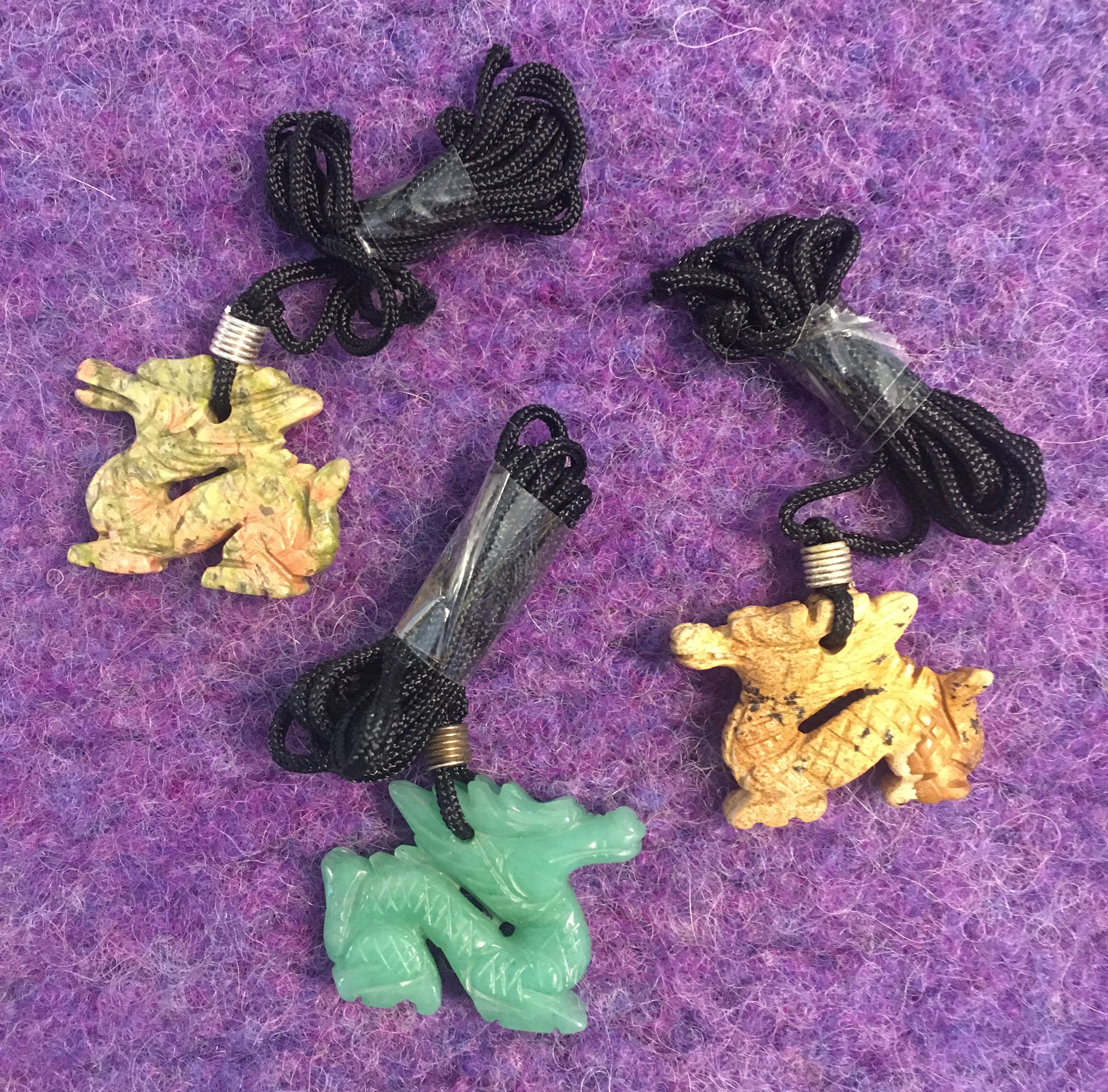 There are 3 stone types; the red & green dragons are made of Unakite, which was first discovered in the Unaka Mountains of Western North Carolina. (Perhaps, this dragon will speak to you in a southern accent? lol). Unakite is associated with emotional & spiritual balance, visions and healing. It is associated with the astrological sign of Scorpio.