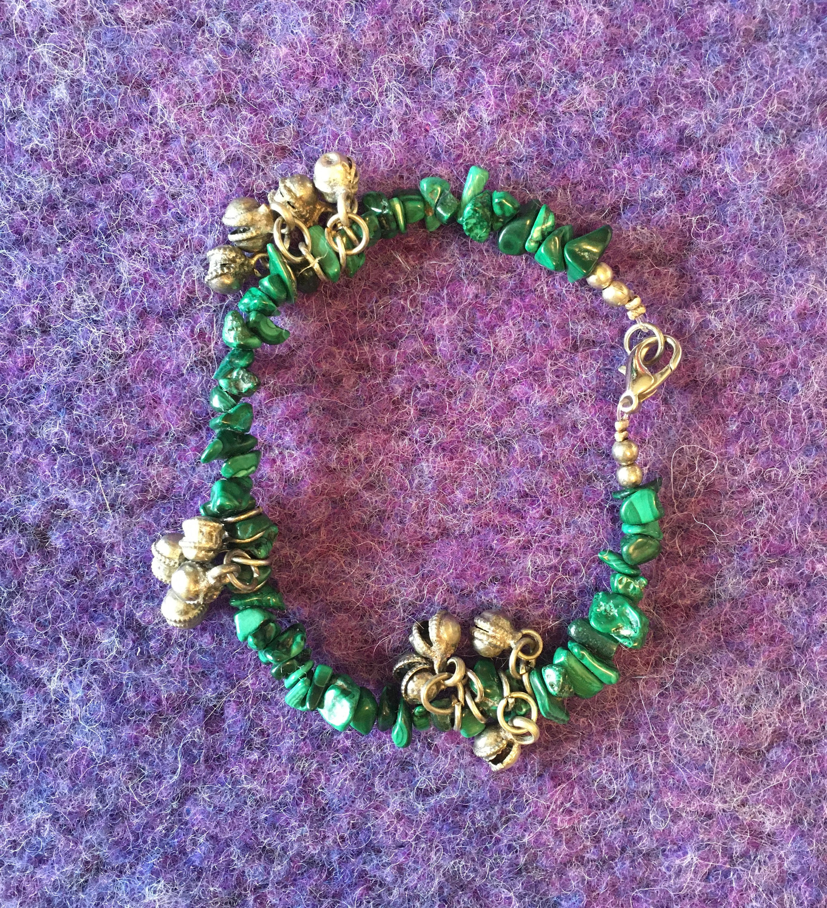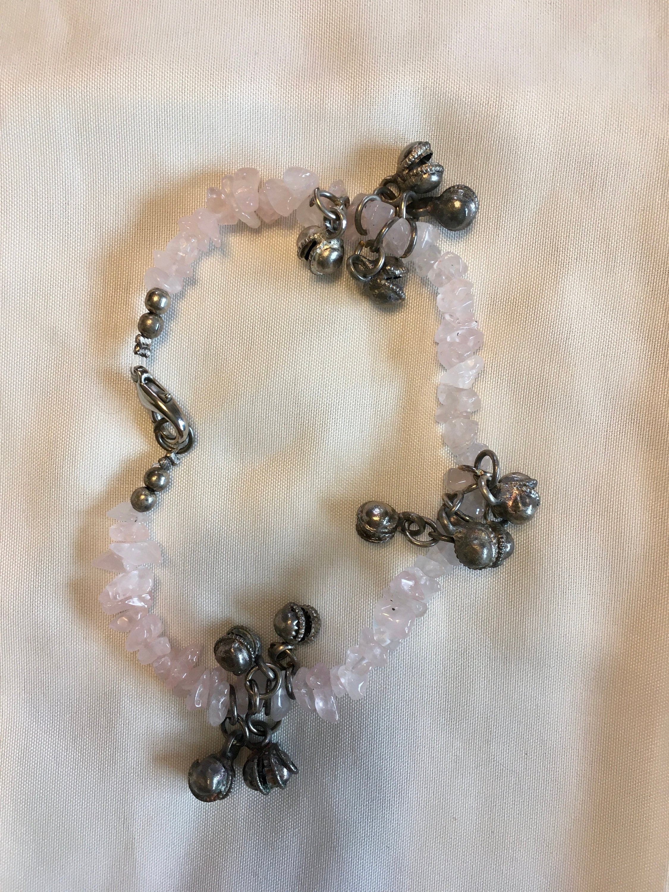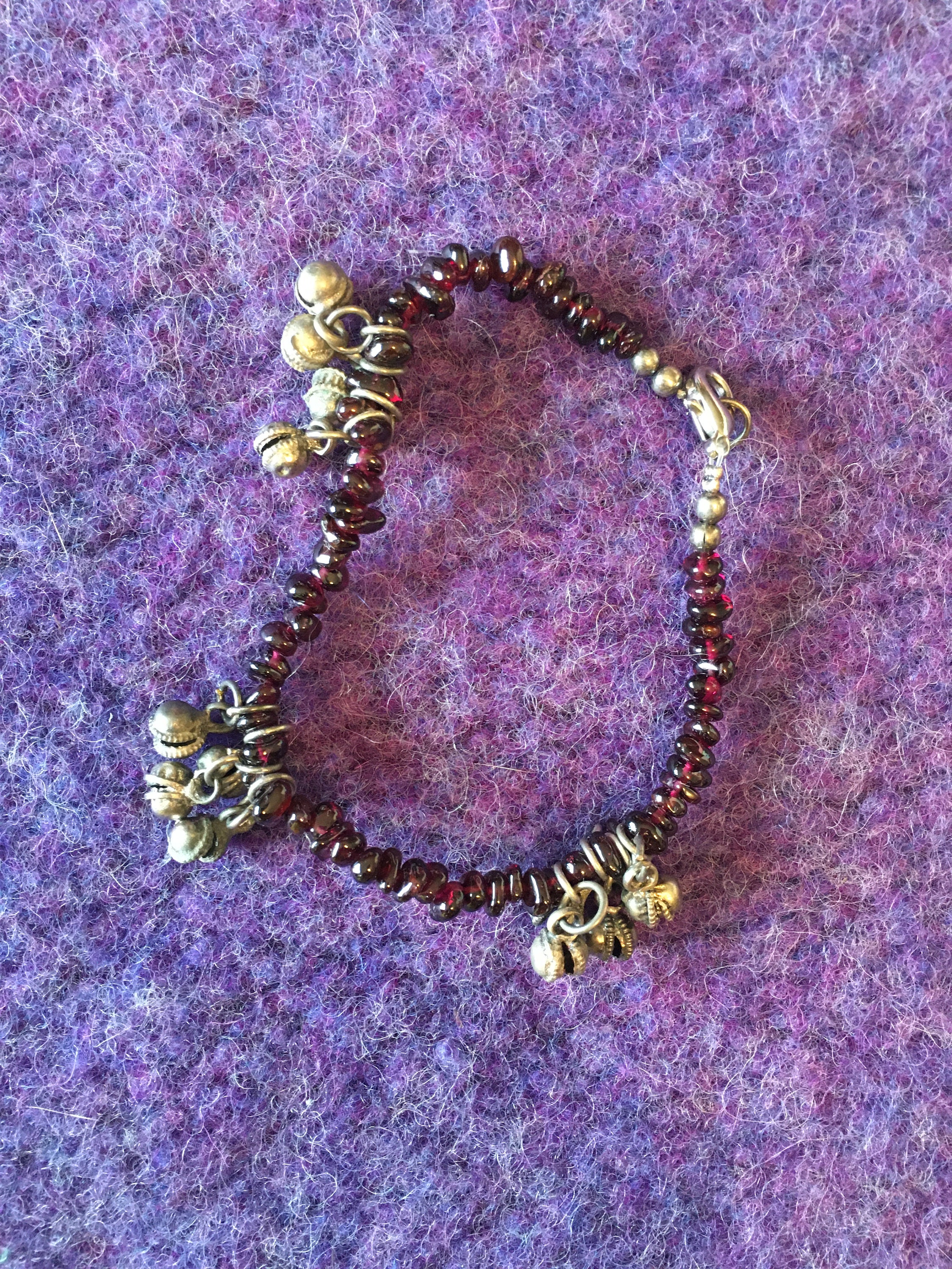 Summer is coming! How cool would it be to show off those bare ankles by wearing one of these vintage ankle bracelets? These anklets are generously sized at 9 inches to fit most ankles and large wrists. They were made in Thailand to resemble the ankle bracelets that dancers wore with genuine gemstone (garnet/malachite/crystal quartz/rose quartz), pretend bells and a lobster claw clasp.