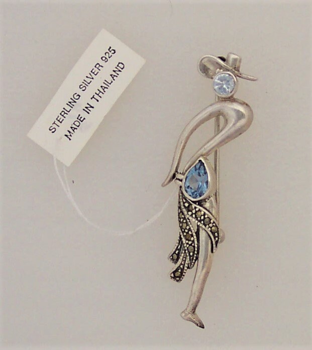 Sterling silver & marcasite dancers with faceted stones; stamped 925 and labelled as 'made in Thailand'.  Never been worn; pre-Y2K.